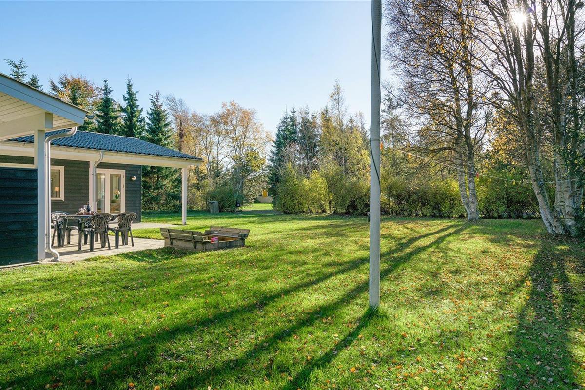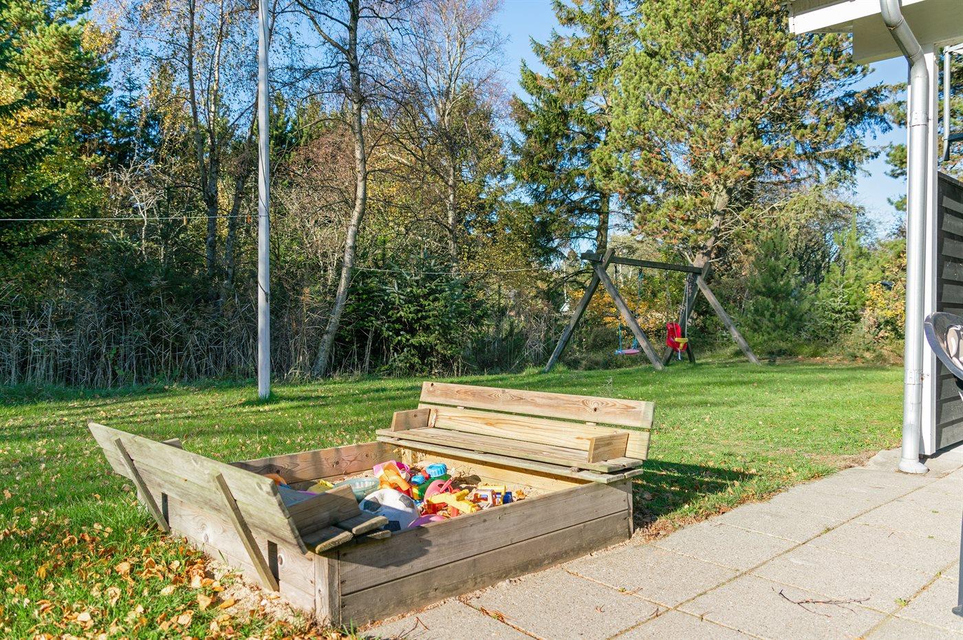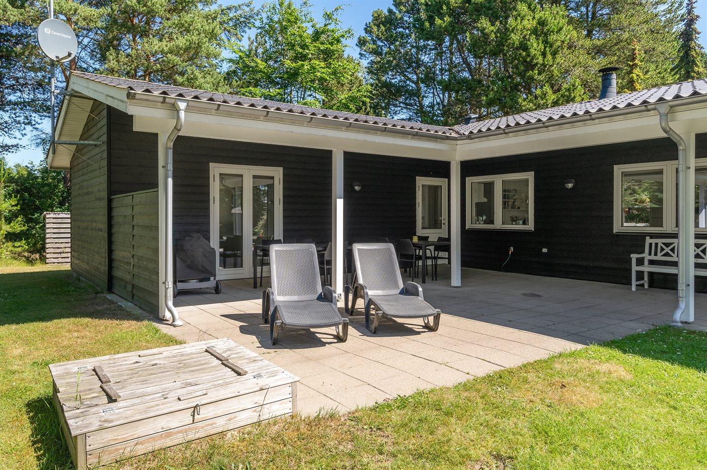 De vakantiewoning is gelegen op een 1600 m² groot aangelegde tuin. Afstand tot de zee 400 m. Dichtstbijzijnde winkel 1500 m. Bij de vakantiewoning hoort 10 m² terras. Daarnaast is er een 30 m² groot overdekt terras. Gereedschapsruimte. Schommel. Zandbak. Barbecue. Parkeerplaats bij het huis.