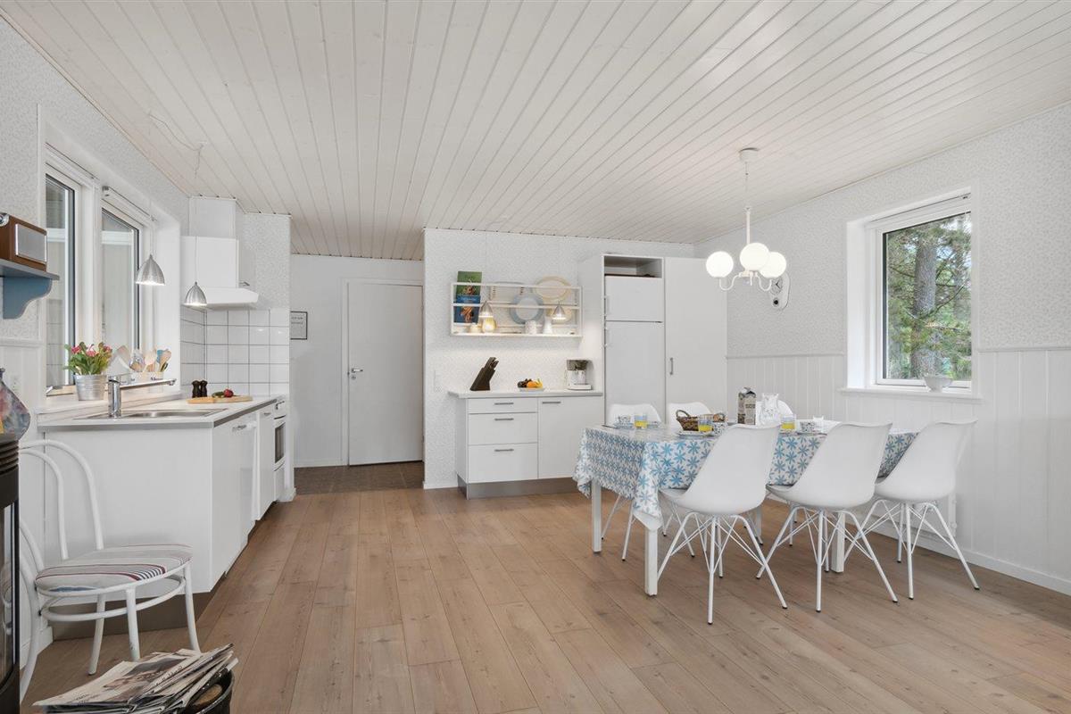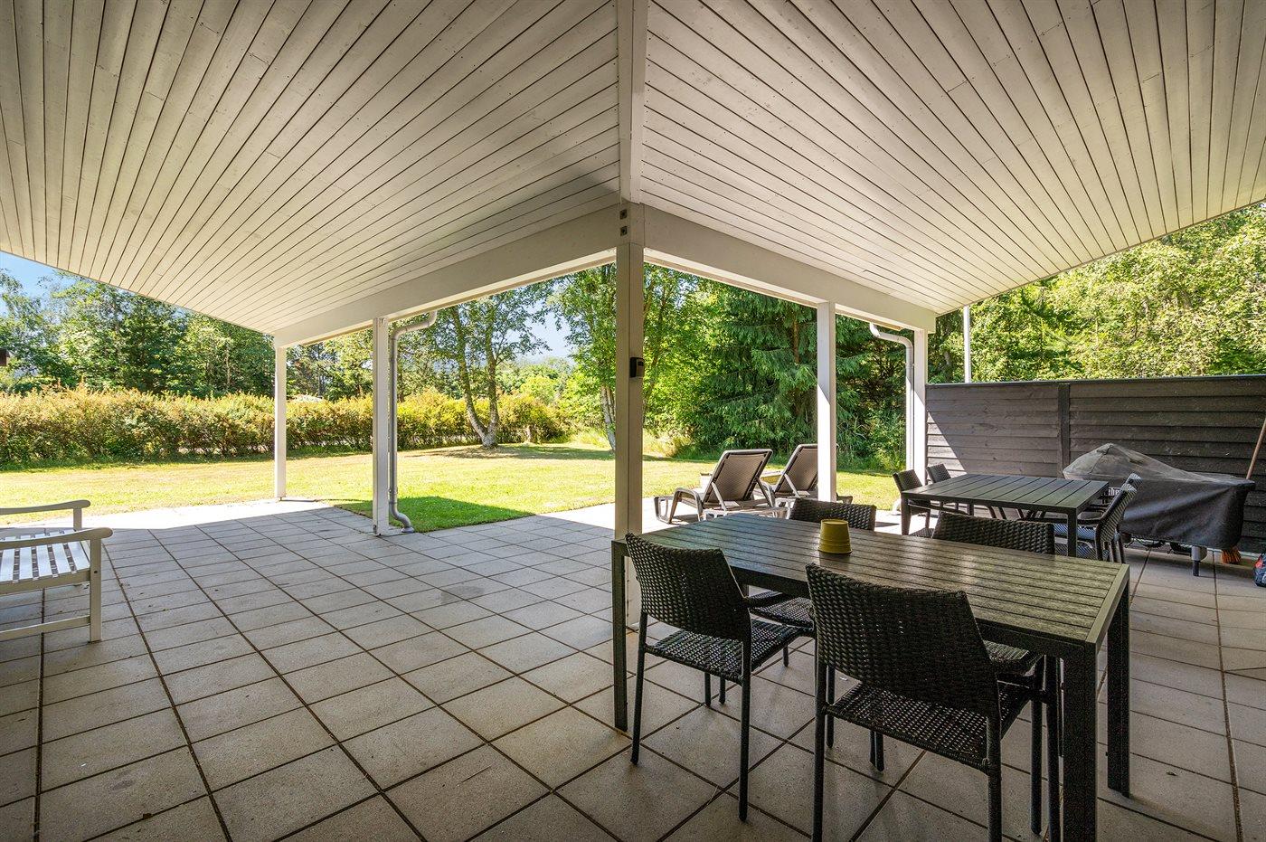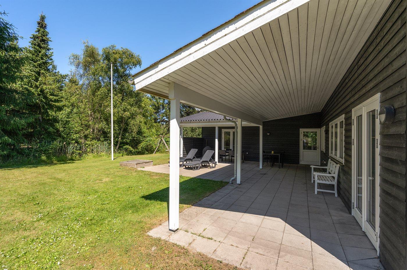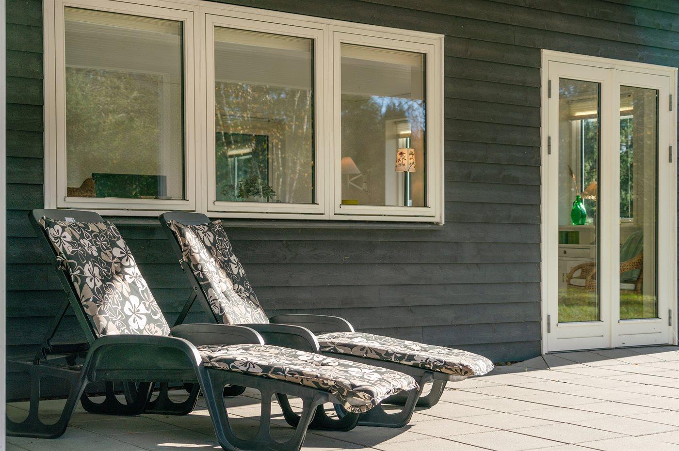 De vakantiewoning is gelegen op een 1600 m² groot aangelegde tuin. Afstand tot de zee 400 m. Dichtstbijzijnde winkel 1500 m. Bij de vakantiewoning hoort 10 m² terras. Daarnaast is er een 30 m² groot overdekt terras. Gereedschapsruimte. Schommel. Zandbak. Barbecue. Parkeerplaats bij het huis.