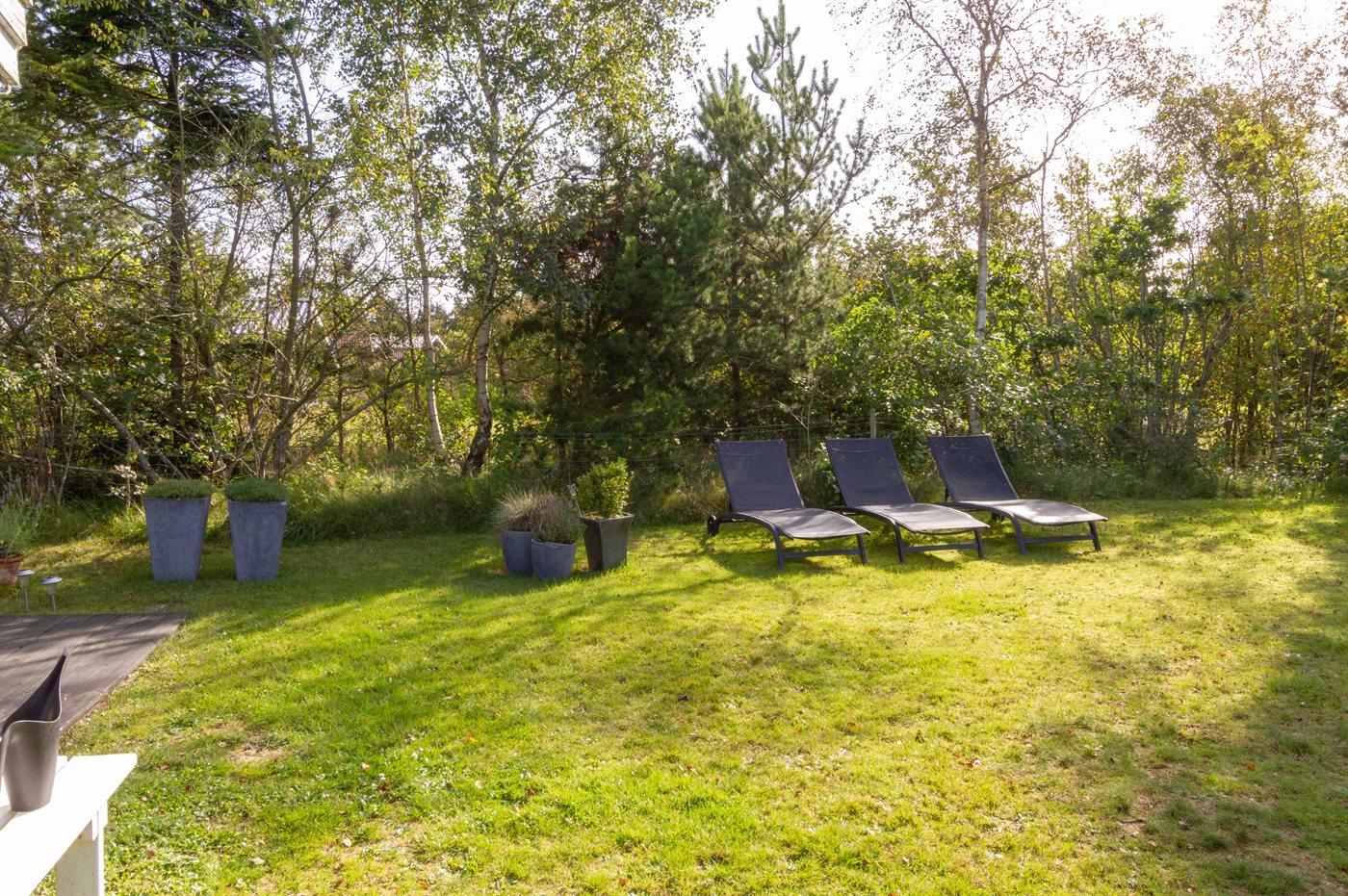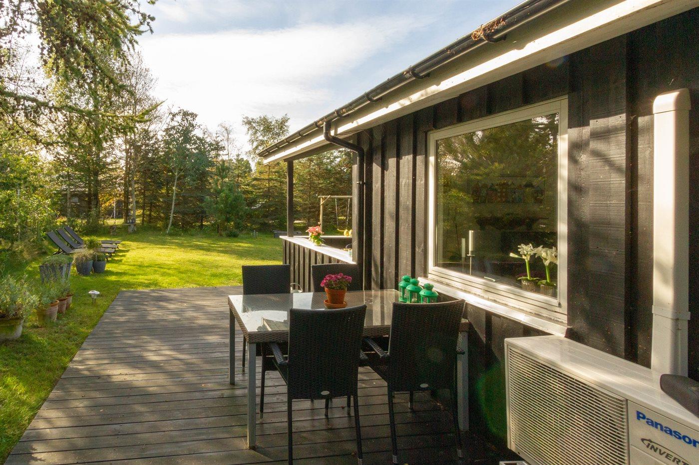 De vakantiewoning is gelegen op een 1300 m² groot natuural grond. De grond is omheind. Afstand tot de zee 400 m. Dichtstbijzijnde winkel 1500 m. Bij de vakantiewoning hoort 30 m² terras. Daarnaast is er een 18 m² groot overdekt terras. Gereedschapsruimte. Schommel. Zandbak. Barbecue. Parkeerplaats bij het huis.