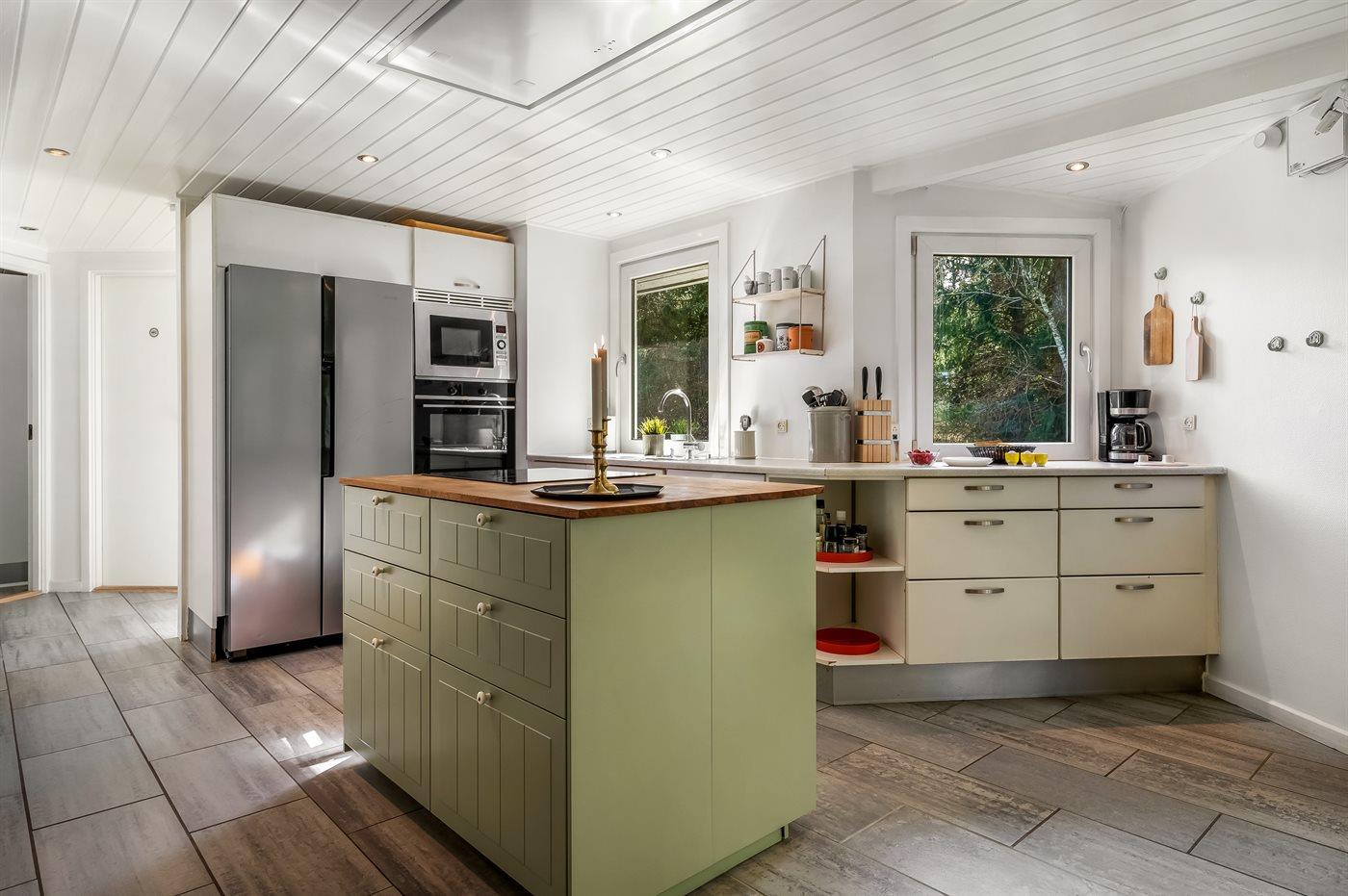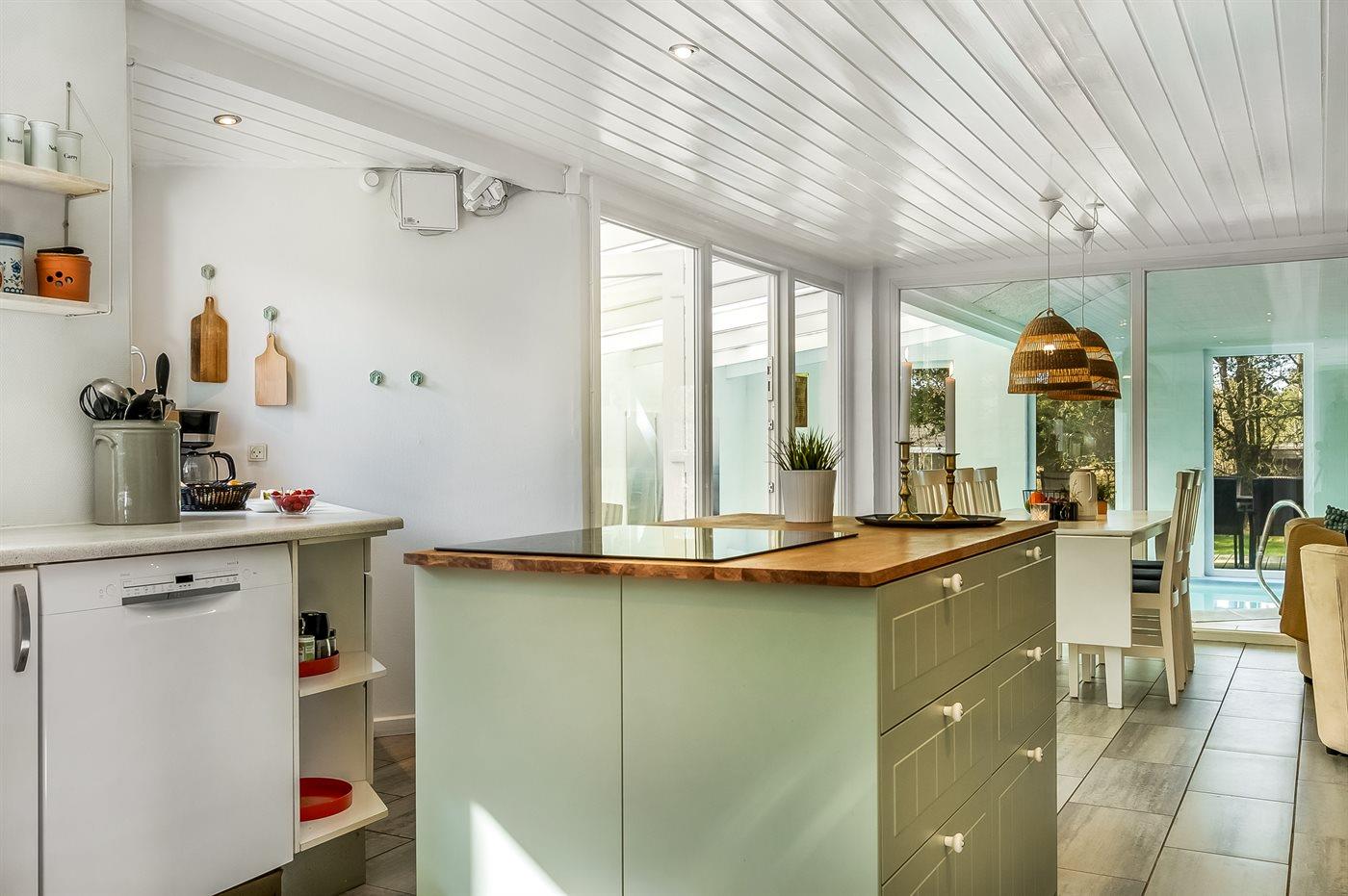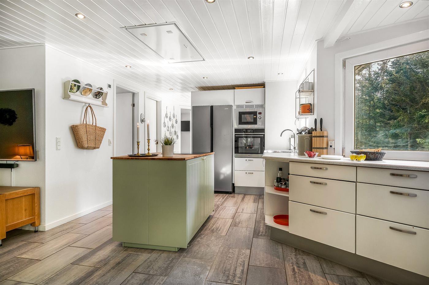 De keuken is uitgerust met koelkast Er is 4 inductiekookplaten, heteluchtoven, magnetron en vaatwasser.