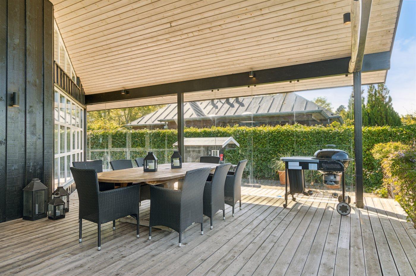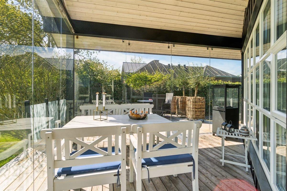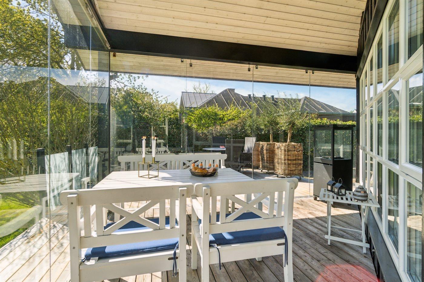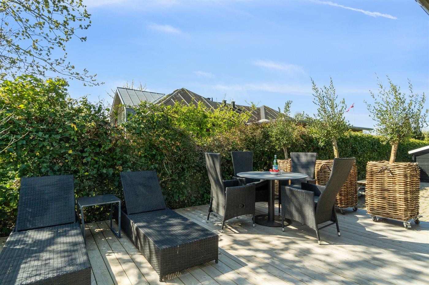 De vakantiewoning is gelegen op een 985 m² groot aangelegde tuin. Afstand tot de zee 100 m. Dichtstbijzijnde winkel 2000 m. Bij de vakantiewoning hoort terras. Daarnaast is er een overdekt terras. Barbecue. Carport ter beschikking. Parkeerplaats bij het huis.