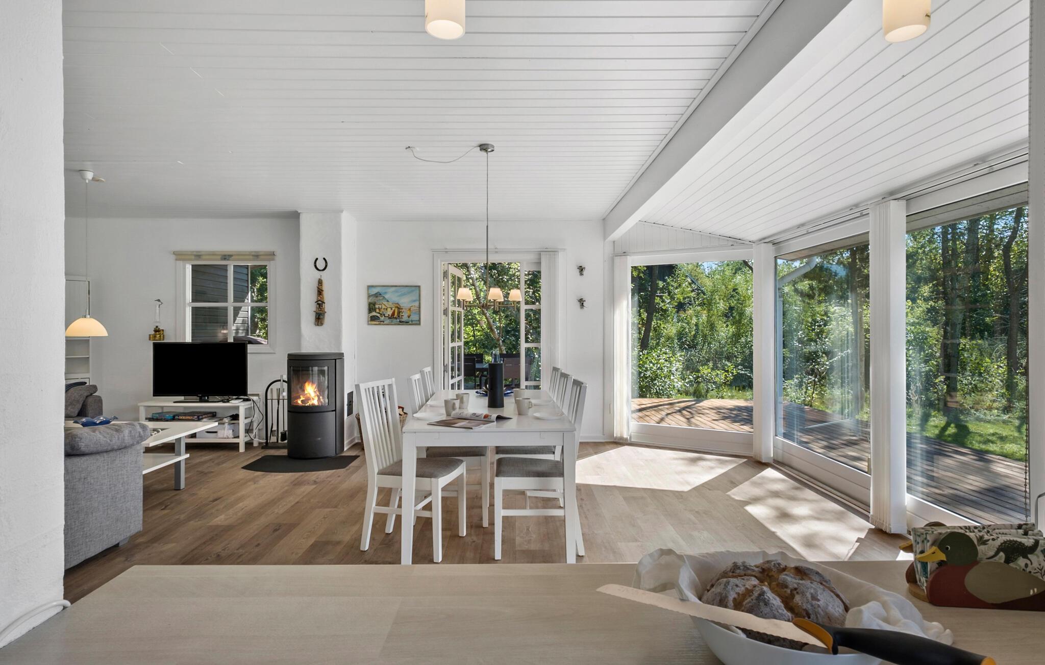 Welkom in dit uitnodigende vakantiehuis, waar je kunt genieten van een ontspannen vakantie met je geliefden niet ver van de kust. Bereid je favoriete gerechten in de open keuken en steek de houtkachel aan voor harmonieuze maaltijden met uitzicht op het platteland. Na een lange dag in de frisse zeelucht kun je het jezelf comfortabel maken op de gezellige bank met een goede film of een boek.