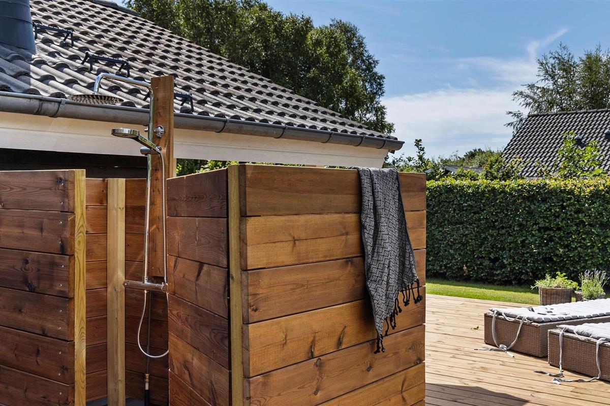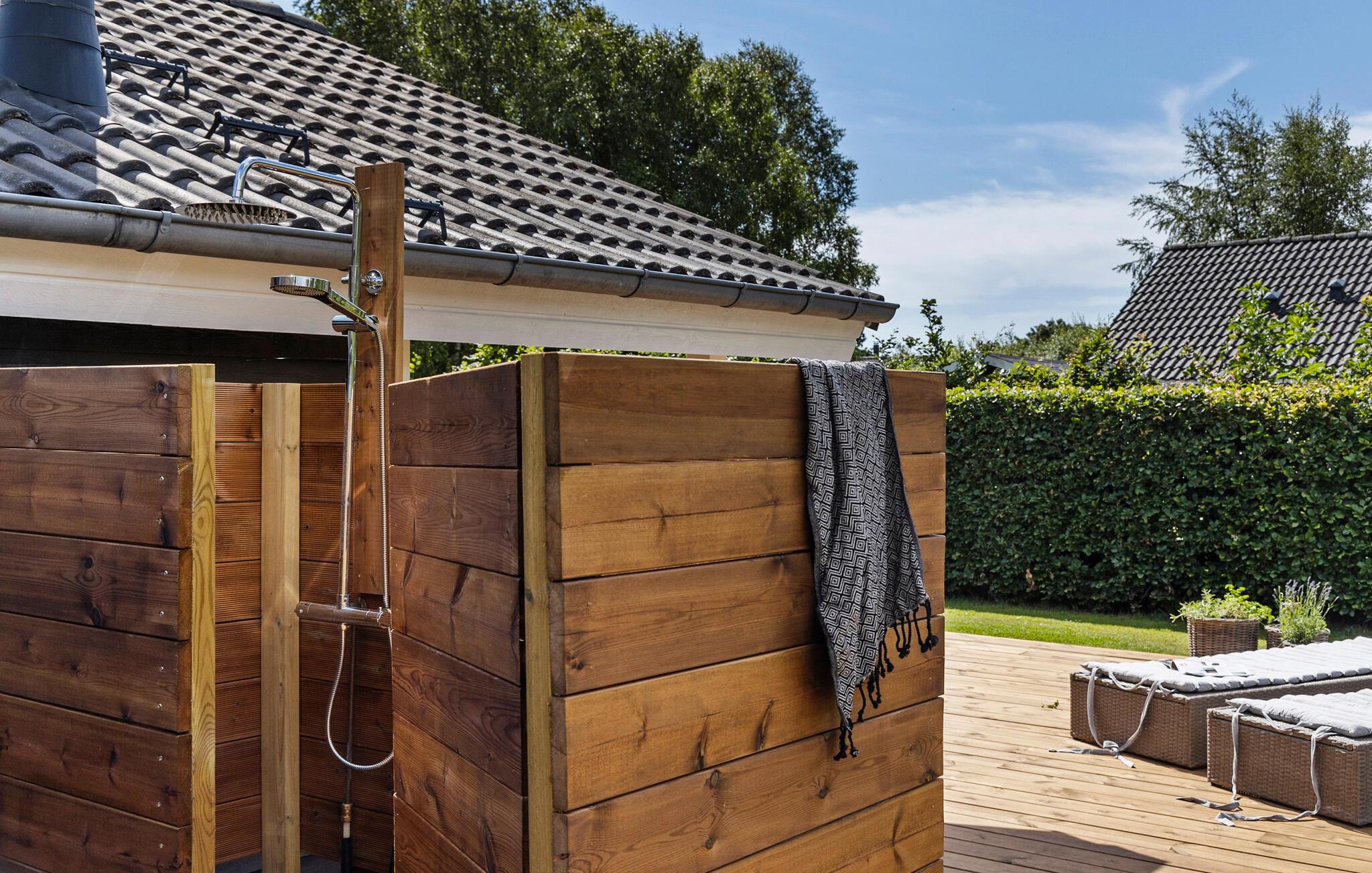 De ruime tuin nodigt je kinderen uit om te spelen in de frisse lucht. Ga zonnebaden op de comfortabele ligstoelen, verfris jezelf onder de douche of ontspan in de whirlpool, terwijl anderen de barbecue klaarmaken voor een sfeervolle avond in de buitenlucht.