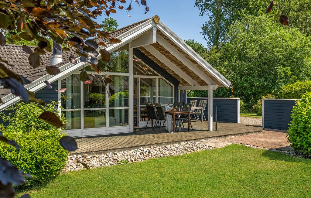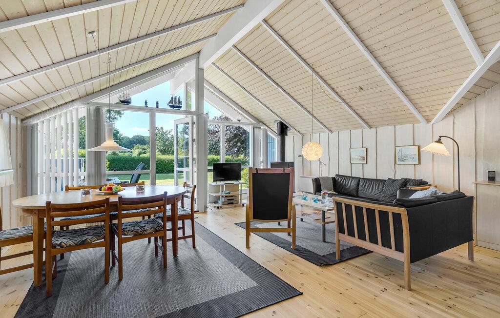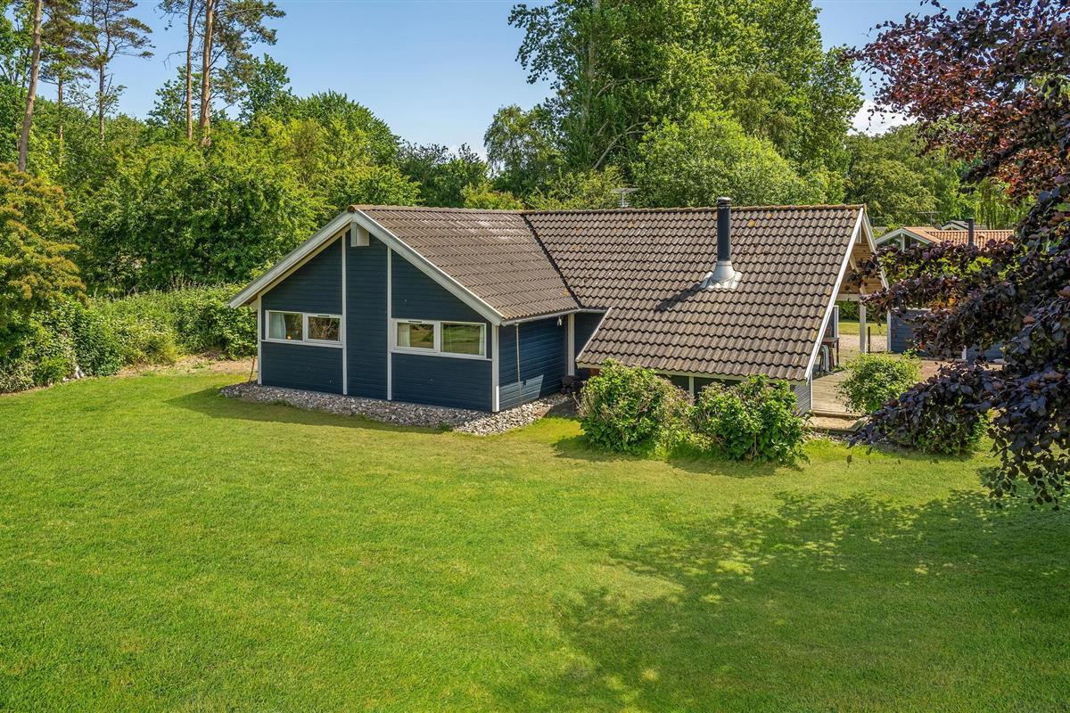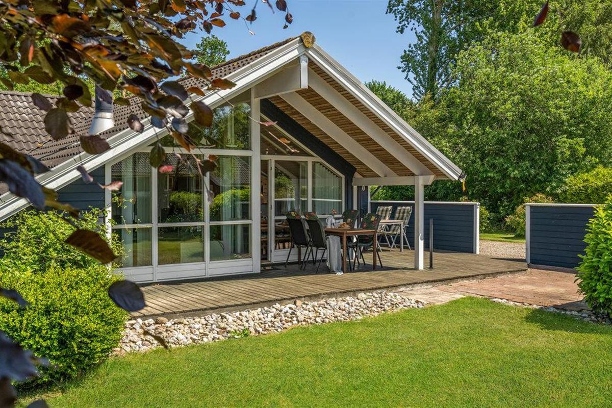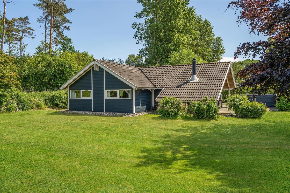 Sfeervol houten vakantiehuis in Tranekær, dichtbij strand en natuur, met whirlpool, sauna en speelruimte voor kinderen.