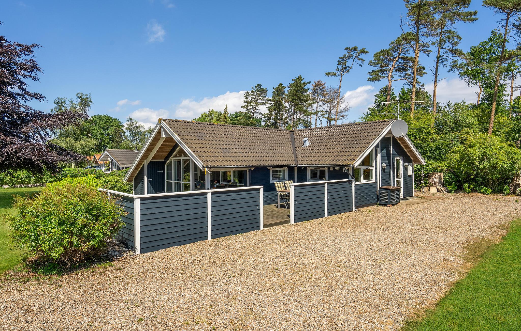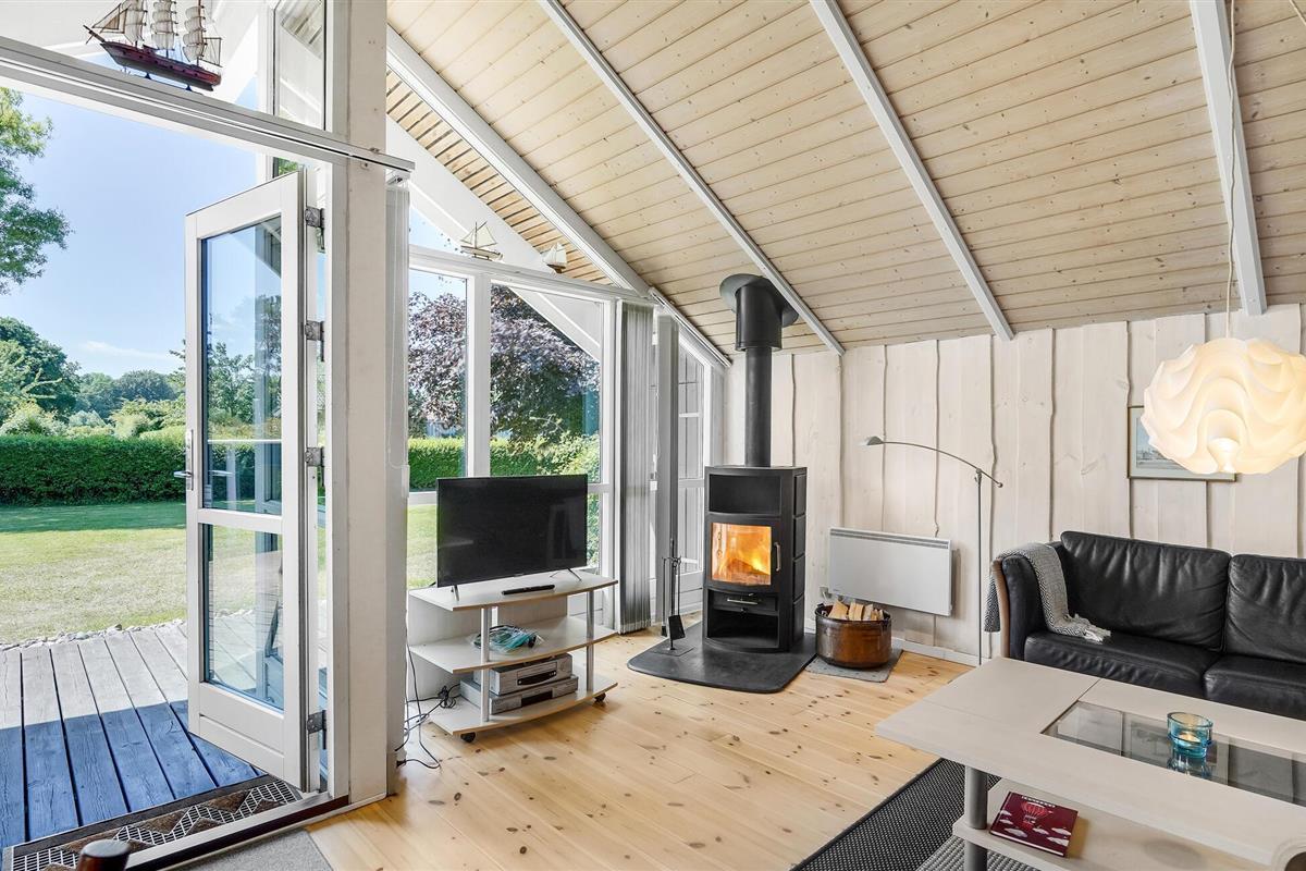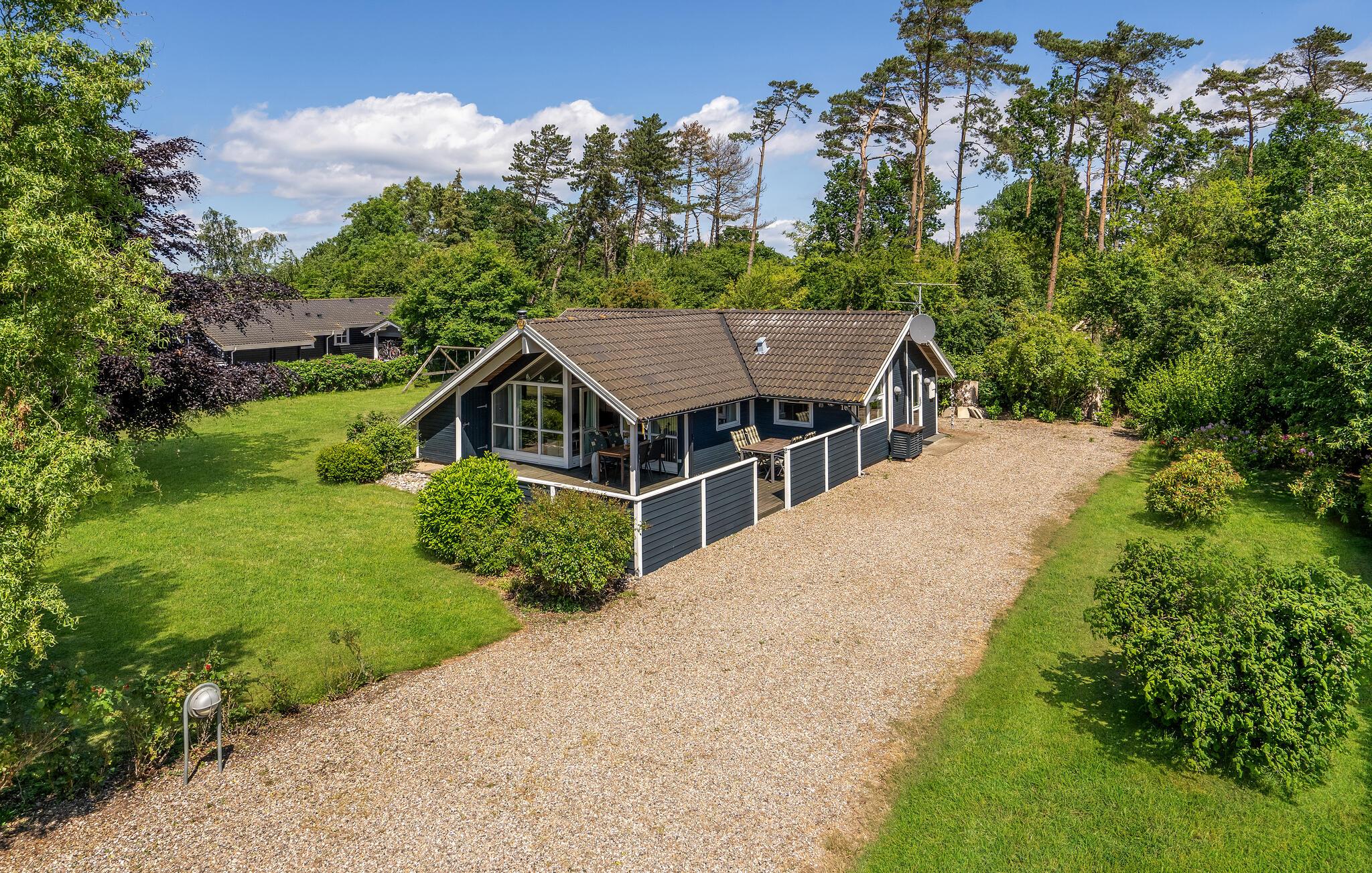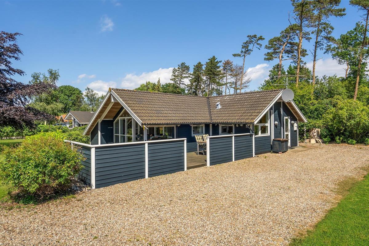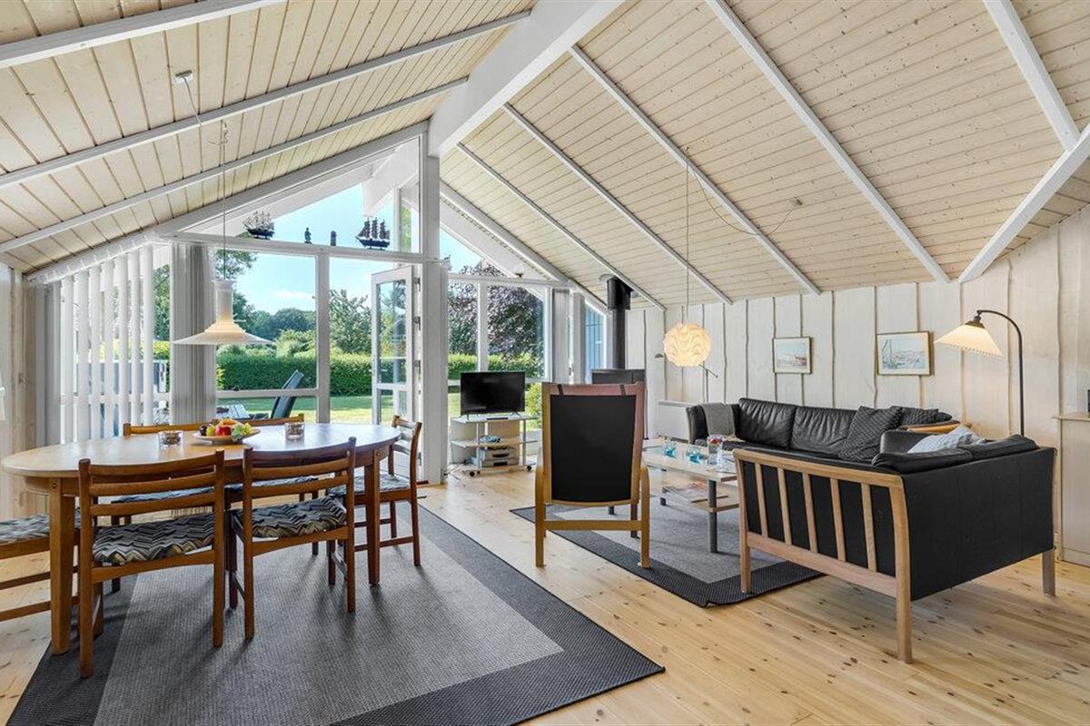 Sfeervol houten vakantiehuis in Tranekær, dichtbij strand en natuur, met whirlpool, sauna en speelruimte voor kinderen.