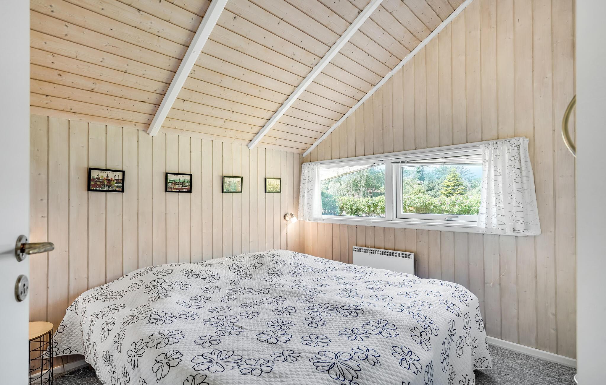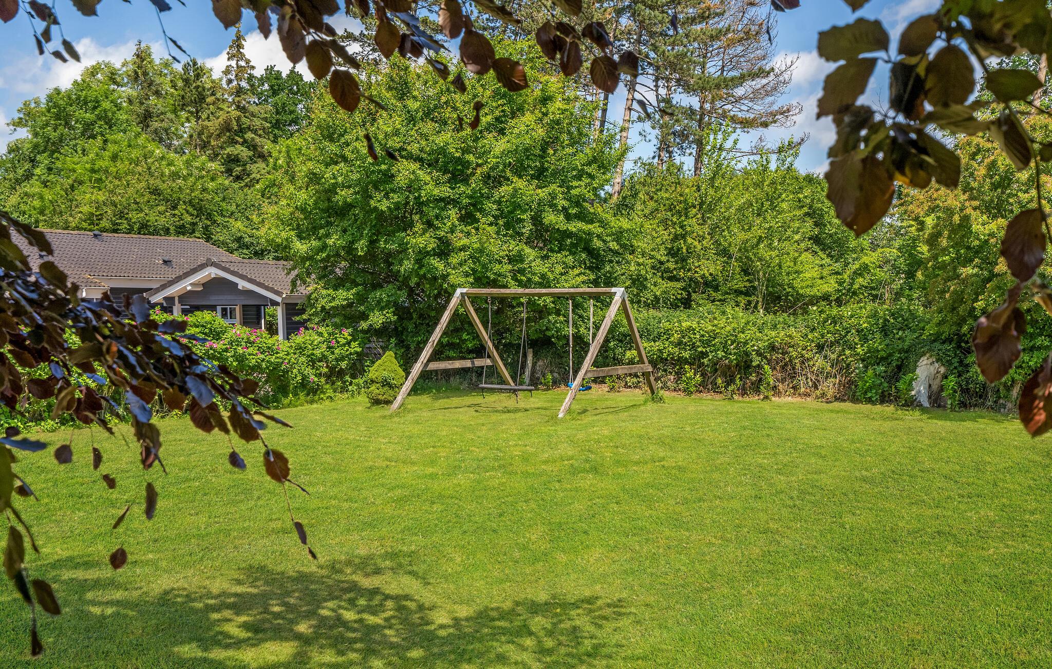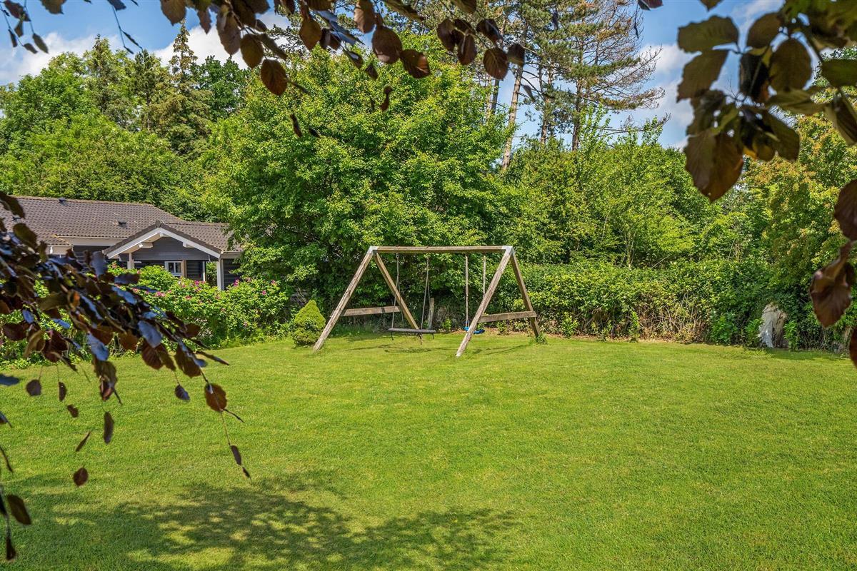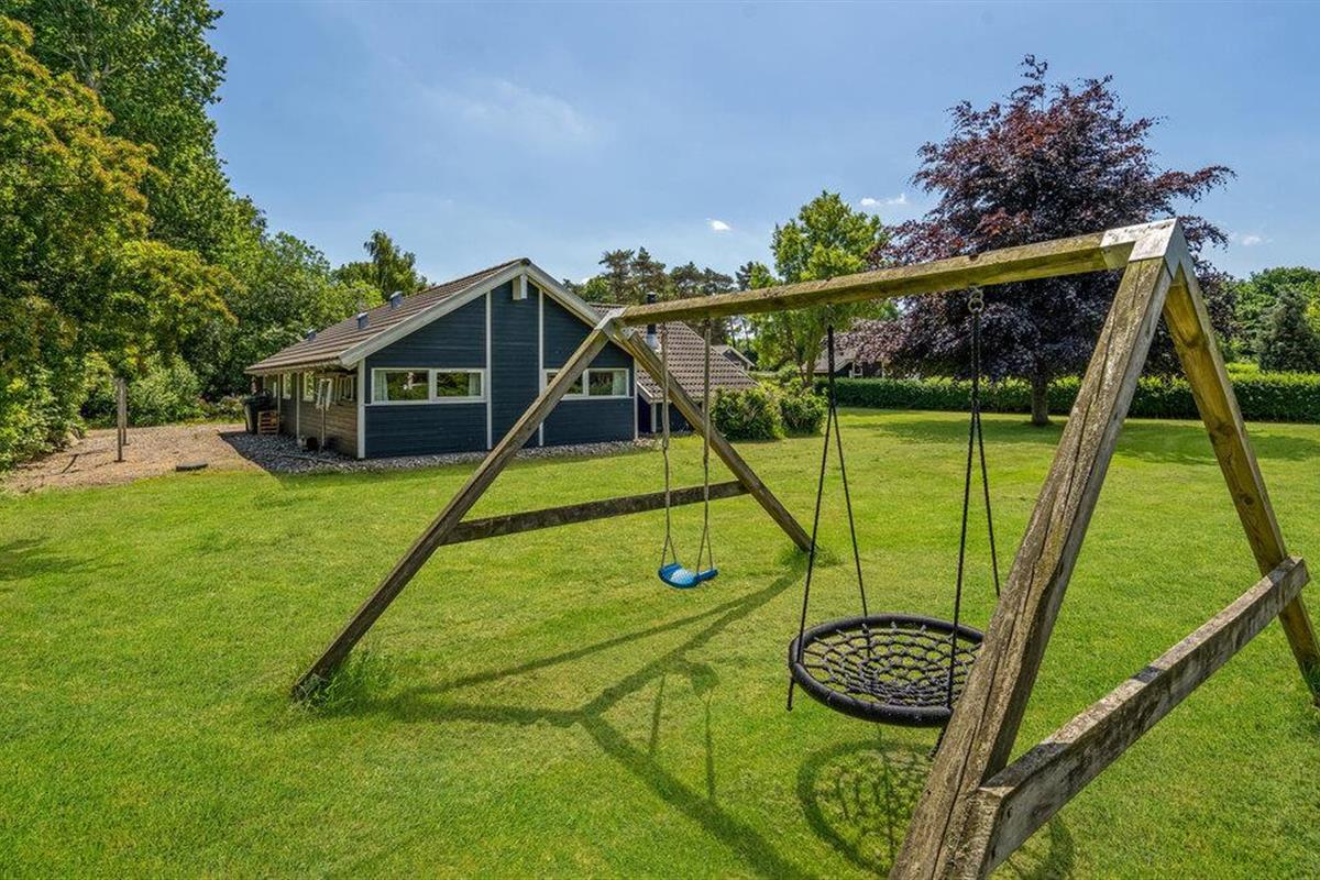 Sfeervol houten vakantiehuis in Tranekær, dichtbij strand en natuur, met whirlpool, sauna en speelruimte voor kinderen.