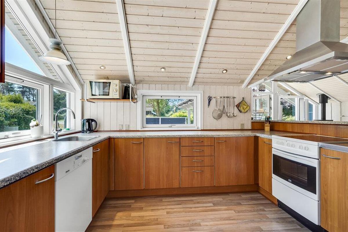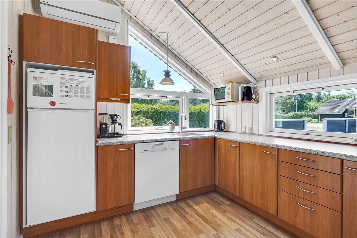 Dit mooie houten vakantiehuis ligt in Hou op het noordelijke puntje van Langeland. Vanaf het grote natuurperceel met zandbak, schommel en ruimte voor balspelen. is het slechts 300 m naar het strand. Het huis heeft vloerbedekking in alle slaapkamers, de badkamer heeft klinkervloeren en de andere kamers hebben houten vloeren. Het is smaakvol ingericht in lichte kleuren en heeft veel moderne gemakken zoals wasmachine, vaatwasser en droger. In de badkamer bevindt zich een 2 pers. whirlpool en sauna. 9 m² van het 31 m² grote terras zijn overdekt. Een goede keuze voor een gezin of een stel dat veel ruimte nodig heeft.
