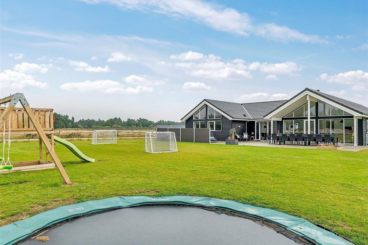 Geräumiges Ferienhaus mit schönem umzäunten Garten und somit ideal für Familien mit Kindern und Haustierbesitzer. Draußen auf dem zugehörigen Naturgrundstück können sich die Kinder mit Schaukel und Sandkasten sowie auf dem Klettergerüst oder dem Gartentrampolin (Nutzung nur auf eigenes Risiko!) vergnügen. Die große Terrassenfläche lädt zum Faulenzen in der Sonne und zu gemütlichen Grillabenden ein.