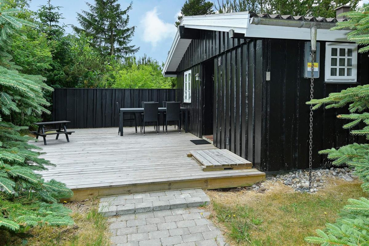 In einer ruhigen Sackgasse, mitten in der Blåbjerg Plantage, findet man in grüner Umgebung dieses traditionelle Ferienhaus mit Sauna.