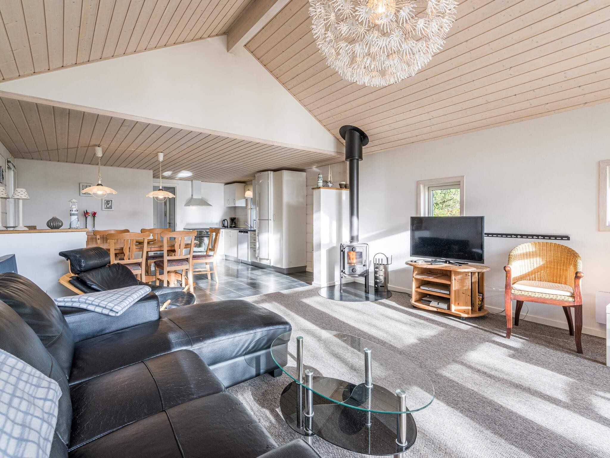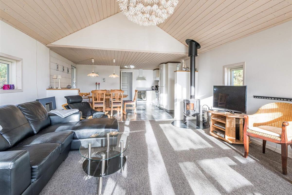 Dieses schöne Ferienhaus mit einer hellen und geräumigen Küche liegt auf einem schönen Grundstück am Ende einer Sackgasse. Die Küche und das Wohnzimmer liegen in offener Verbindung miteinander. Im Wohnzimmer ist die Decke bis zum Dach hoch gezogen. Hier ist auch der Kaminofen und der Ausgang auf die teilweise überdachte Terrasse. Ein wunderbares Ferienhaus das freundlich ist und auf einem guten Grundstück mit vielen Möglichkeiten zum Spielen und Ballspielen liegt. Ferienhaus in Houstrup mit Hund! Endreinigung ist im Preis enthalten!