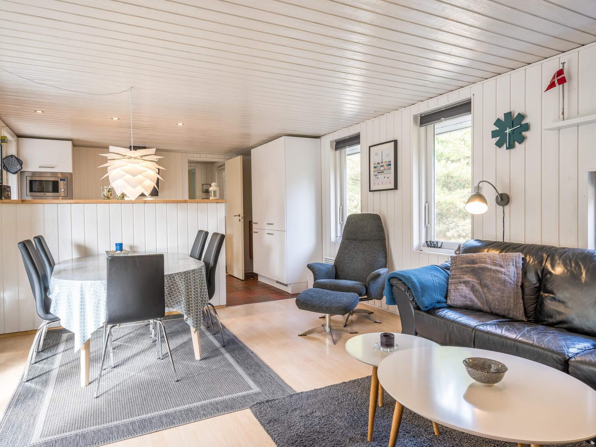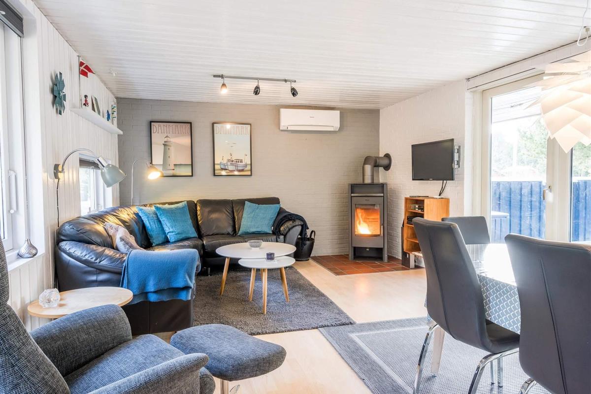 Gemütliches, helles Ferienhaus in Houstrup. Das Haus liegt auf großen Grundstück, wo es auch ein teilweise eingezäunten Bereich gibt, der prima für einen Vierbeiner geeignet ist. Das Ferienhaus verfügt über einen offenen Küchen-/Wohnbereich mit Kaminofen für die kühlere Jahreszeit. Es stehen im Haus auch zwei Schlafzimmer mit einem Doppelbett bzw. zwei Einzelbetten bereit. Das Badezimmer des Hauses ist hell. Freies WLAN vorhanden.