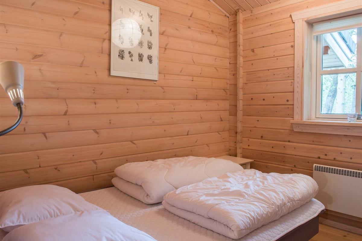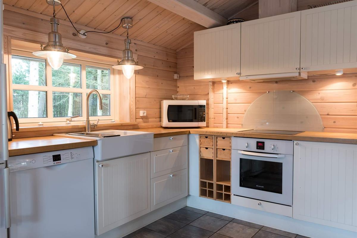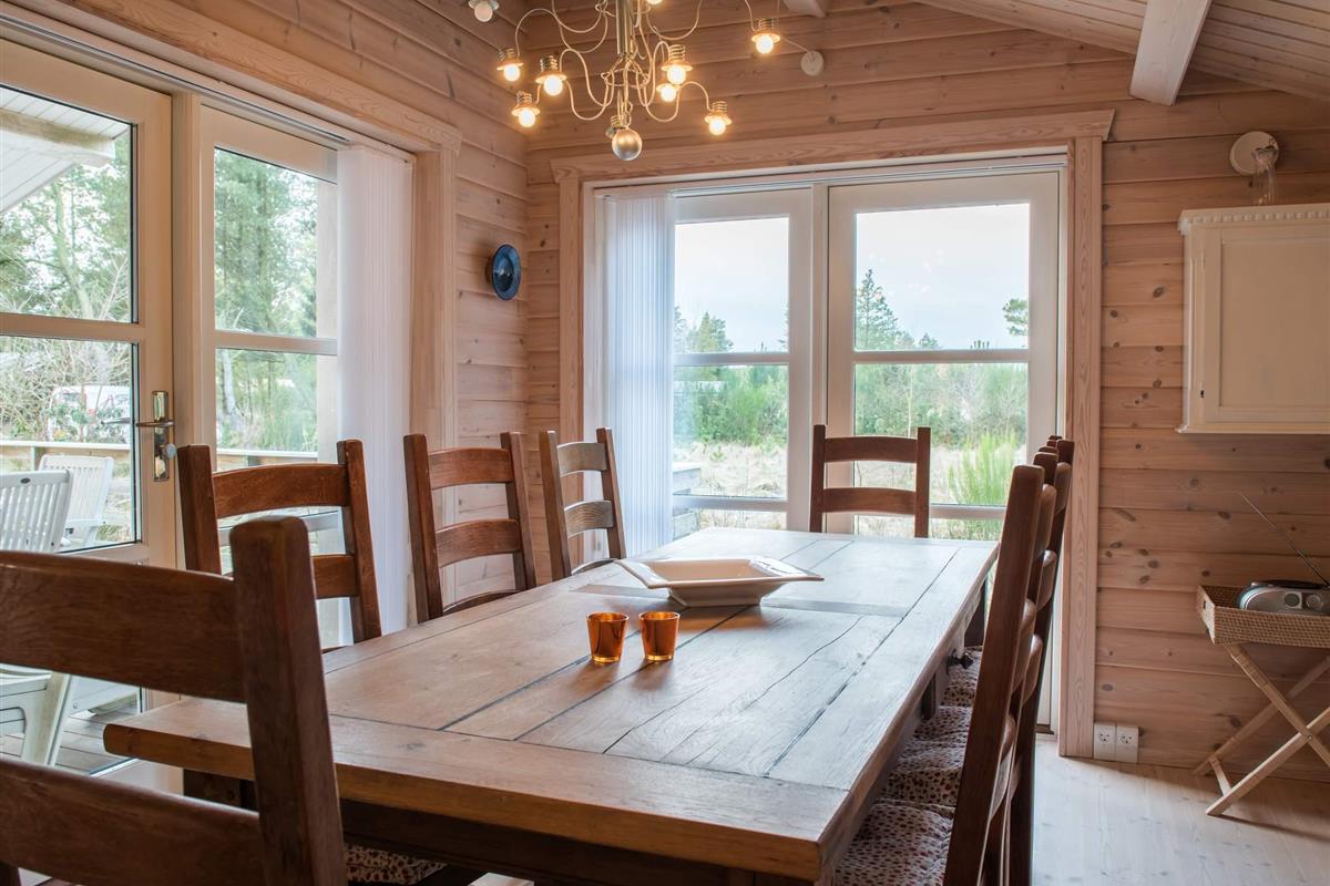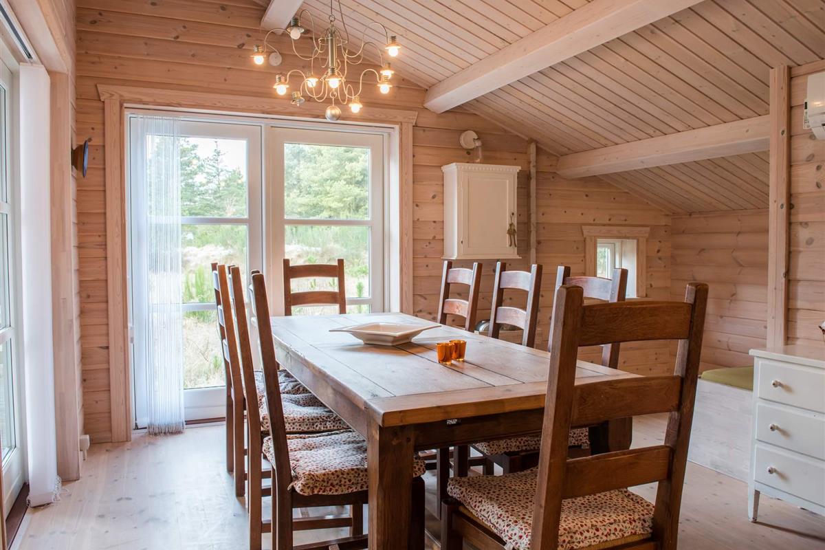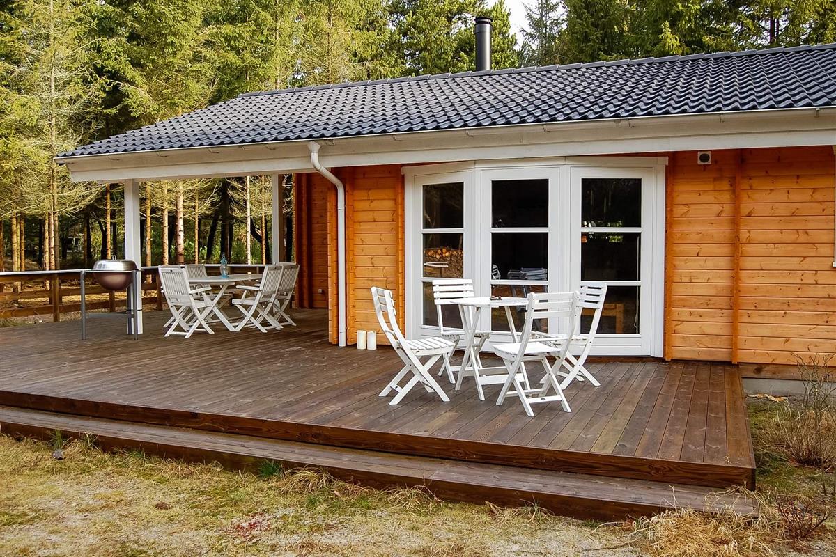 Richtig schönes und gemütliches Blockhaus mitten in einen tollen Waldgebiet mit reichem Tierleben. Mit dem Kaminofen als natürlichen Mittelpunkt strahlt das Haus viel Gemütlichkeit aus. Die helle Küche und das Wohnzimmer liegen in offener Verbindung miteinander und vom Wohnzimmer ist auch der Ausgang auf die teilweise überdachte Holzterrasse. Das Haus ist in hellen Farben eingerichtet und hat die natürlichen Balkenwände sowie Holzfußboden. Alle Zimmer sind ebenfalls in hellen Farben eingerichtet und geräumig möbliert. Endreinigung ist im Preis enthalten!