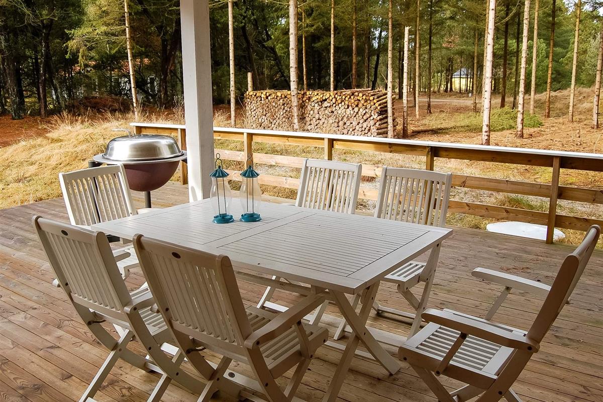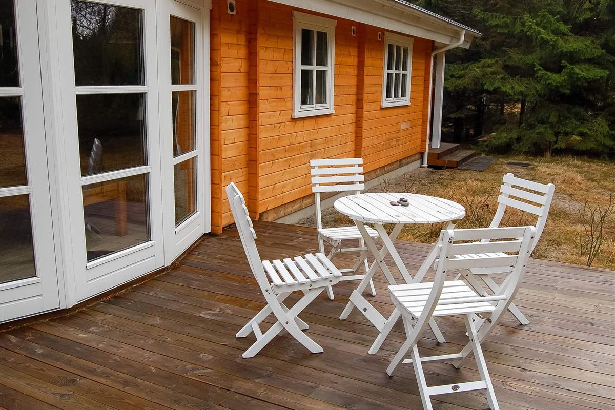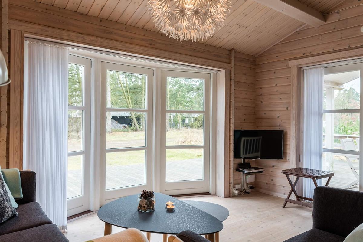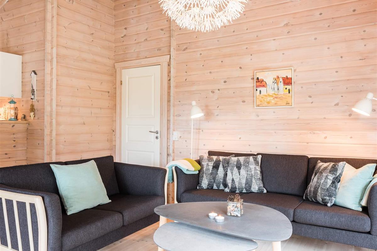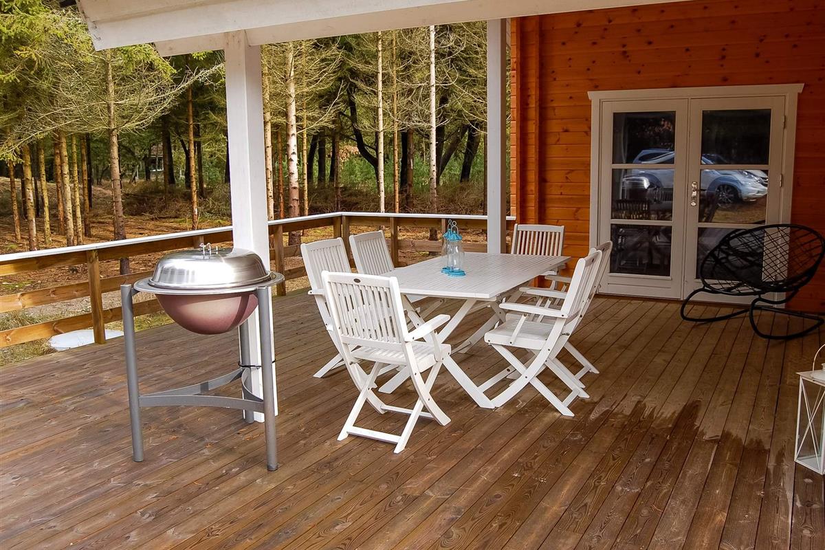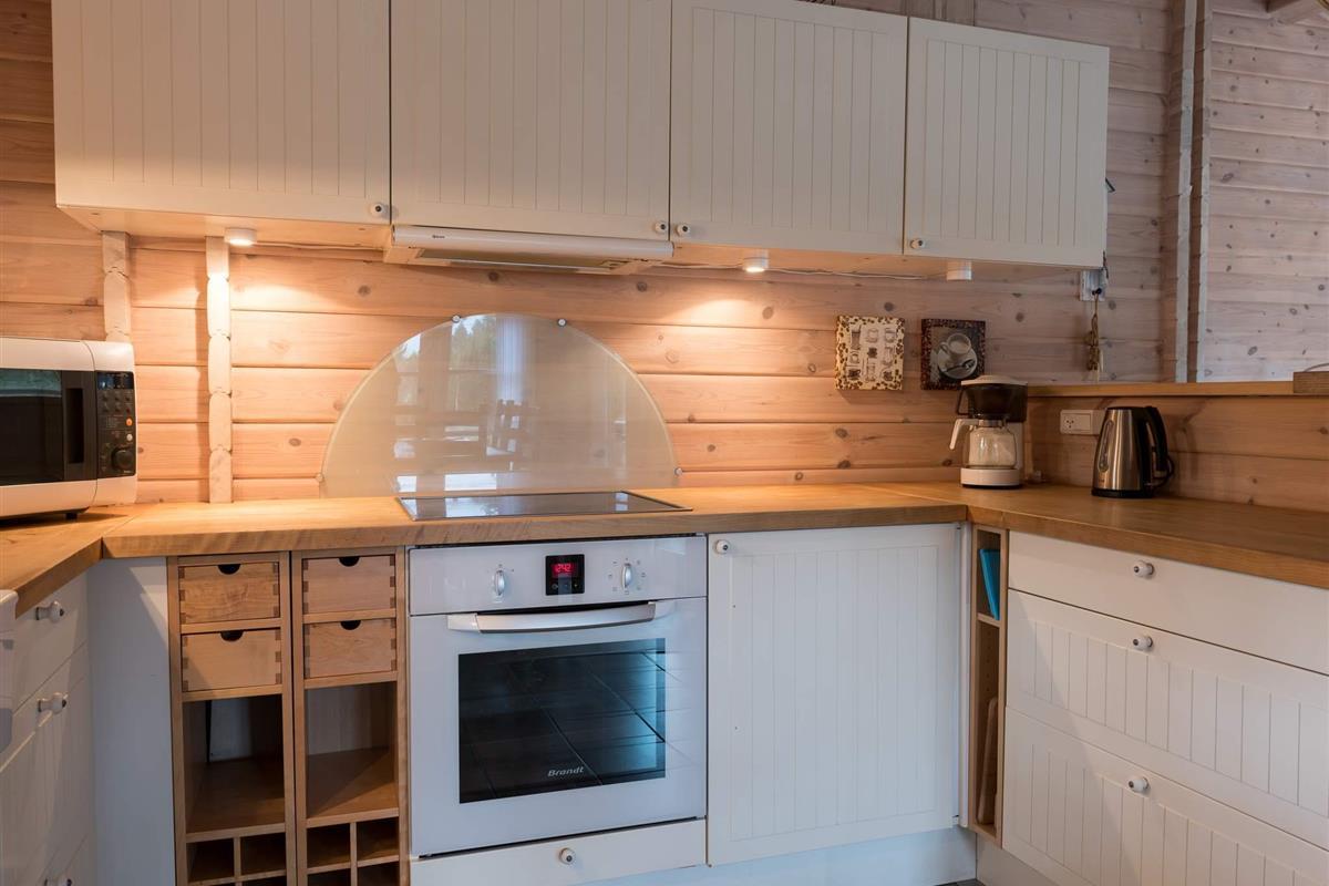 Richtig schönes und gemütliches Blockhaus mitten in einen tollen Waldgebiet mit reichem Tierleben. Mit dem Kaminofen als natürlichen Mittelpunkt strahlt das Haus viel Gemütlichkeit aus. Die helle Küche und das Wohnzimmer liegen in offener Verbindung miteinander und vom Wohnzimmer ist auch der Ausgang auf die teilweise überdachte Holzterrasse. Das Haus ist in hellen Farben eingerichtet und hat die natürlichen Balkenwände sowie Holzfußboden. Alle Zimmer sind ebenfalls in hellen Farben eingerichtet und geräumig möbliert. Endreinigung ist im Preis enthalten!