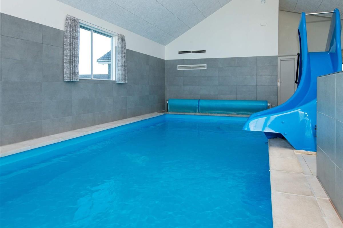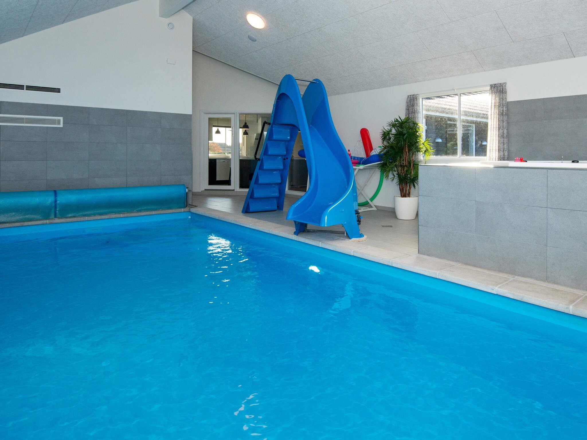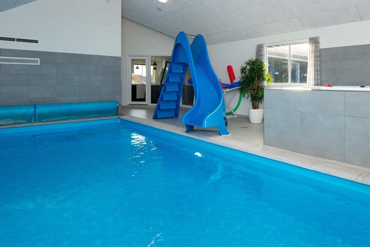 Der Pool ist 23 m² groß und hat zur großen Freunde der Kinder eine Rutsche. Um die Fitness zu trainieren, kann der Schwimmtrainer genutzt werden. Zur Entspannung stehen im Poolbereich außerdem ein großer Whirlpool und eine Sauna mit Platz für jeweils max. sechs Personen bereit.