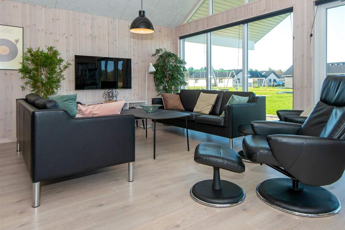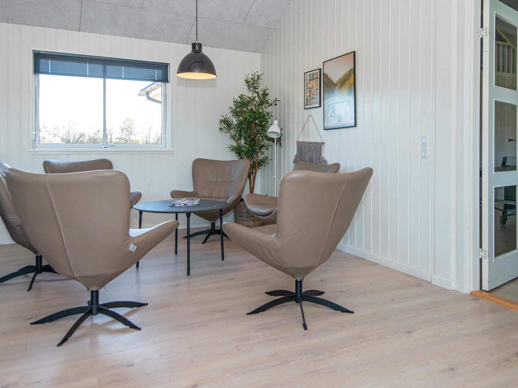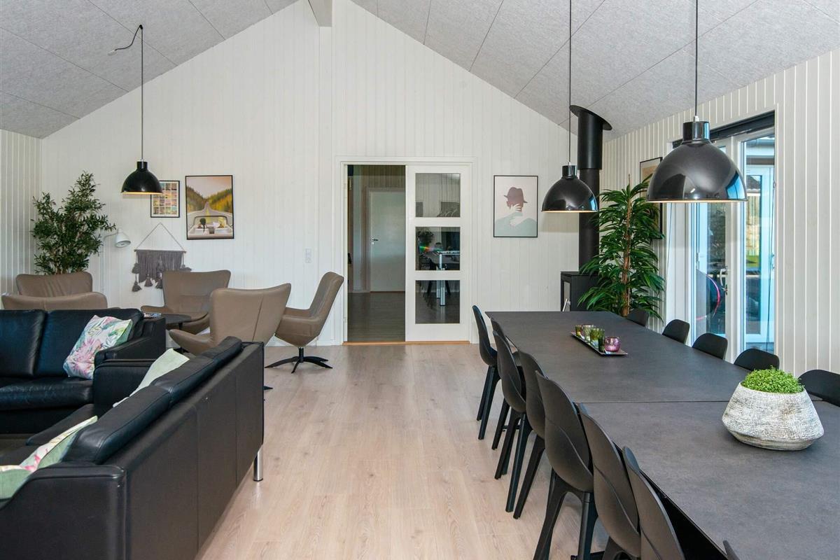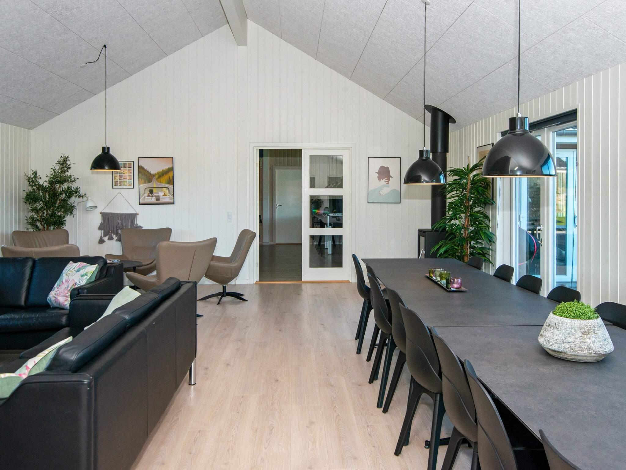 Für das Familienleben gibt es neben dem Aktivitätsraum einen geräumigen Küchen-/Aufenthaltsbereich mit Ess- und Sitzecke. Beide Räume sind mit Sitzgelegenheiten mit TV eingerichtet, in denen man es sich gemütlich machen kann. Im Aktivitätsraum gibt es eine Bartheke mit Kühlschrank für gesellige Abende, im Wohnbereich einen gemütlichen Holzofen für die kühlere Jahreszeit. Die Einrichtung ist hell und wohnlich gestaltet, inklusive modernem Mobiliar.