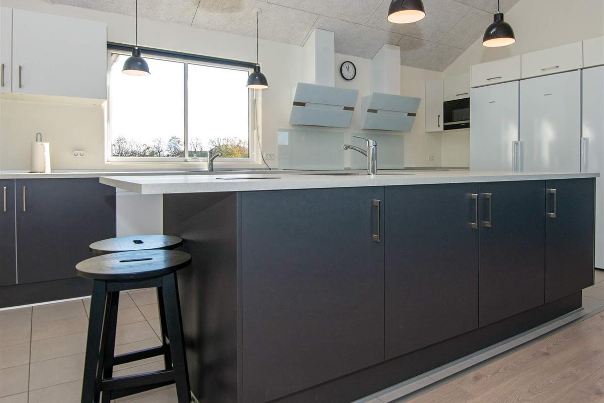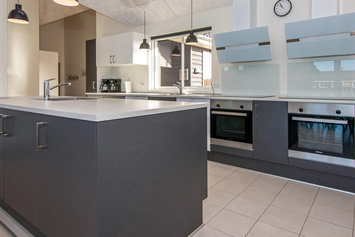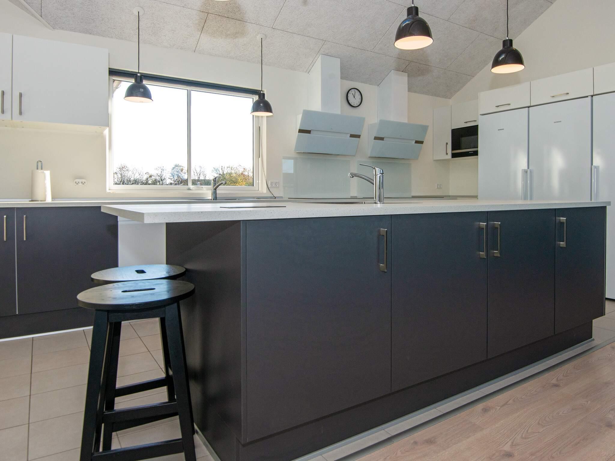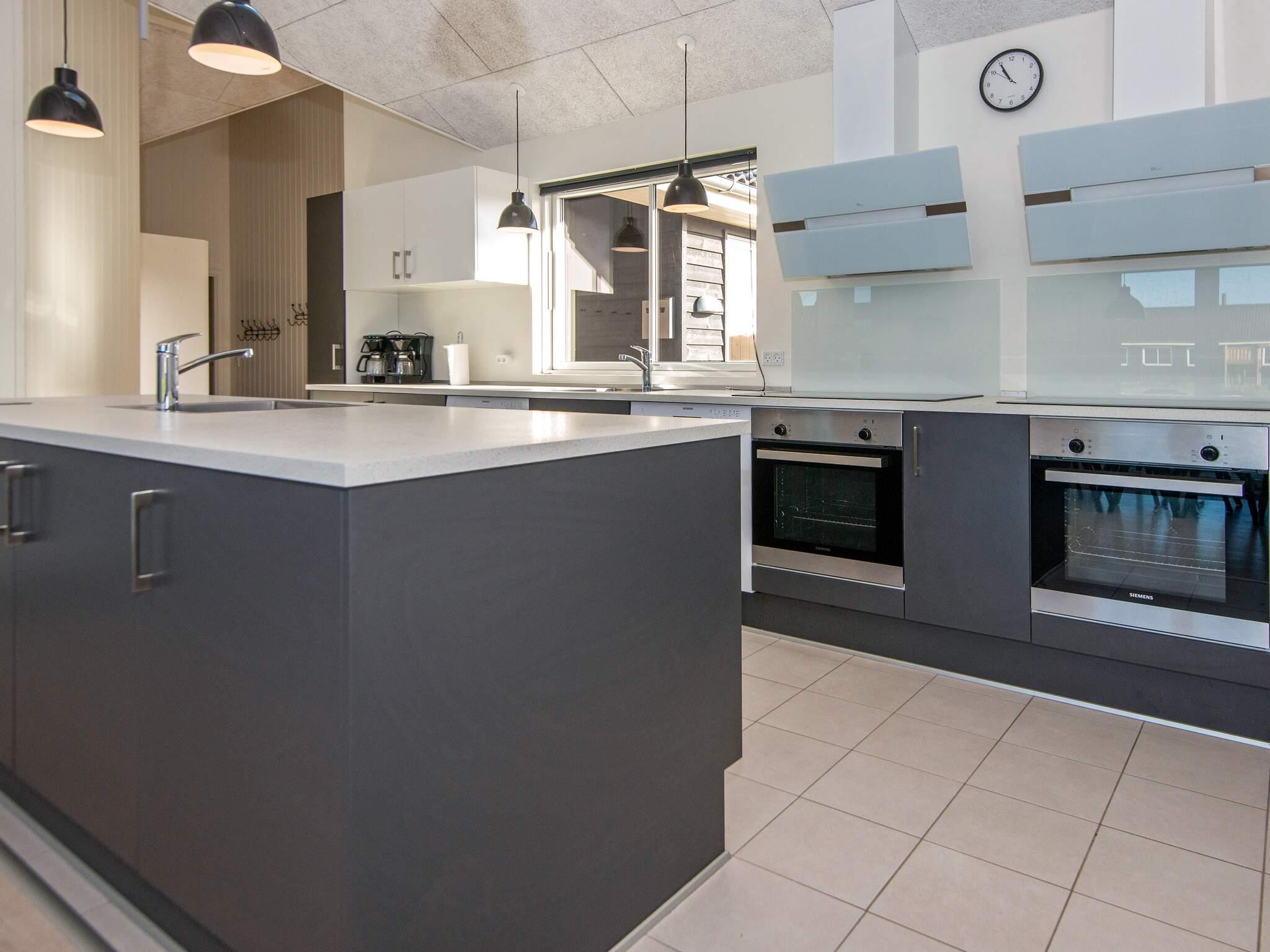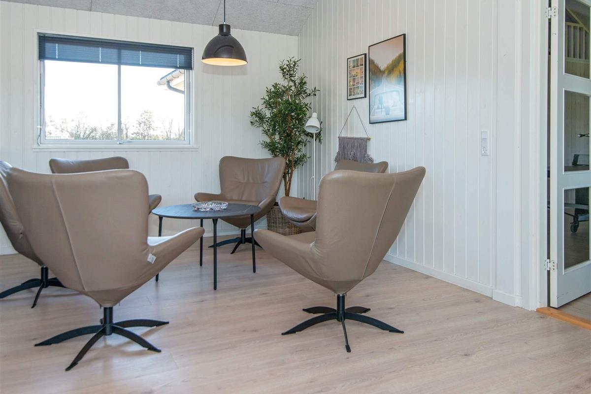 Für das Familienleben gibt es neben dem Aktivitätsraum einen geräumigen Küchen-/Aufenthaltsbereich mit Ess- und Sitzecke. Beide Räume sind mit Sitzgelegenheiten mit TV eingerichtet, in denen man es sich gemütlich machen kann. Im Aktivitätsraum gibt es eine Bartheke mit Kühlschrank für gesellige Abende, im Wohnbereich einen gemütlichen Holzofen für die kühlere Jahreszeit. Die Einrichtung ist hell und wohnlich gestaltet, inklusive modernem Mobiliar.
