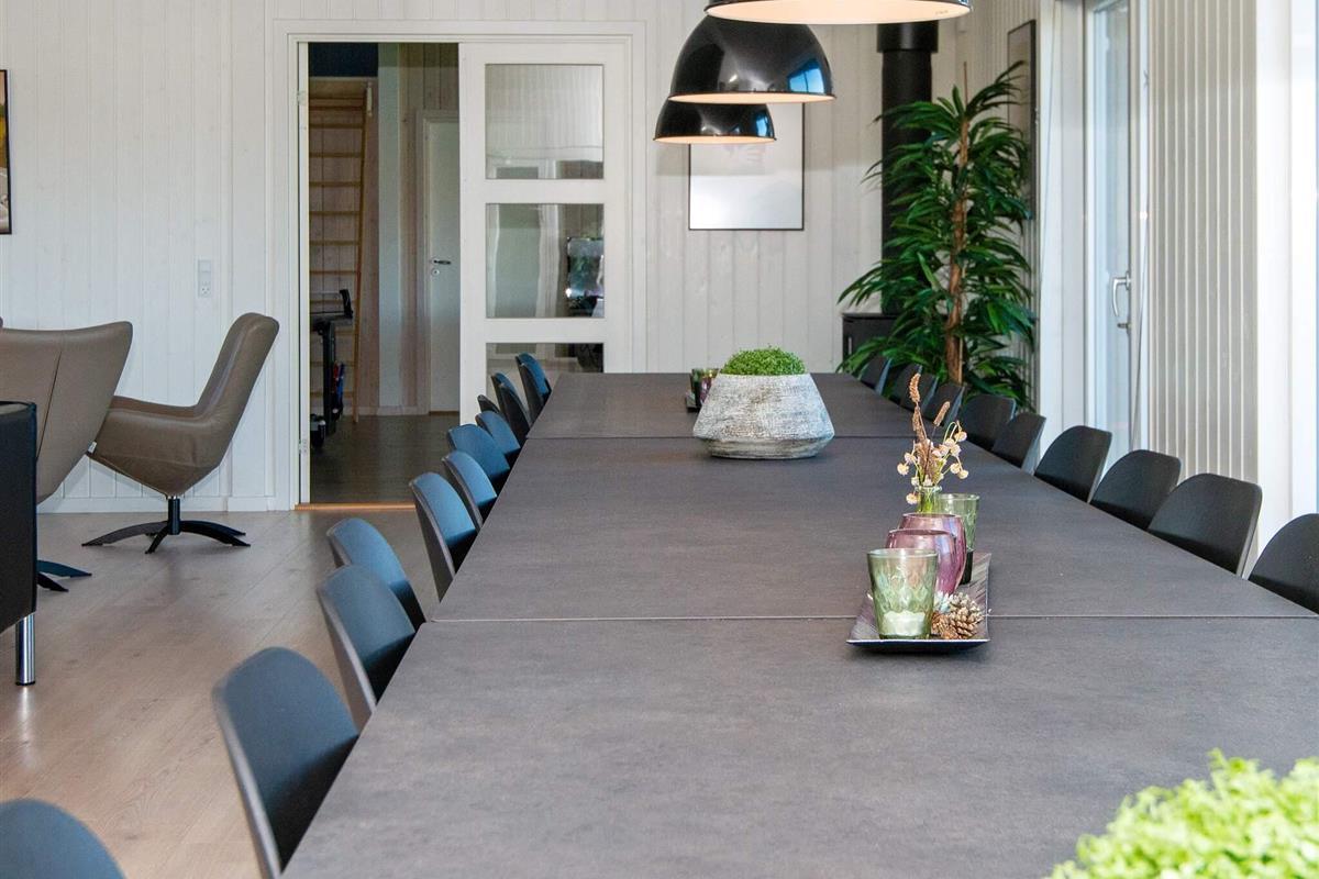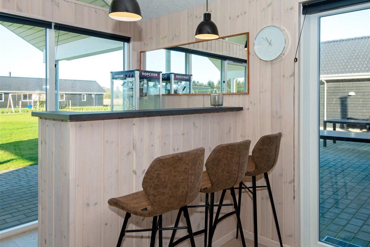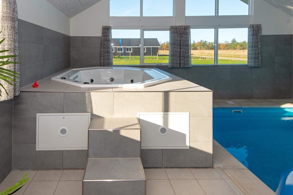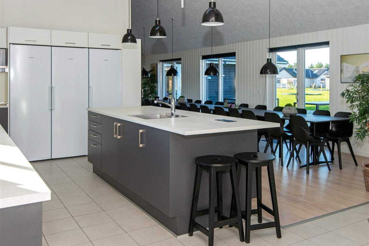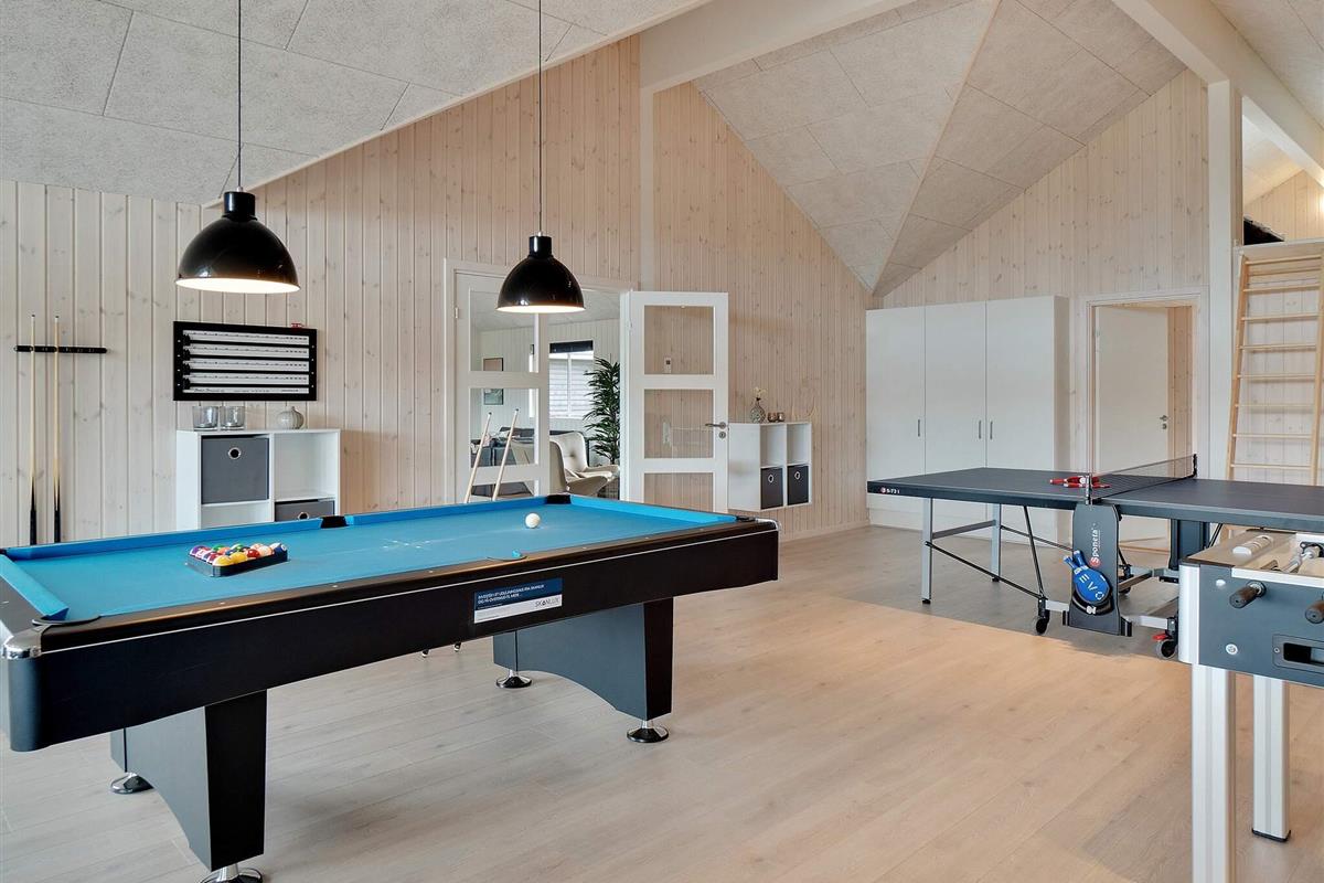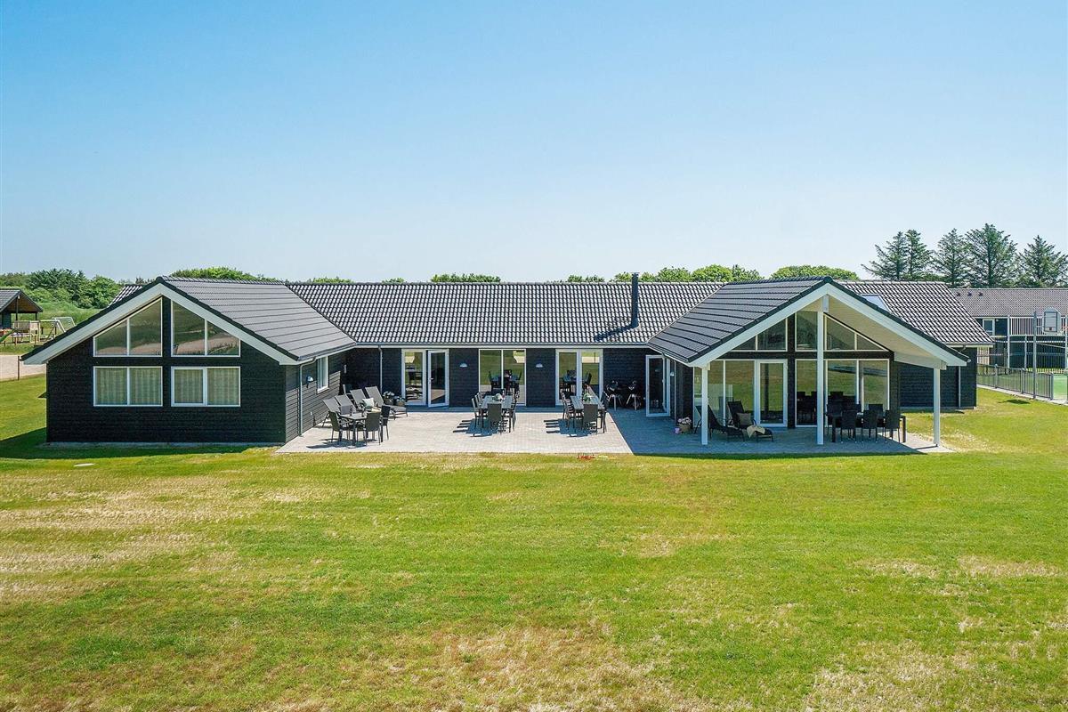Dieses besonders geräumige Ferienhaus ist mit 12 Schlafzimmern sowie 6 weiteren Schlafplätzen oben auf dem Hems ausgestattet und bietet somit Platz für bis zur 30 Personen. Im großen, sogenannten Aktivitätsraum stehen außer einer Bartheke und einer Sitzgruppe auch diverse Spiele für den Freizeitspaß bereit. Für den Badespaß gibt es einen Poolbereich mit Pool sowie Sauna und Whirlpool für die Erholung.
