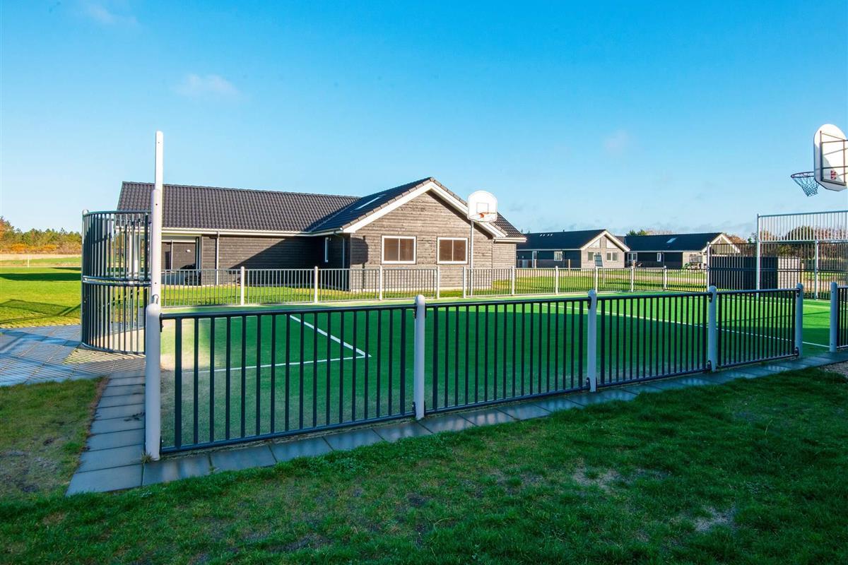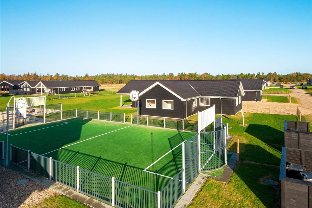 Im Außenbereich wurden auf einer Fläche zwischen zwei Häusern ein Spielplatz sowie ein sogenannter Multisportplatz angelegt, zu denen das Nachbarhaus ebenfalls Zutritt hat. Die Firma HAGS, bekannt als führender Hersteller der Branche, ist für die Einrichtung und Ausstattung des Platzes verantwortlich gewesen und legt dabei großen Wert auf Sicherheit. Hier gibt es für jeden etwas! Kinder freuen sich über Schaukelgerüst, Spielturm, Rutsche und Klettergerüst. Der Sportplatz selbst ist mit Kunstrasen belegt ist und kann sowohl für Fußball, Basketball, Fußballtennis, Volleyball als auch für Badminton genutzt werden. Zwischen Sport- und Spielplatz gibt es einen Aufenthaltsbereich mit Tischen und Bänken für eine Erfrischung oder eine Pause zwischendrin. Das abgesenkte Gartentrampolin kann nur auf eigenes Risiko genutzt werden.