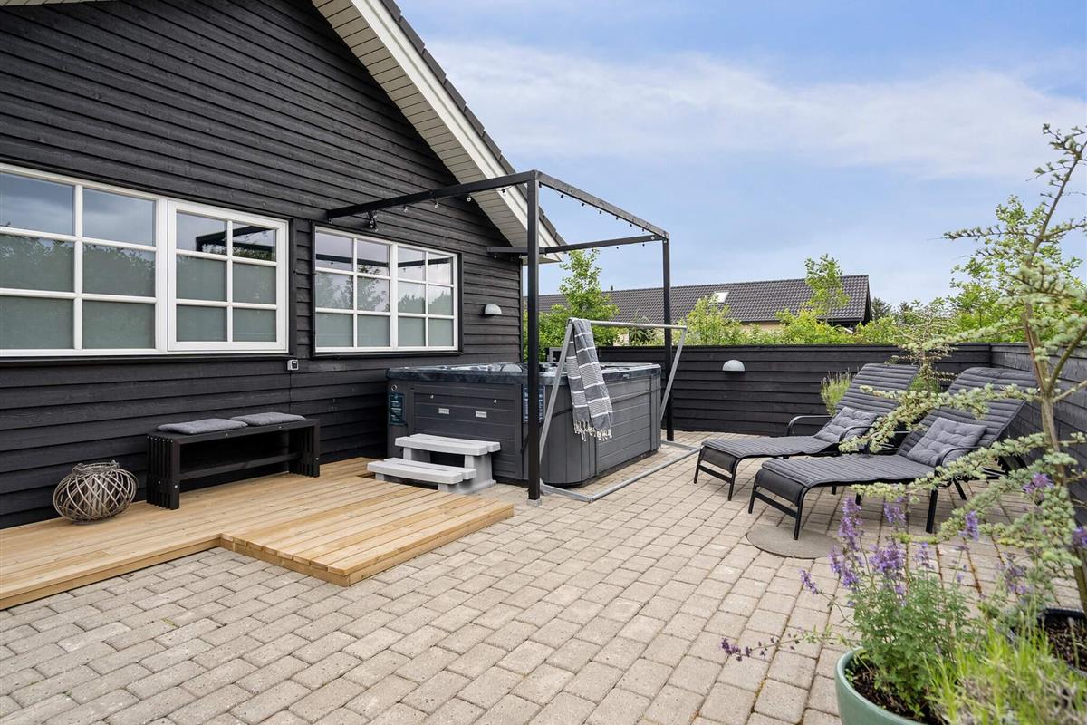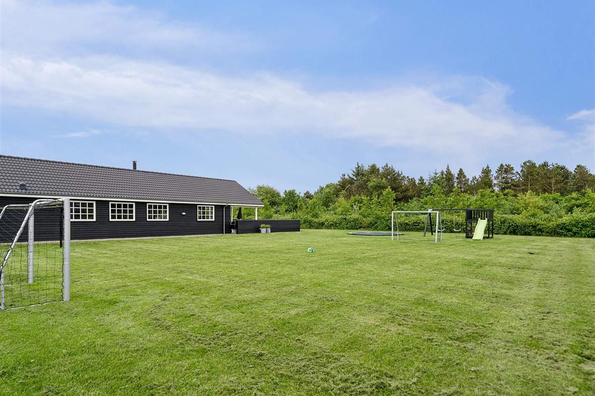 Auf der großen Terrasse kann man sonnige Tage und lauschige Grillabende genießen, dafür stehen Gartenmöbel und Grill bereit. Suchen Sie Schatten oder Windschutz, werden Sie hier ebenfalls fündig. Für Kinder stehen auf dem Grundstück Schaukel-/Spielgerüst, kleiner Sandkasten und ein eingelassenes Gartentrampolin (Nutzung nur auf eigenes Risiko!) bereit, dazu zwei Tore. Das großflächige Rasengrundstück ist ringsum eingezäunt. Zudem schöner Whirlpool im Außenbereich vorhanden.