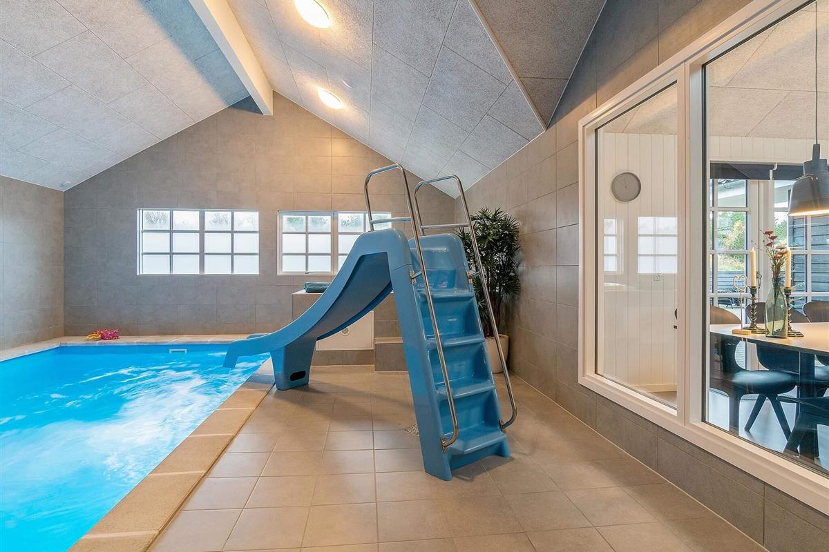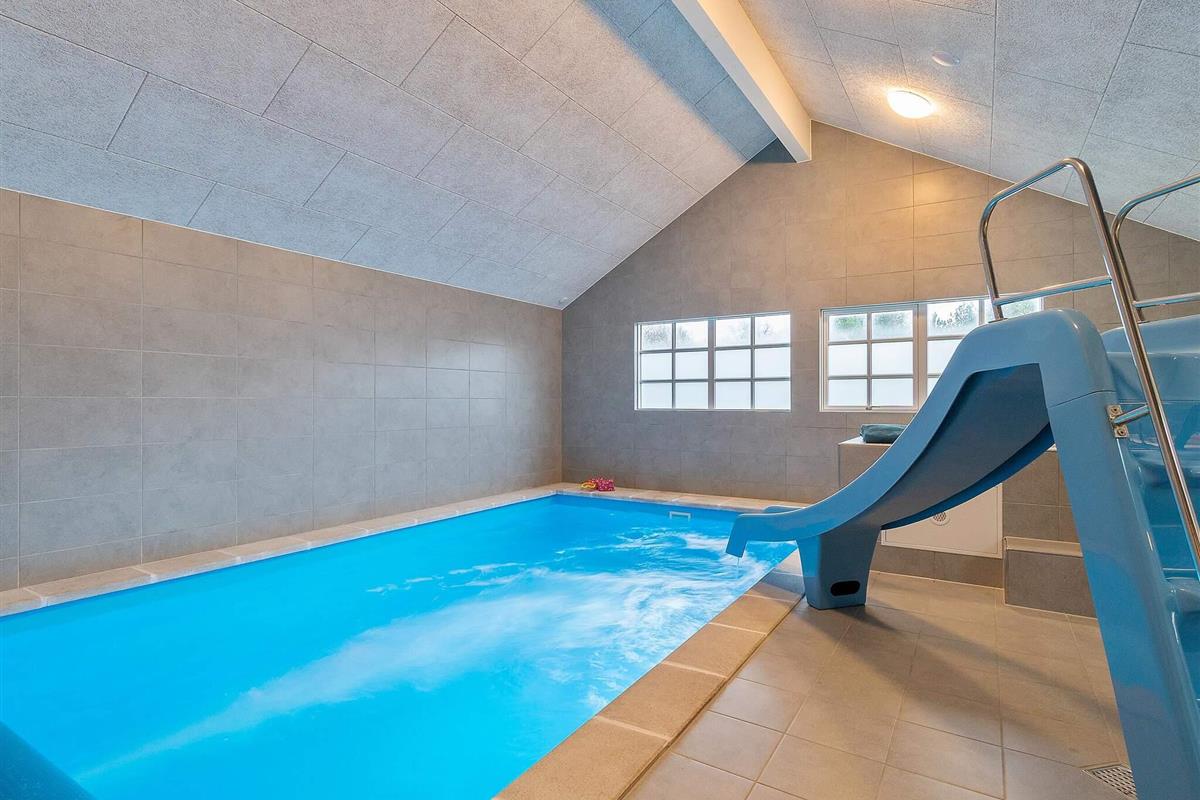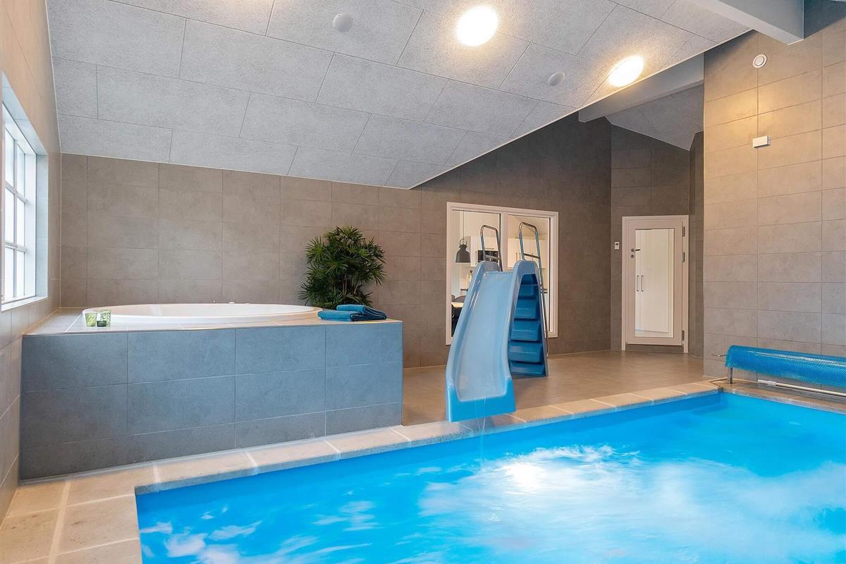 Der Poolbereich des Hauses ist mit einem 18 m2 großen Pool mit Rutsche für die Kinder und Schwimmtrainer für die Fitness der Erwachsenen eingerichtet. Das Badewasser im Pool ist bei Ankunft erwärmt und so gleich für den Badespaß bereit. Zudem stehen Whirlpool und Sauna zur Verfügung. Im Außenbereich steht ebenfalls eine schöner Whirlpool zur Erholung bereit.