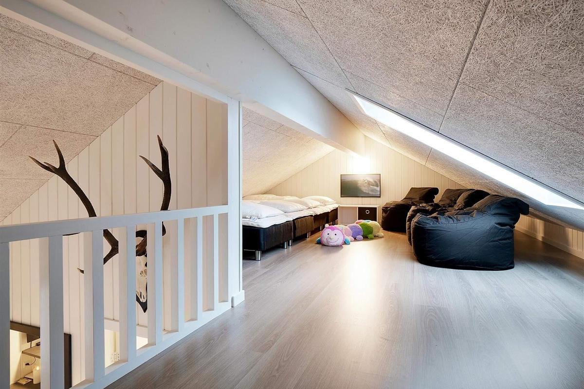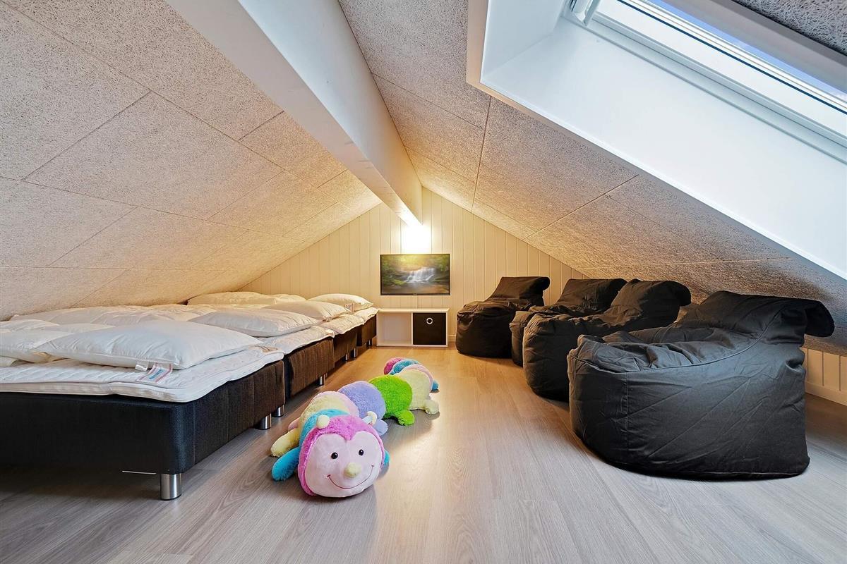 Es stehen im Haus insgesamt sieben Schlafzimmer und drei Bäder zur Auswahl. Außerdem befinden sich oben auf dem offenen Hems über dem Aktivitätsraum vier weitere Schlafplätze, die sich jedoch nur für Kinder/Jugendliche anbieten.