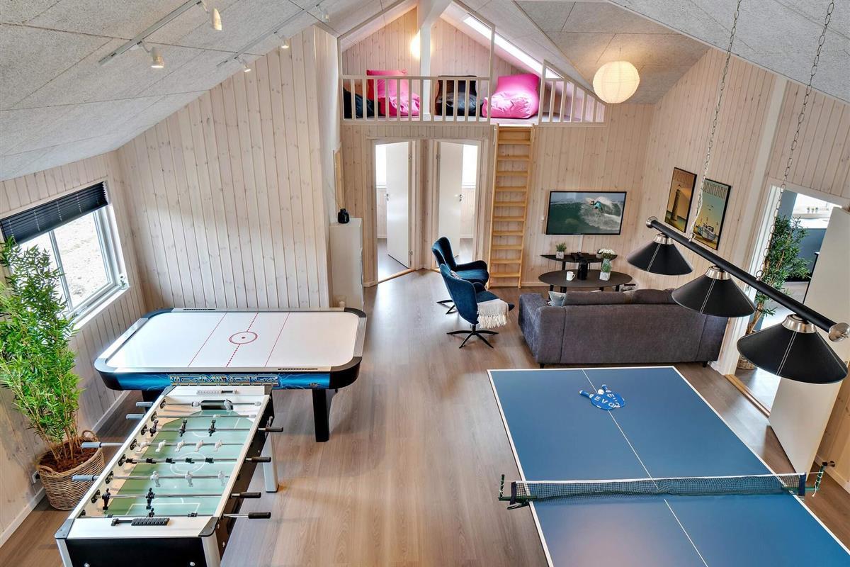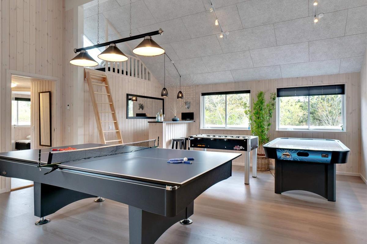 Das Ferienhaus liegt am Houstrup Strand an der Westküste und bietet zahlreiche Aktivitäten. Sie können zum Beispiel eine Partie Billard spielen oder beim Tischtennis, Airhockey oder Tischfußball gegeneinander antreten. Im Aktivitätsraum finden Sie außerdem eine Dartscheibe und eine PlayStation 4. Kalte Getränke erhalten Sie an der Bar in der Ecke.