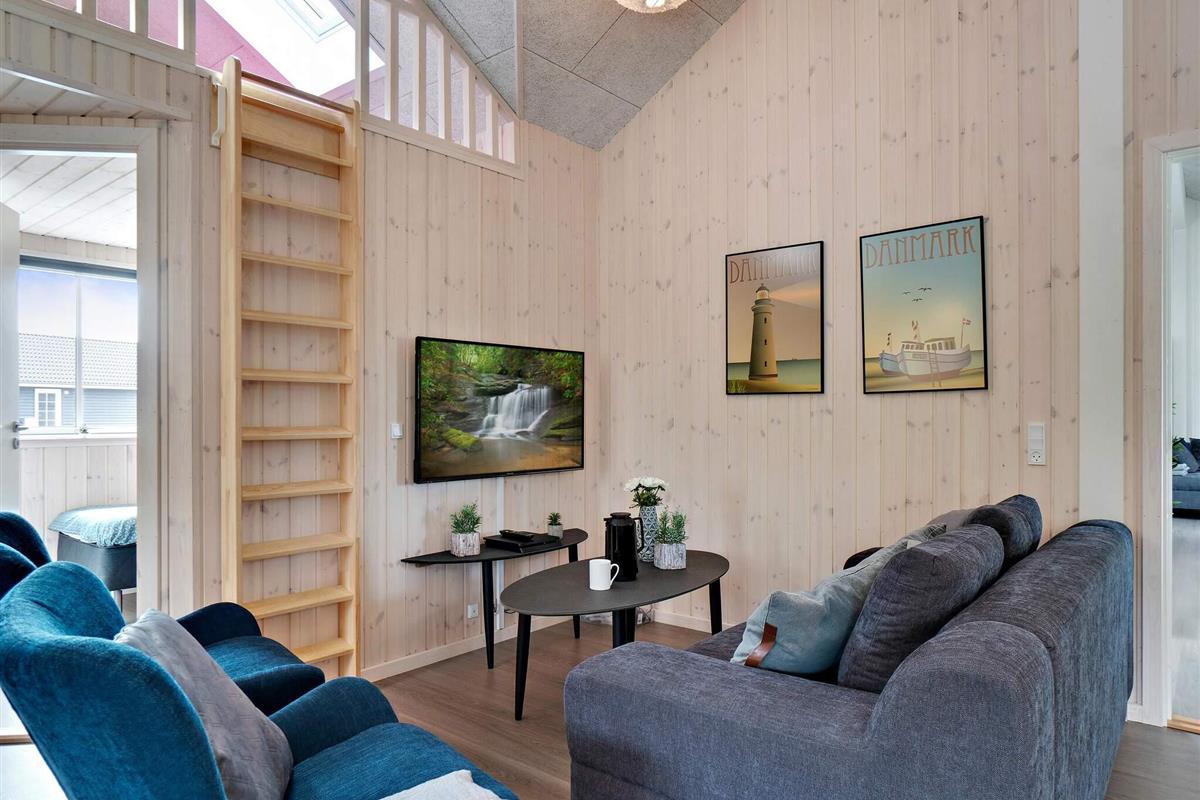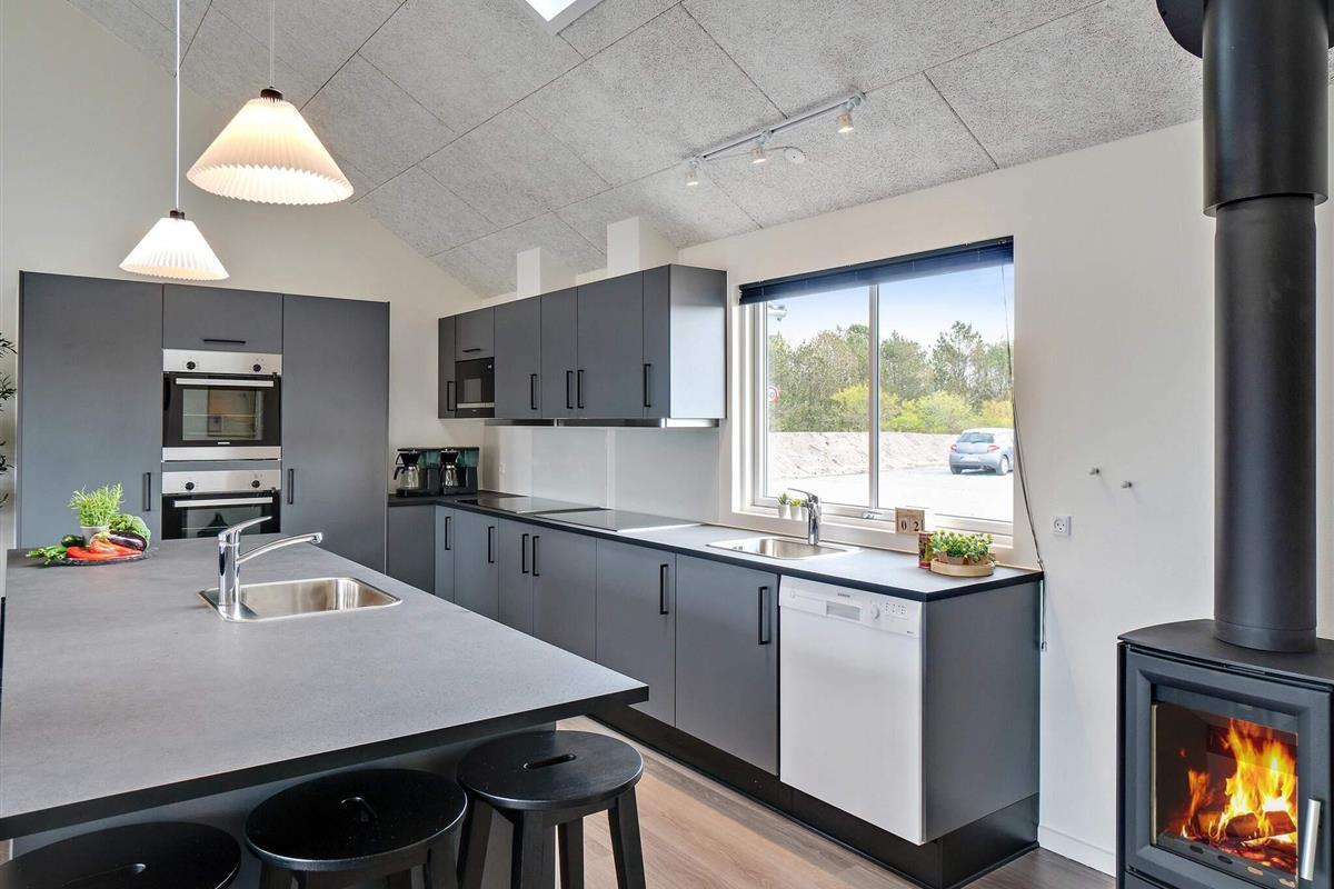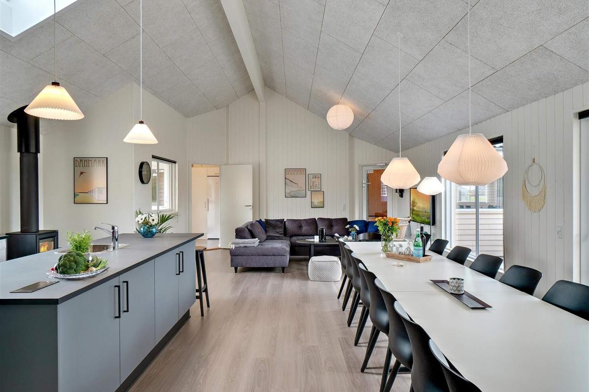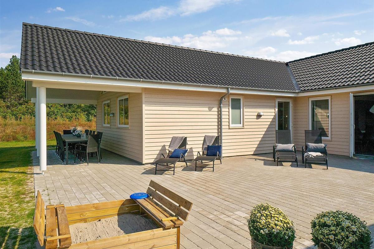 Houstrup ist bekannt für seinen schönen, breiten Sandstrand mit seiner wunderschönen Dünenlandschaft. Der Strand ist mit der Blauen Flagge ausgezeichnet und daher ein beliebtes Ausflugsziel. Im Sommer können Sie in der Sonne entspannen, aber auch an kühleren Tagen lädt der Strand zu Wassersport und anderen Aktivitäten ein. In der Nähe des Hauses finden Sie Einkaufsmöglichkeiten und Restaurants. Die Blåbjerg Klitplantage ist ein schöner Ort für Spaziergänge oder Mountainbiketouren. Nicht an Jugendgruppen vermietbar.