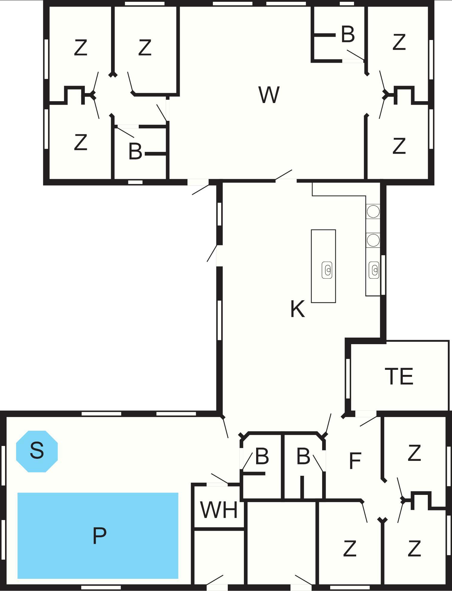 Wenn die ganze Familie zusammen in den Urlaub fährt, kann es schwierig sein, ein ausreichend großes Ferienhaus zu finden – hier ist das jedoch nicht der Fall! Dieses Ferienhaus bietet Platz für bis zu 20 Personen und verfügt über 8 Schlafzimmer und 4 Schlafplätze im Dachgeschoss, das bei den Kindern und Jugendlichen der Familie immer beliebt ist.