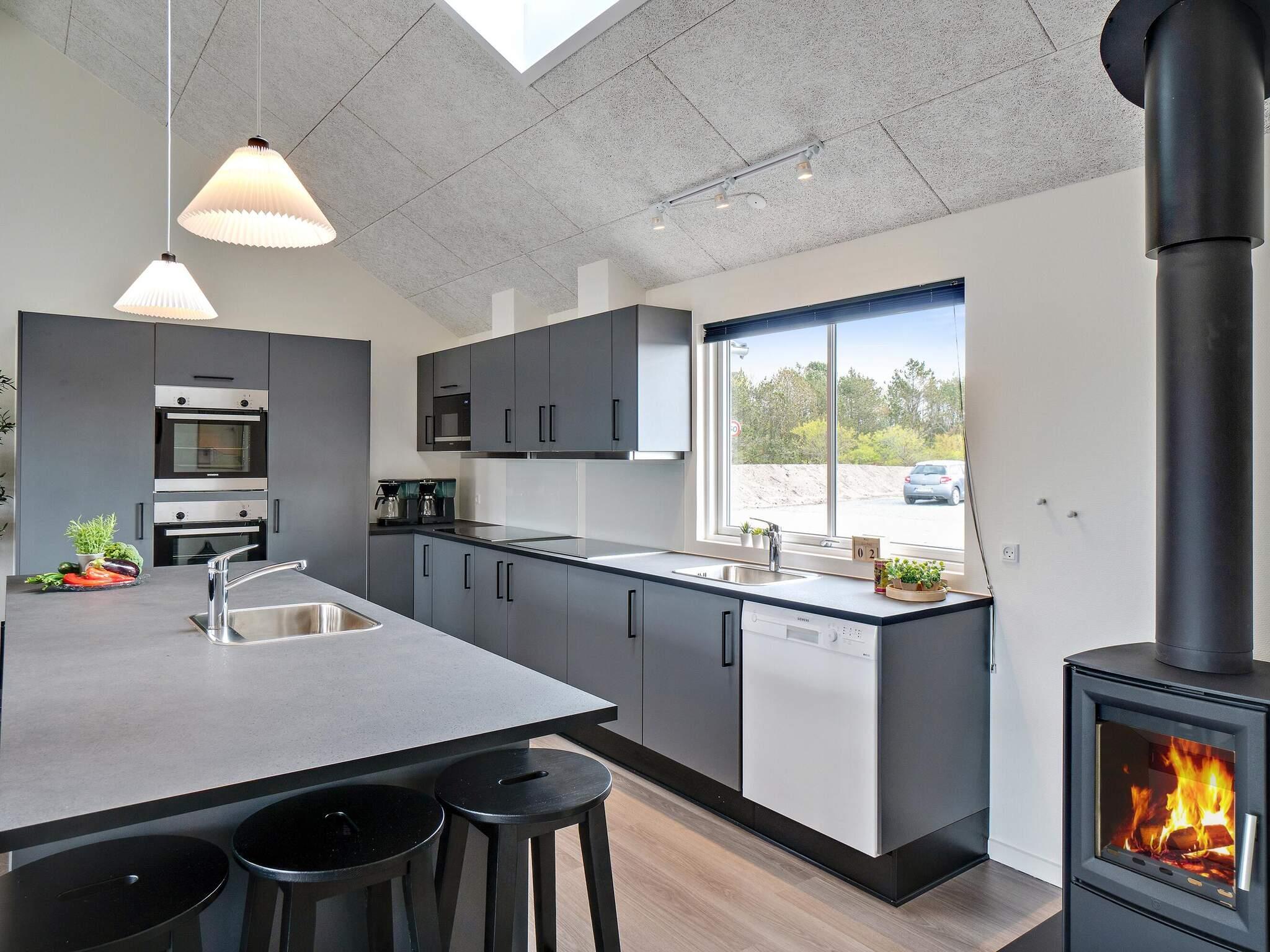 Die große Wohnküche bietet ausreichend Platz zum gemeinsamen Kuchenbacken, Spielen oder Filmeschauen. Die Küche ist mit zwei Backöfen, zwei Geschirrspülern, zwei Spülbecken und viel Platz im Kühl-/Gefrierschrank ausgestattet, sodass auch mehrere Personen problemlos kochen können. Im Wohnzimmer sorgt ein Holzofen für wohlige Wärme an kühlen Tagen.