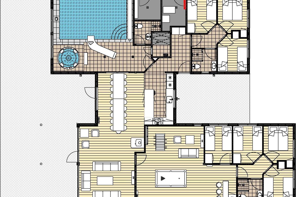 7 Soveværelser: (1DS)+(1DS)+(2S)+(2S)+(2S)+(2S)+(2S)