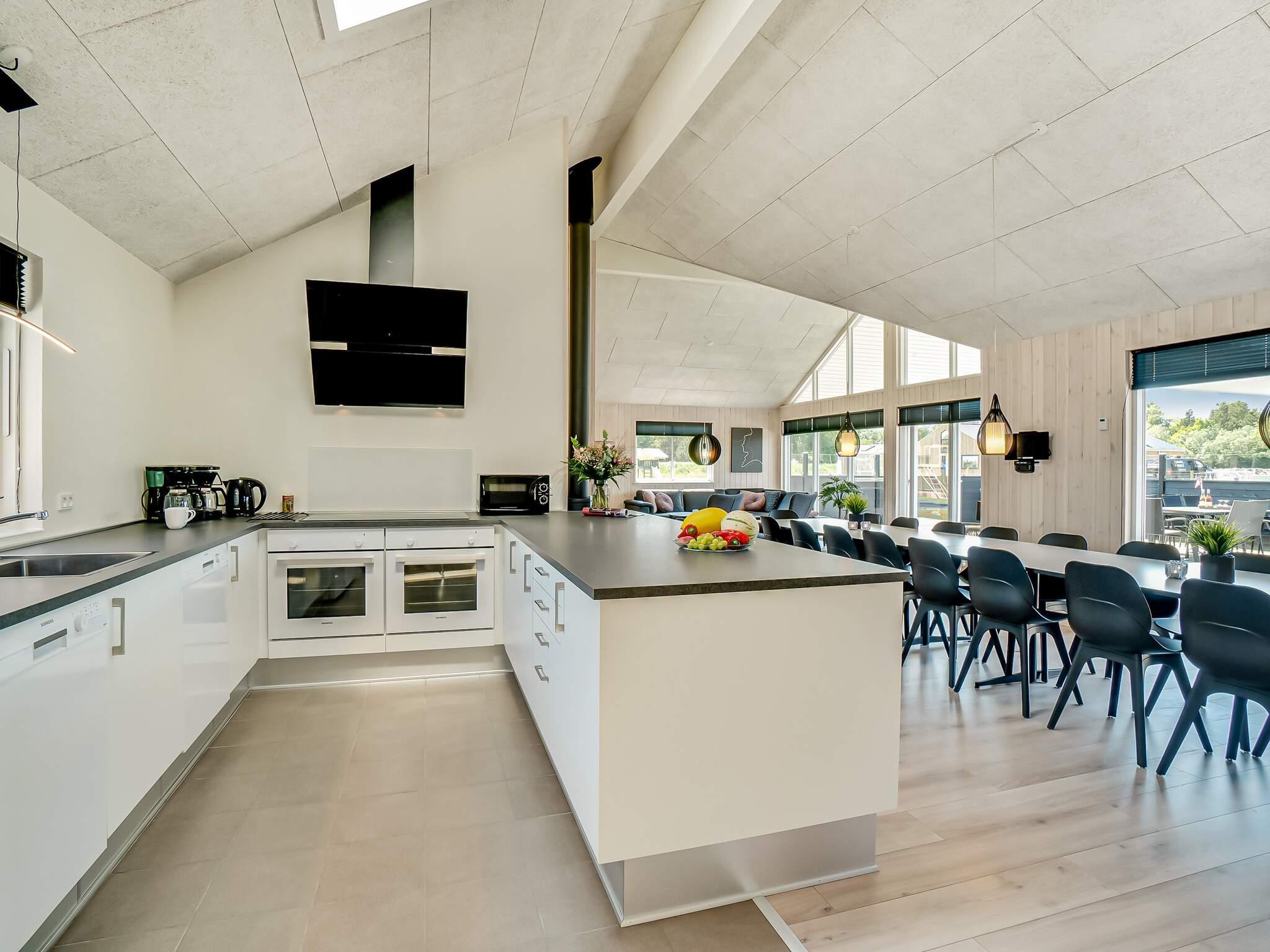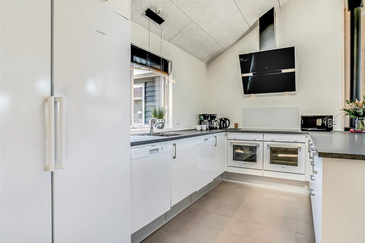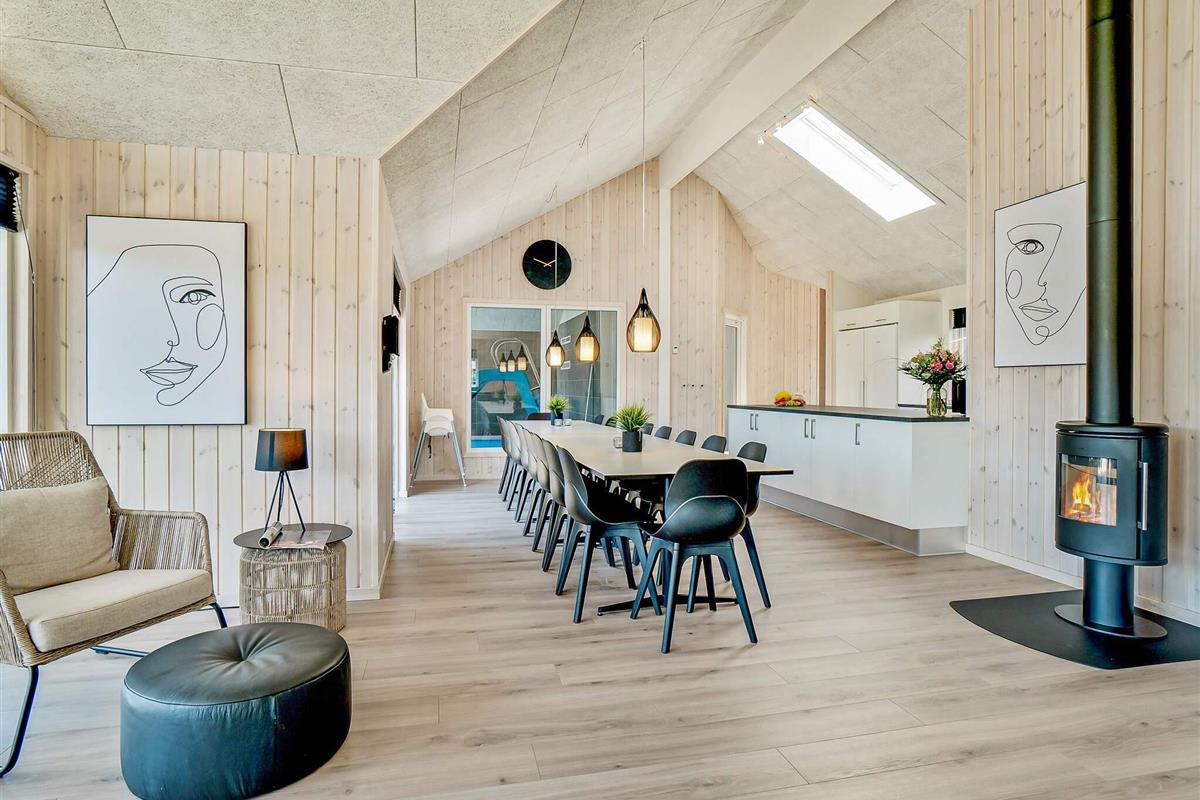 Sommerhuset er perfekt til en stor familie eller flere familier, der ønsker at holde ferie sammen. Den indhegnede have giver trygge rammer, hvor både børn og hunde frit kan lege. Husets naturlige samlingspunkt er det store køkken-alrum, hvor køkken, spiseplads og opholdsstue er samlet. Her kan I tilberede lækre feriemåltider i det veludstyrede køkken, samles omkring det lange spisebord eller slappe af i sofaen foran TV’et, mens brændeovnen spreder hygge på kølige aftener.