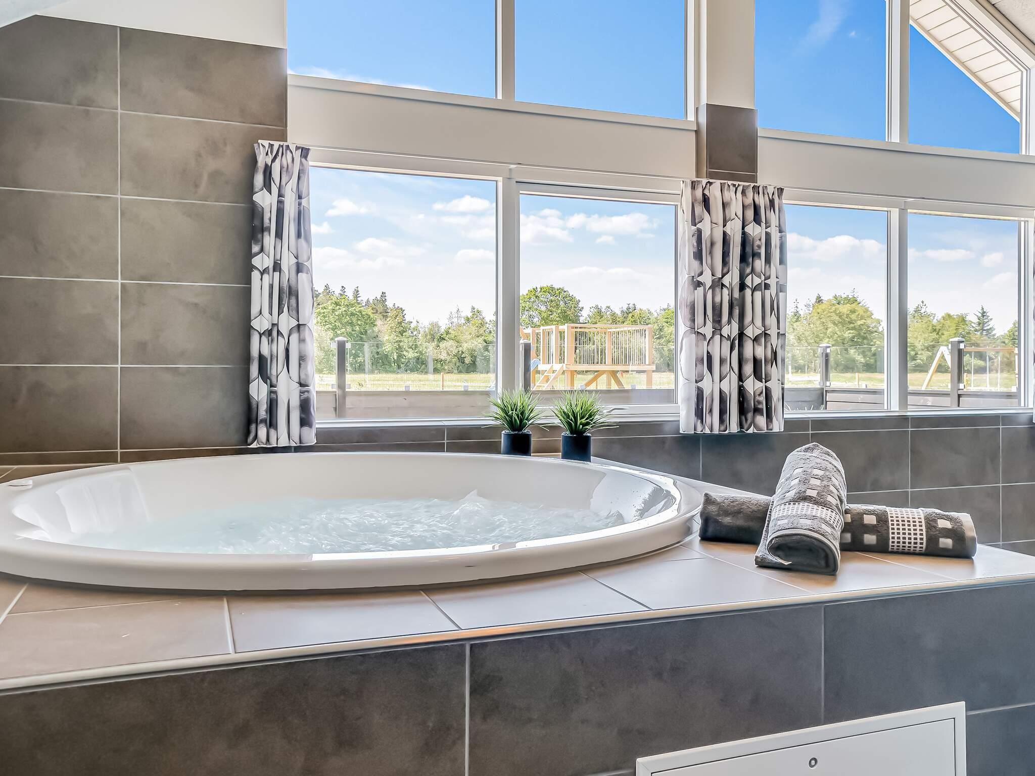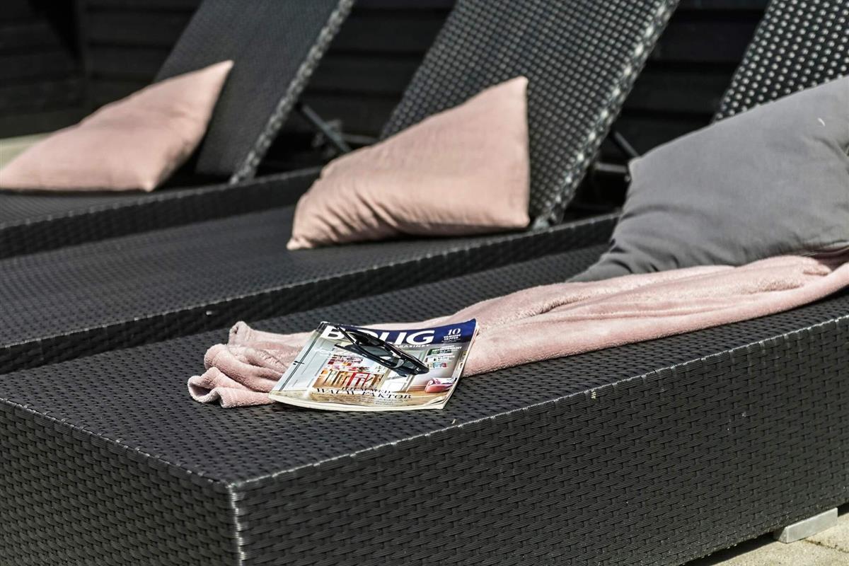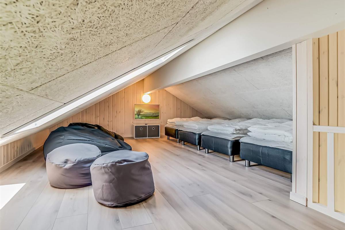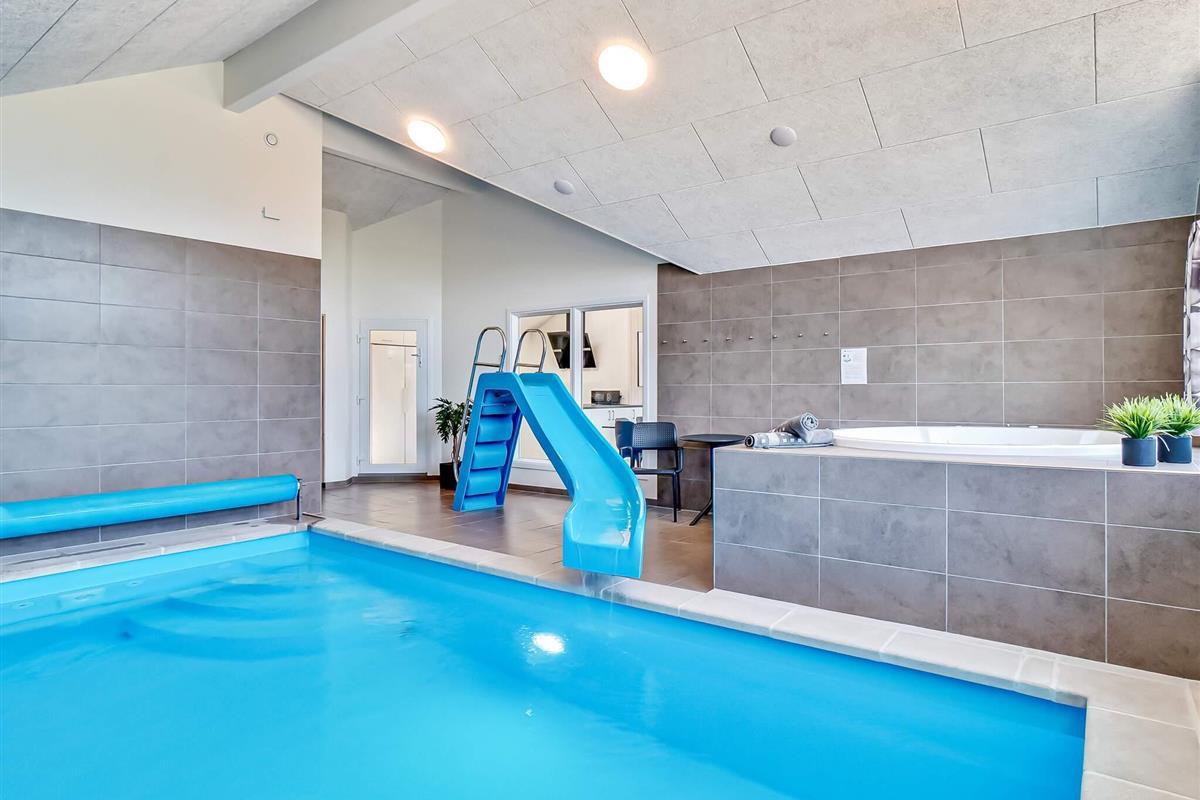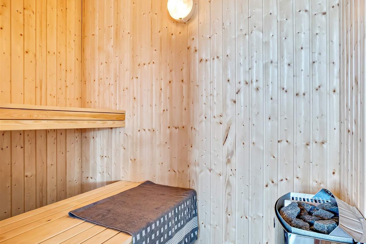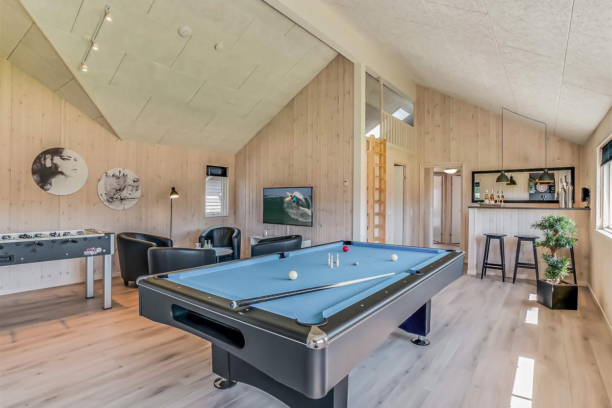 Sommerhuset har desuden sit eget skønne wellnessområde med opvarmet swimmingpool, vandrutsjebane og modstrømsanlæg. Efter en aktiv dag kan I forkæle jer selv i spabadet eller nyde varmen i saunaen.