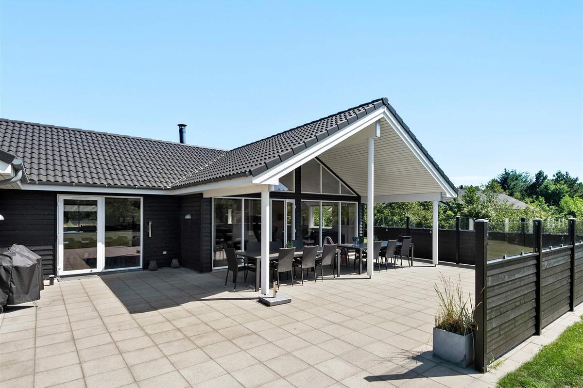 Udendørs venter en dejlig, lukket og delvist overdækket terrasse med havemøbler og grill – perfekt til lange sommeraftener. Haven indbyder til leg med både gynge, sandkasse og trampolin.