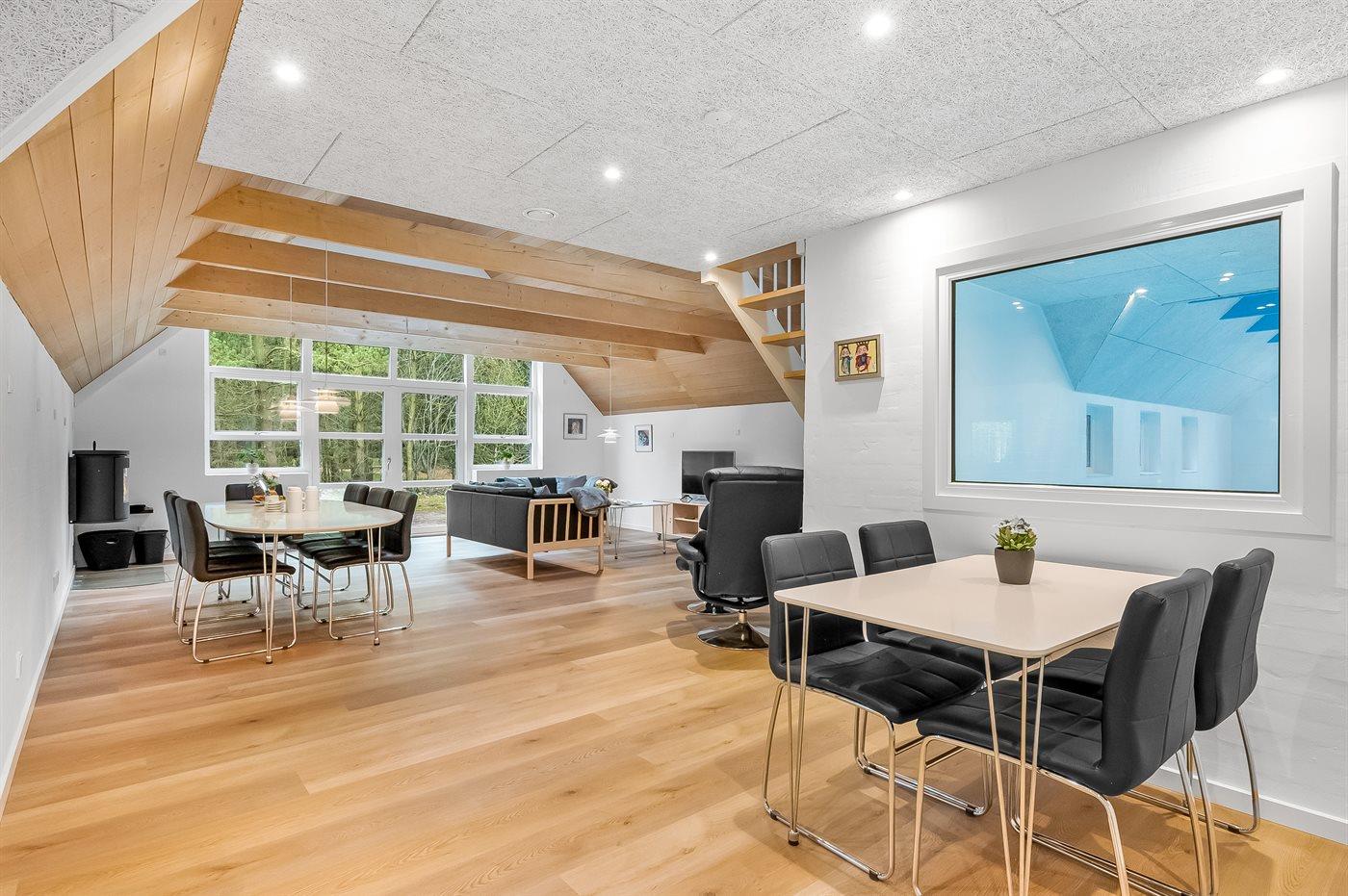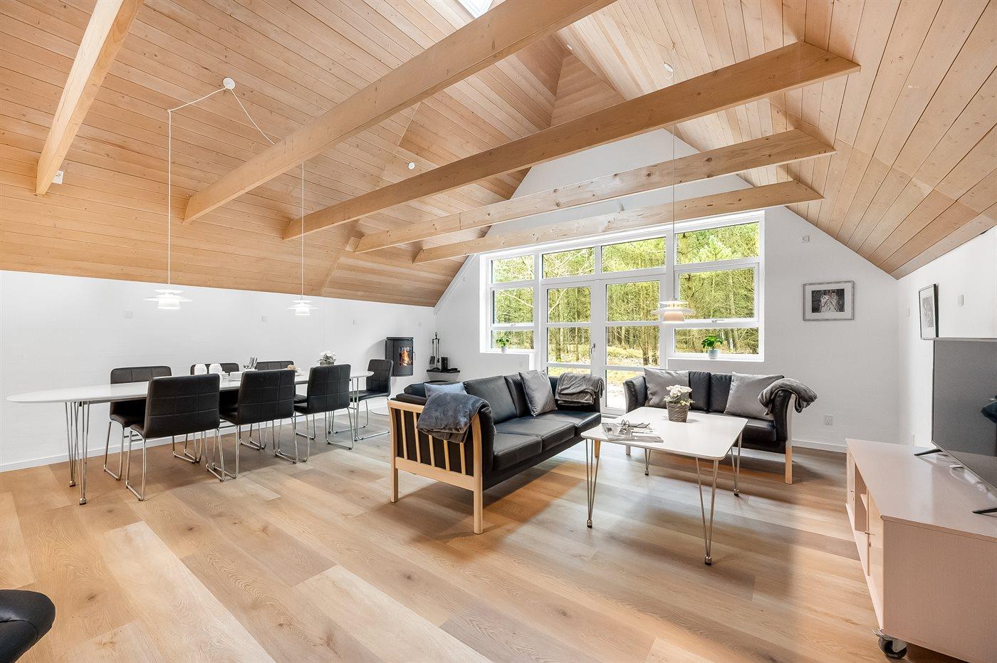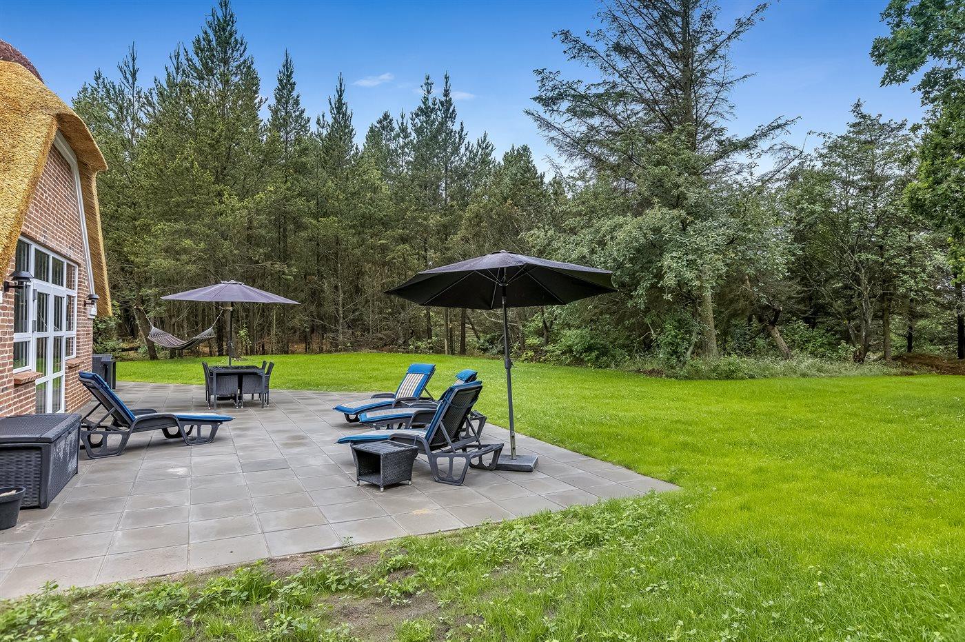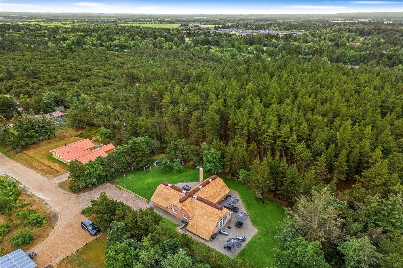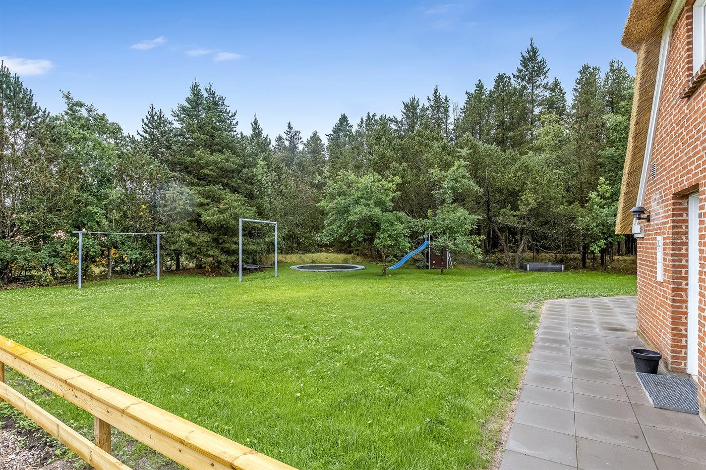 De vakantiewoning is gelegen op een 2286 m² groot natuural grond. Afstand tot de zee 2500 m. Afstand tot de fjord 6000 m. Dichtstbijzijnde winkel 1000 m. Bij de vakantiewoning hoort 220 m² terras. Schommel. Zandbak. Trampoline. Speeltoren. Glijbaan. Het huis heeft een stopcontact voor het opladen van een elektrische auto. Oplaadstekker type 2. Parkeerplaats bij het huis.