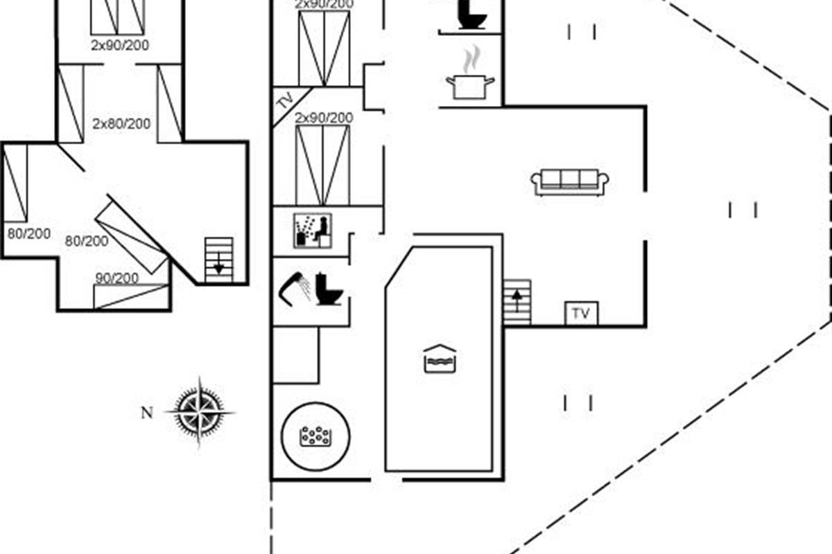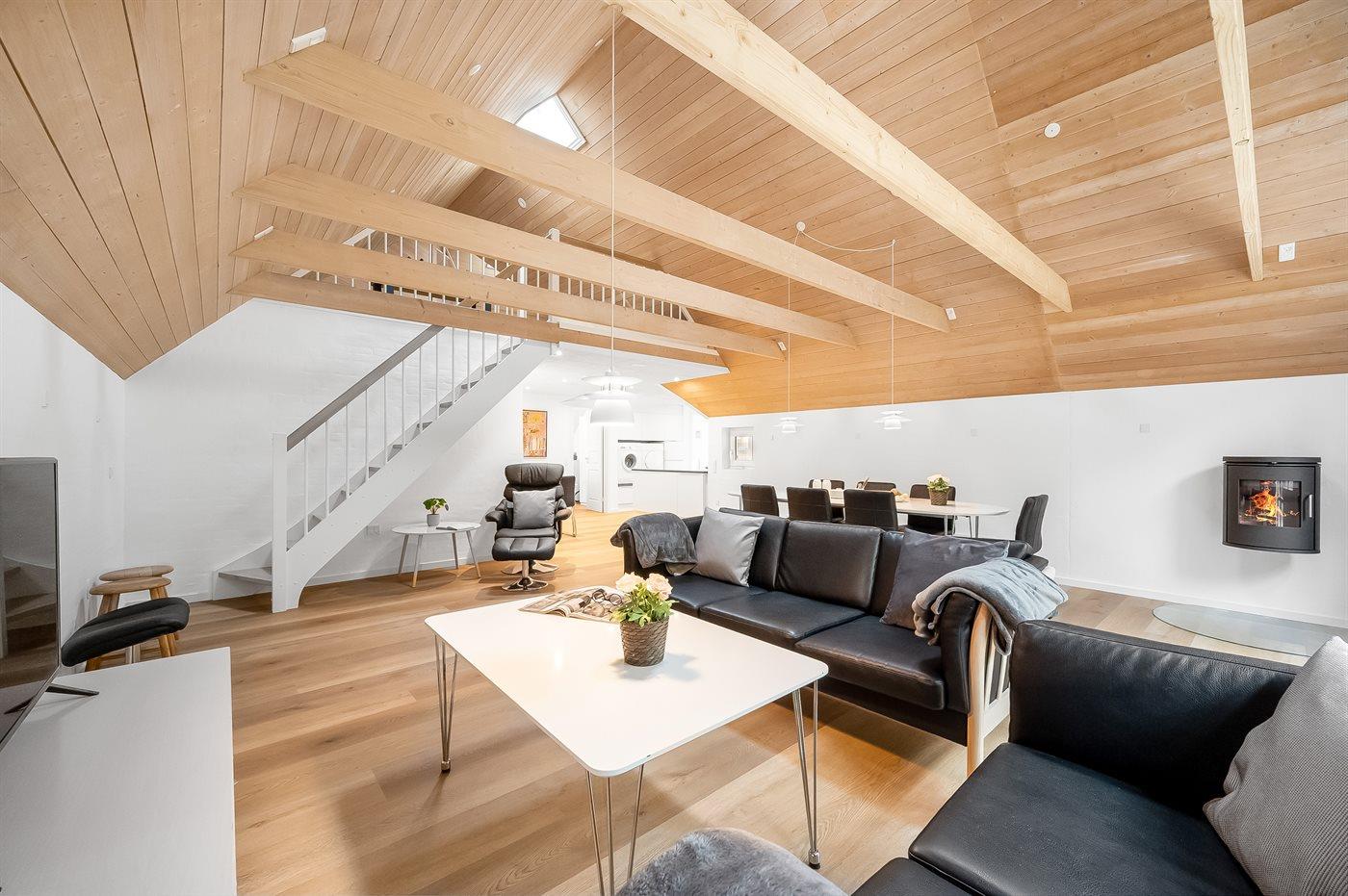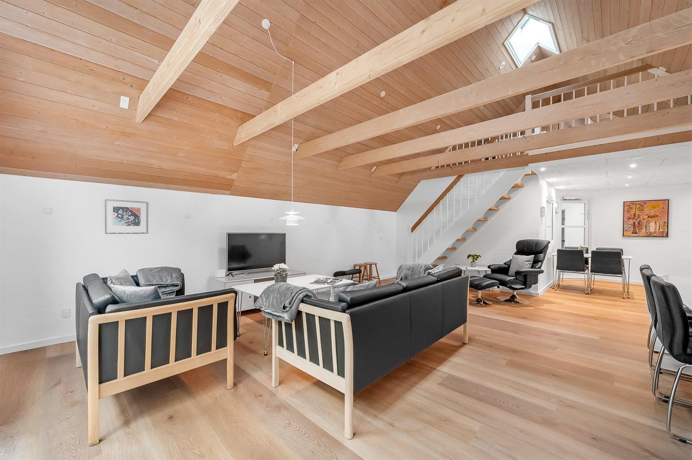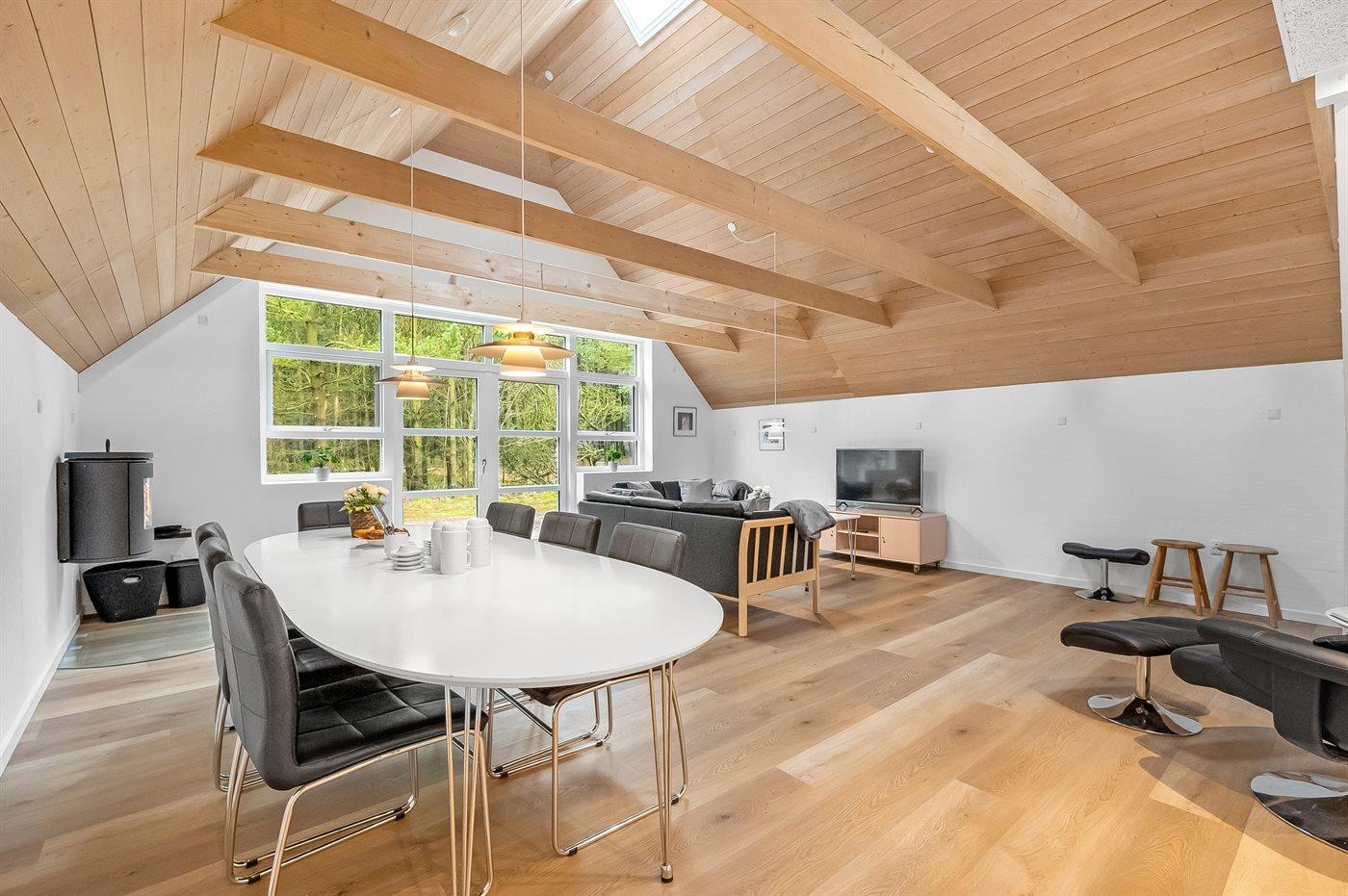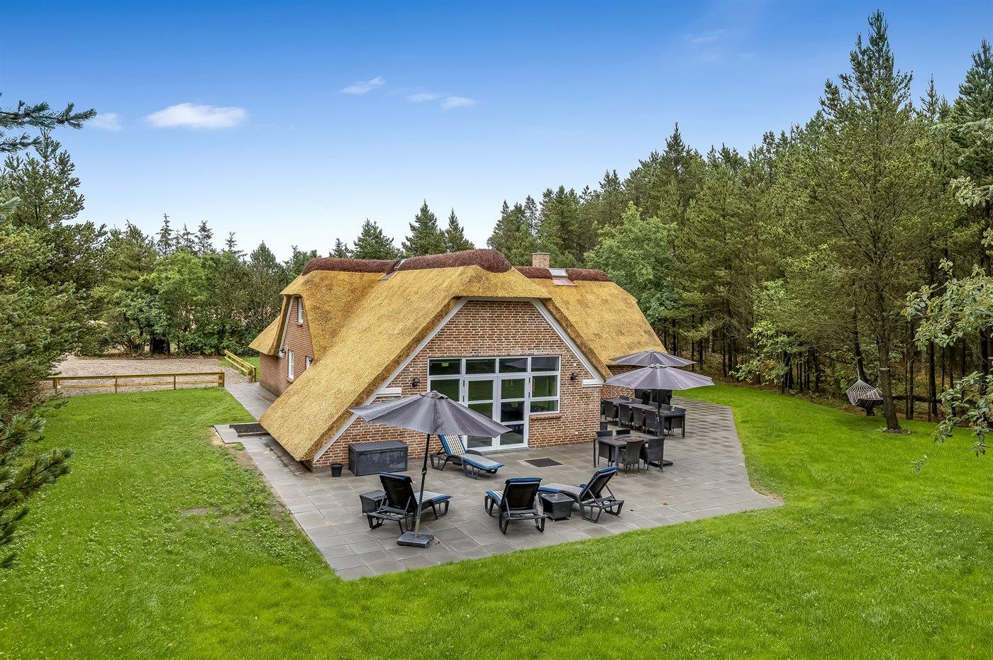De vakantiewoning is gelegen op een 2286 m² groot natuural grond. Afstand tot de zee 2500 m. Afstand tot de fjord 6000 m. Dichtstbijzijnde winkel 1000 m. Bij de vakantiewoning hoort 220 m² terras. Schommel. Zandbak. Trampoline. Speeltoren. Glijbaan. Het huis heeft een stopcontact voor het opladen van een elektrische auto. Oplaadstekker type 2. Parkeerplaats bij het huis.