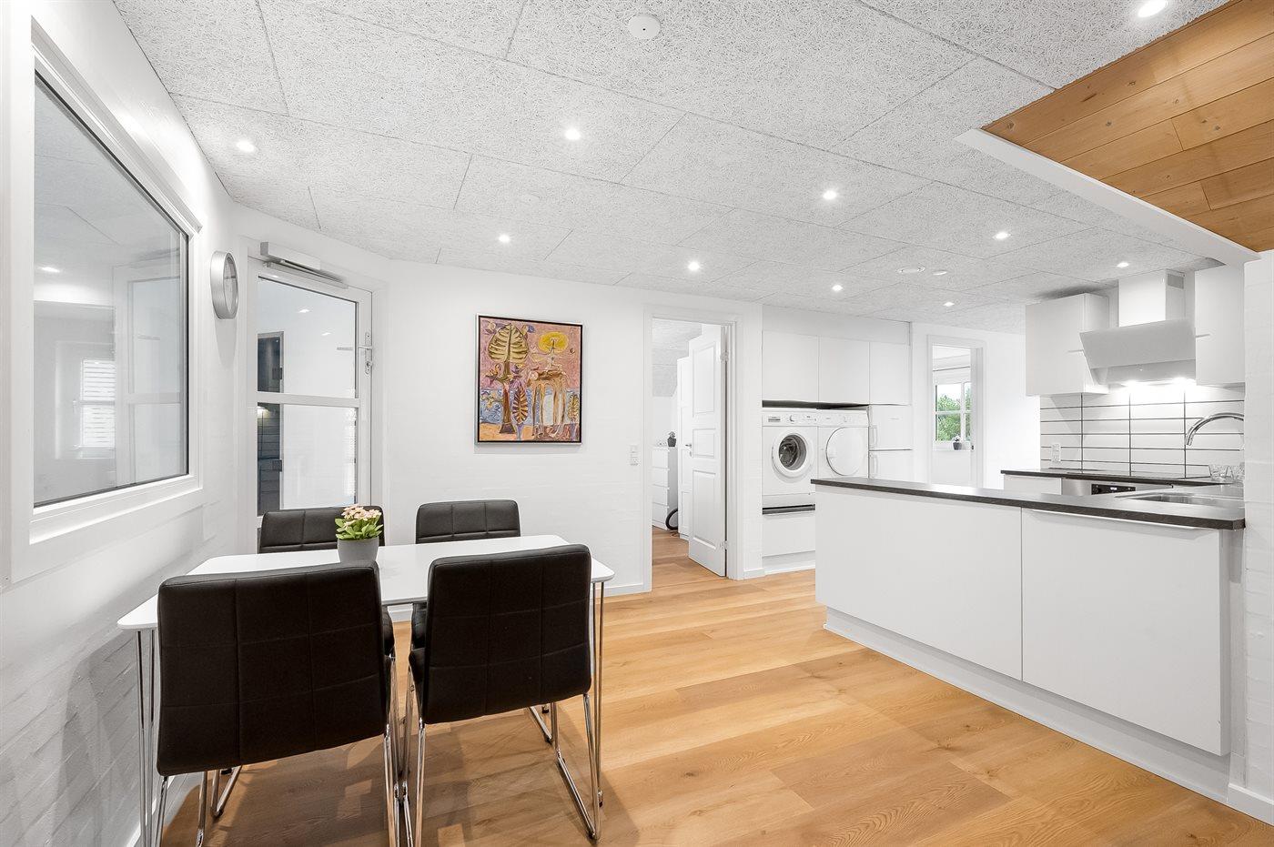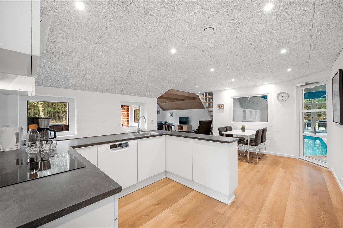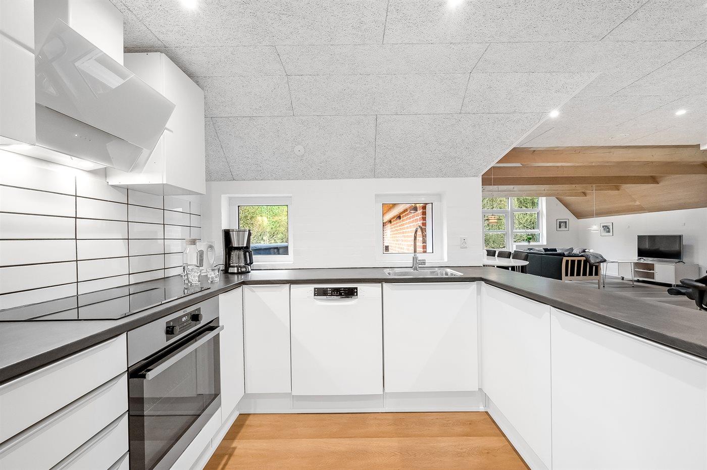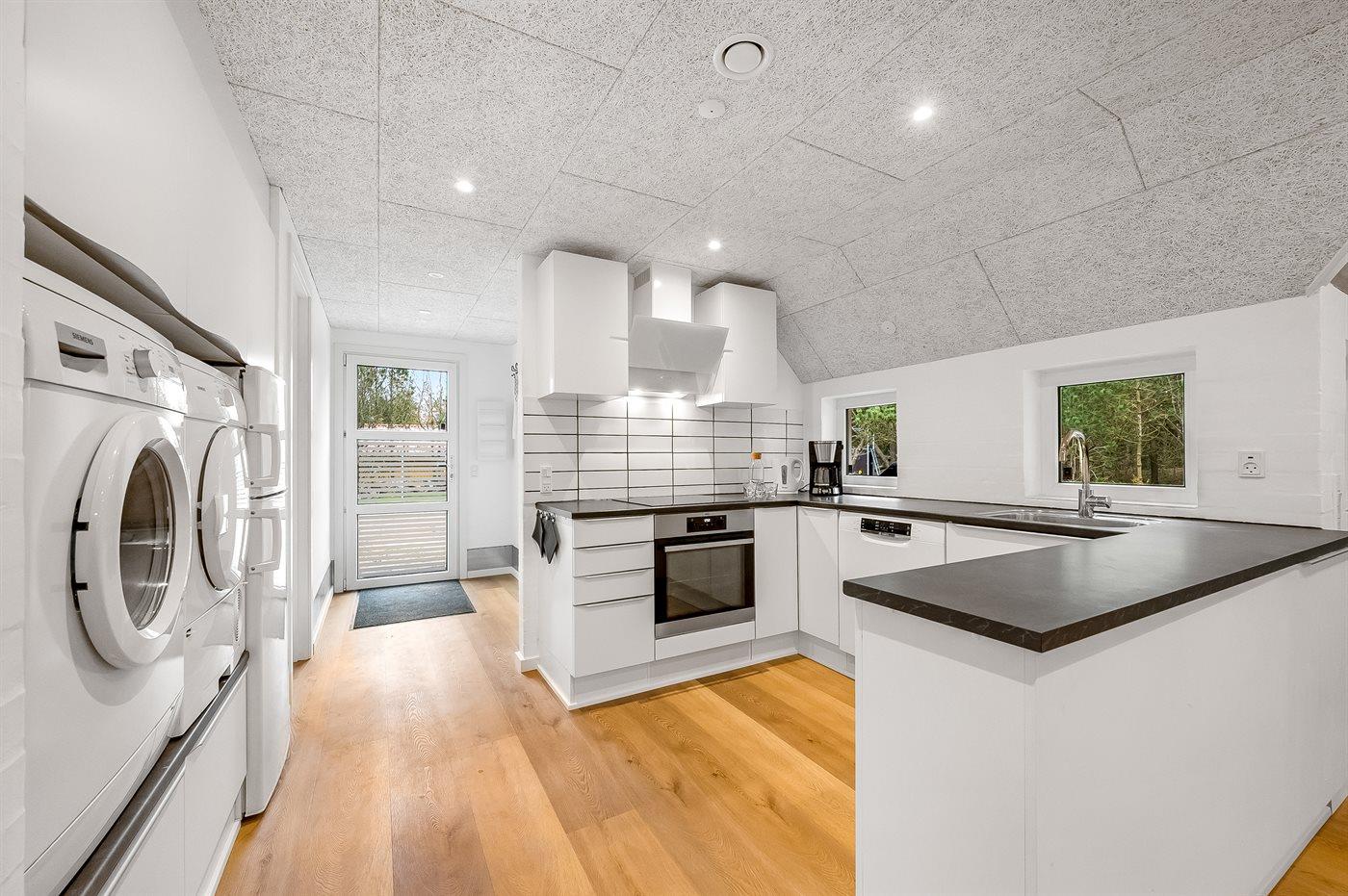 De keuken is uitgerust met koelkast Er is 4 inductiekookplaten, heteluchtoven, magnetron en vaatwasser.
