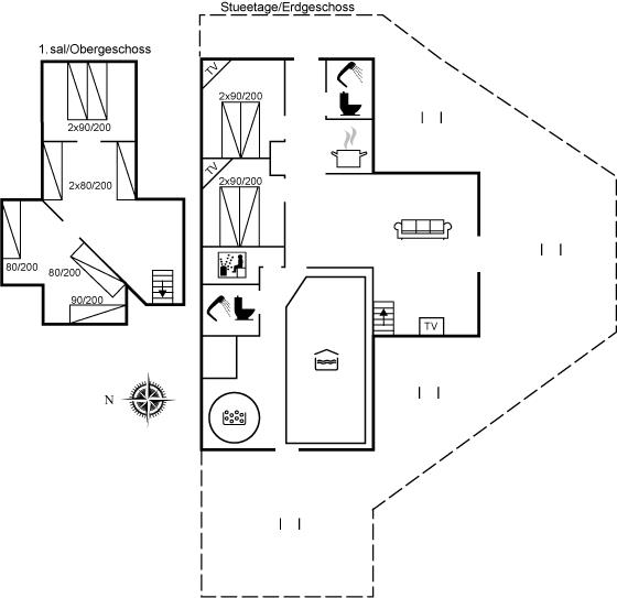 Er is 2 badkamers met douchehok en 2 toiletten. Er is vloerverwarming in 2 van de badkamers. De sauna biedt de gelegenheid tot ontspanning.