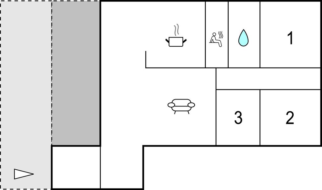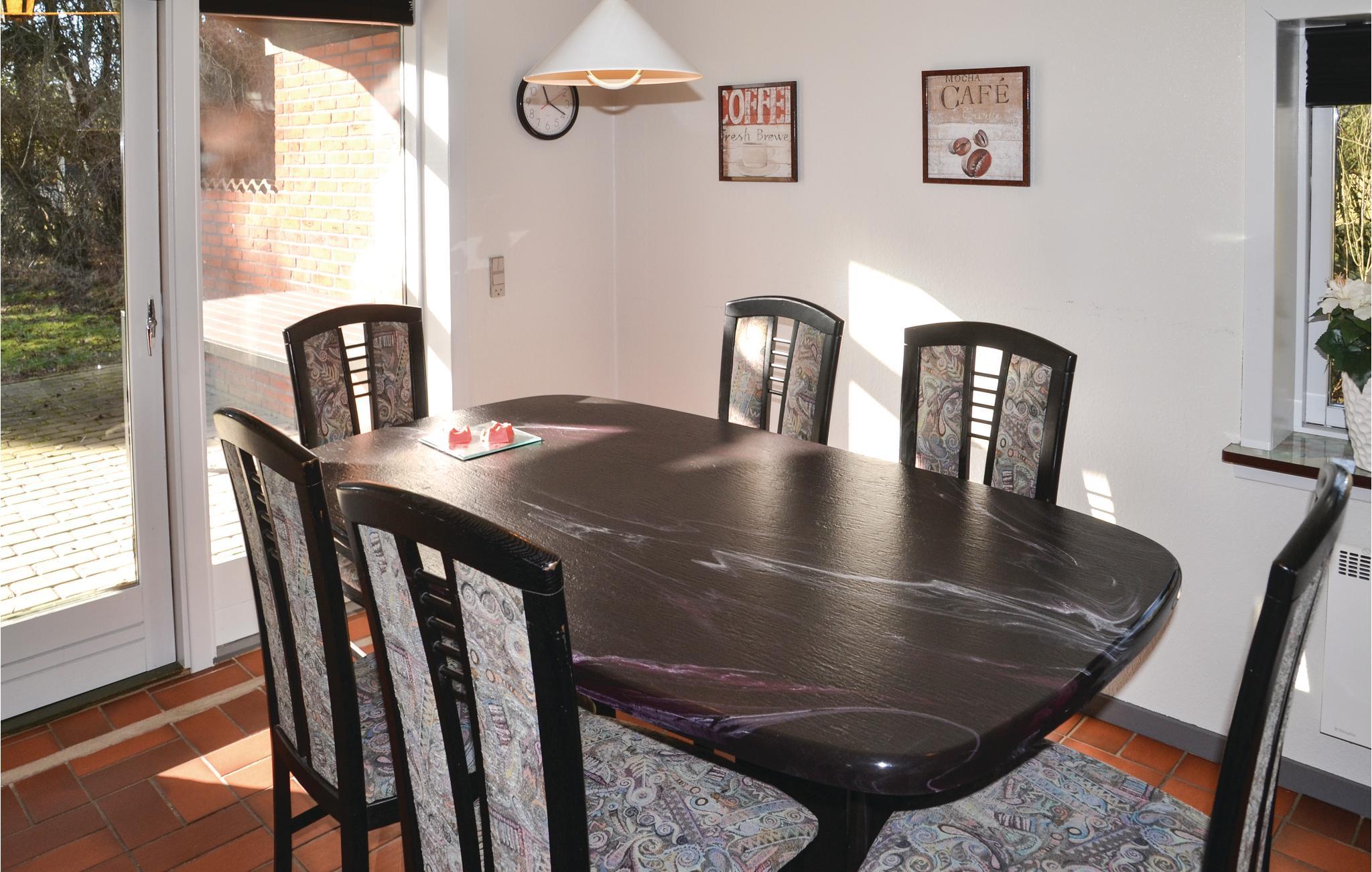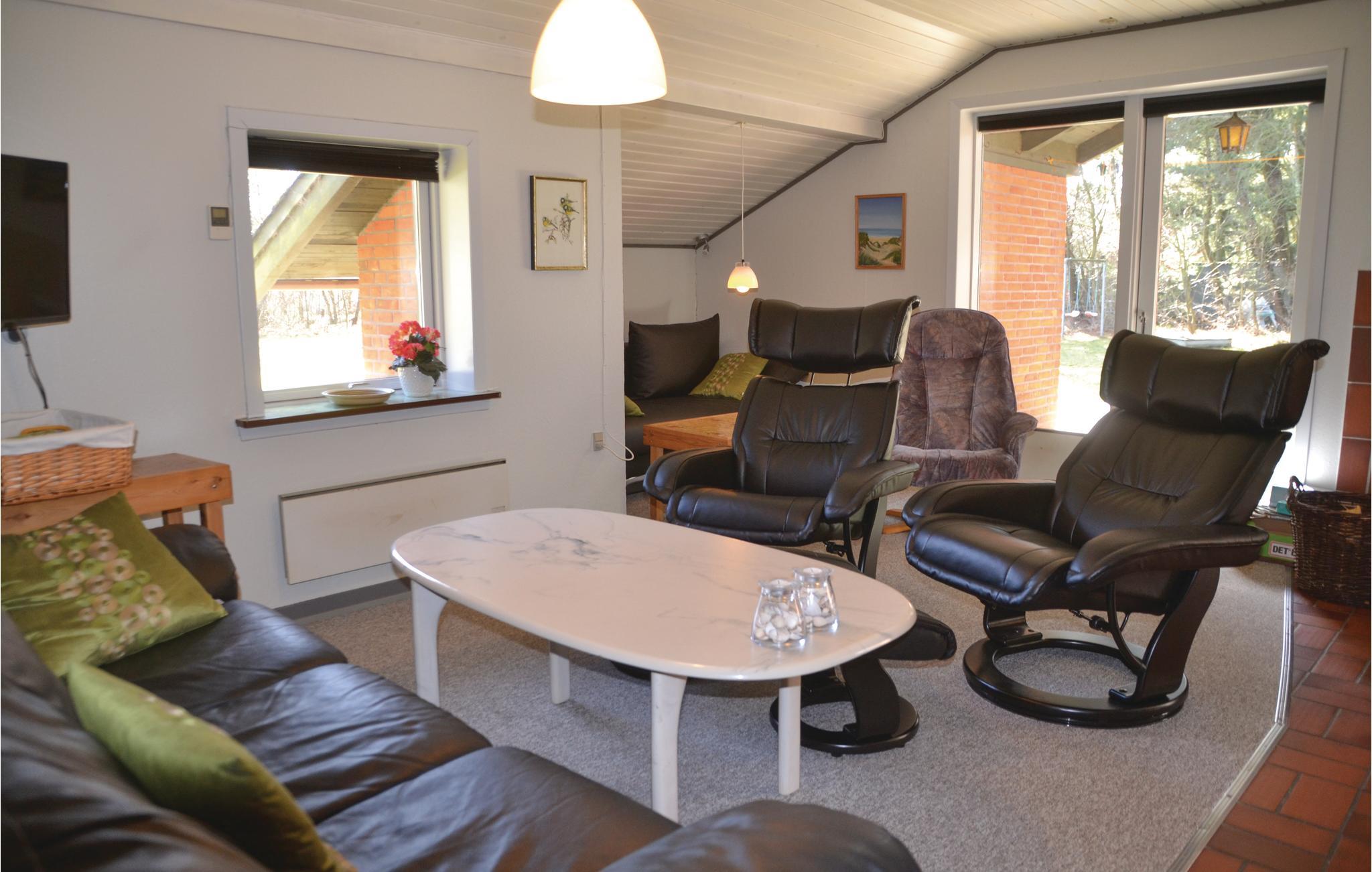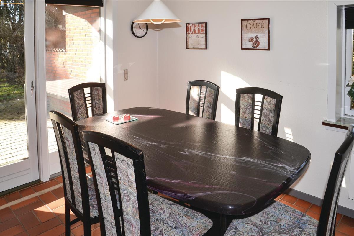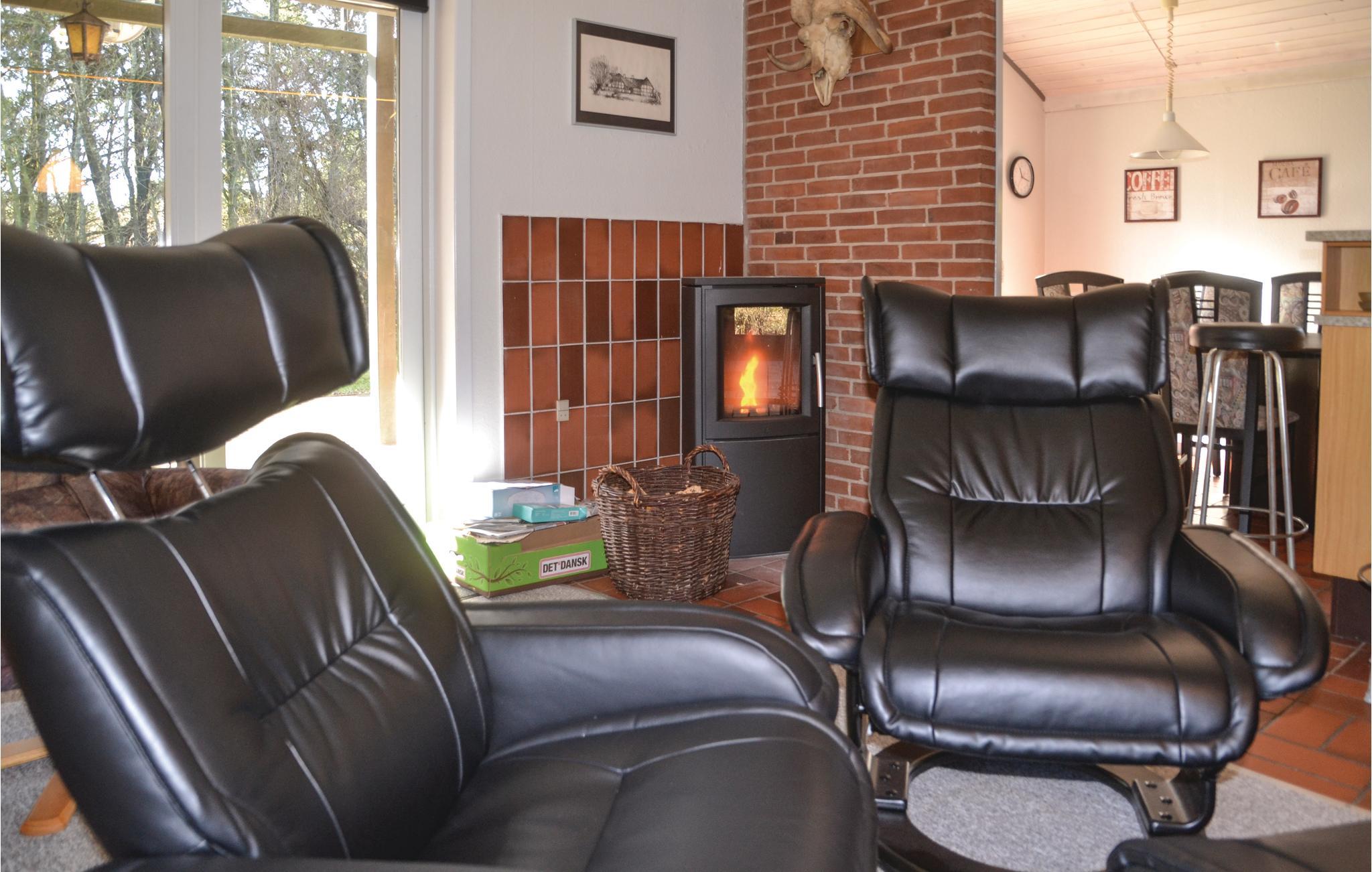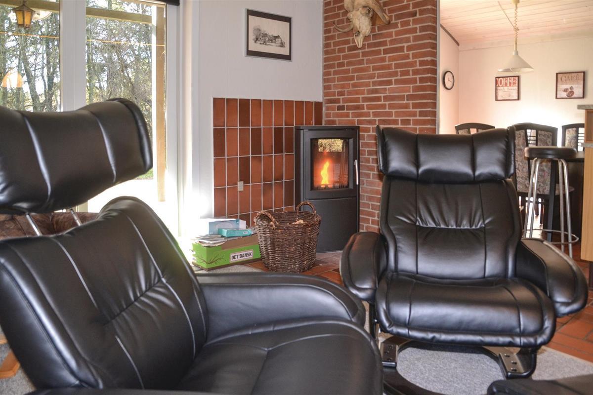 Het regelmatig onderhouden vakantiehuis ligt op een natuurgrondstuk in Houstrup. De gezellig ingerichte keuken/woonkamer met eethoek heeft een houtkachel.
