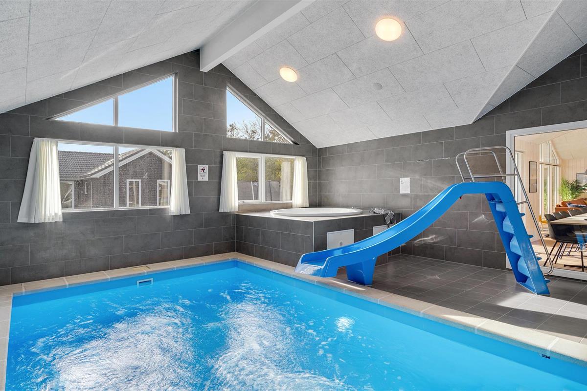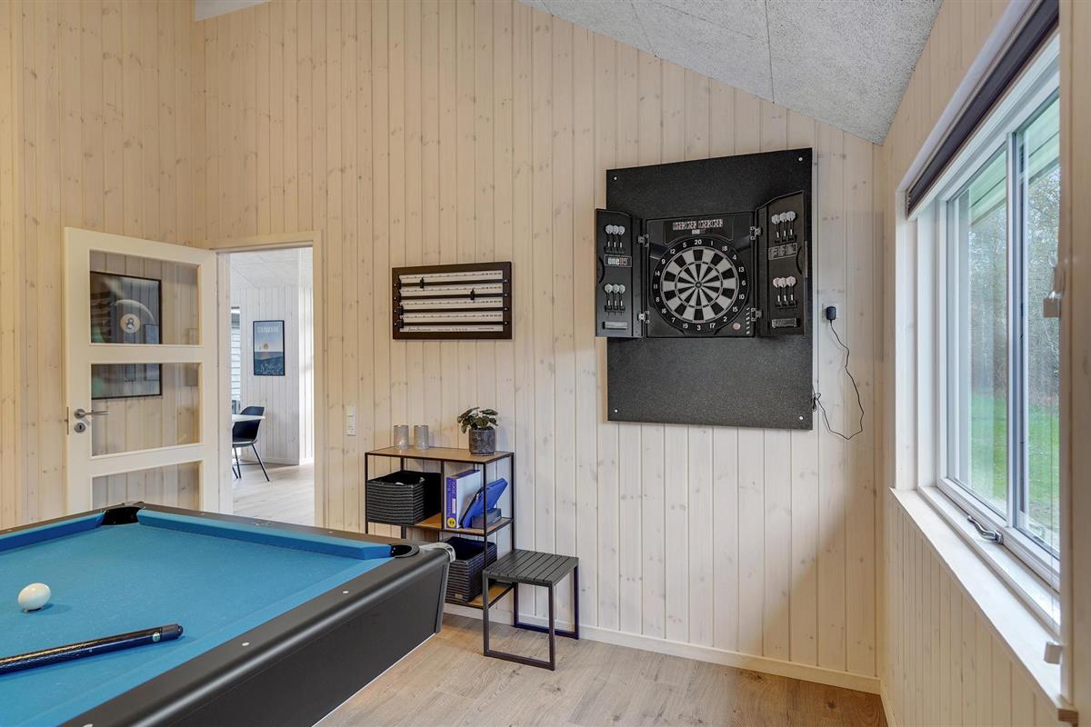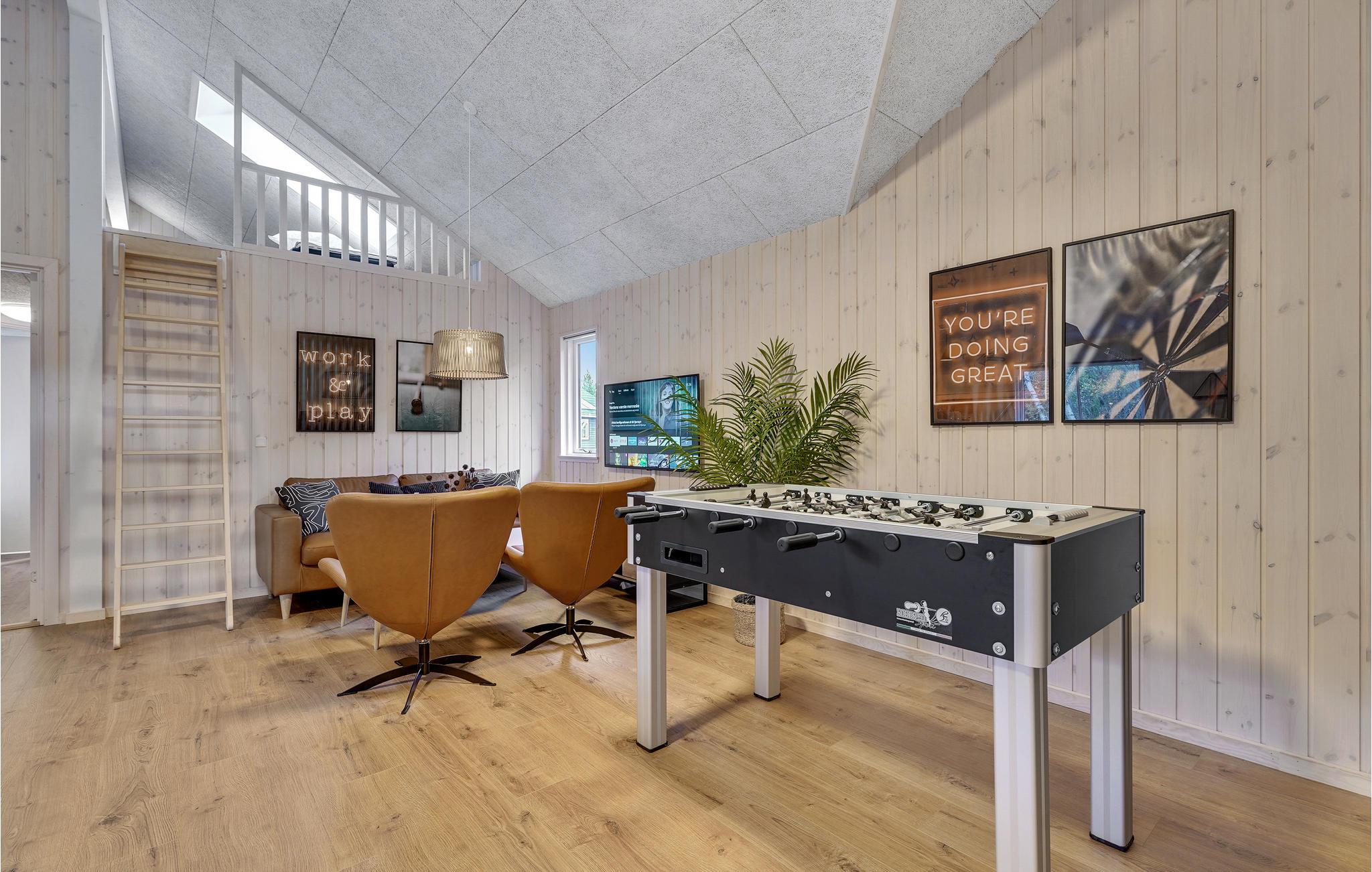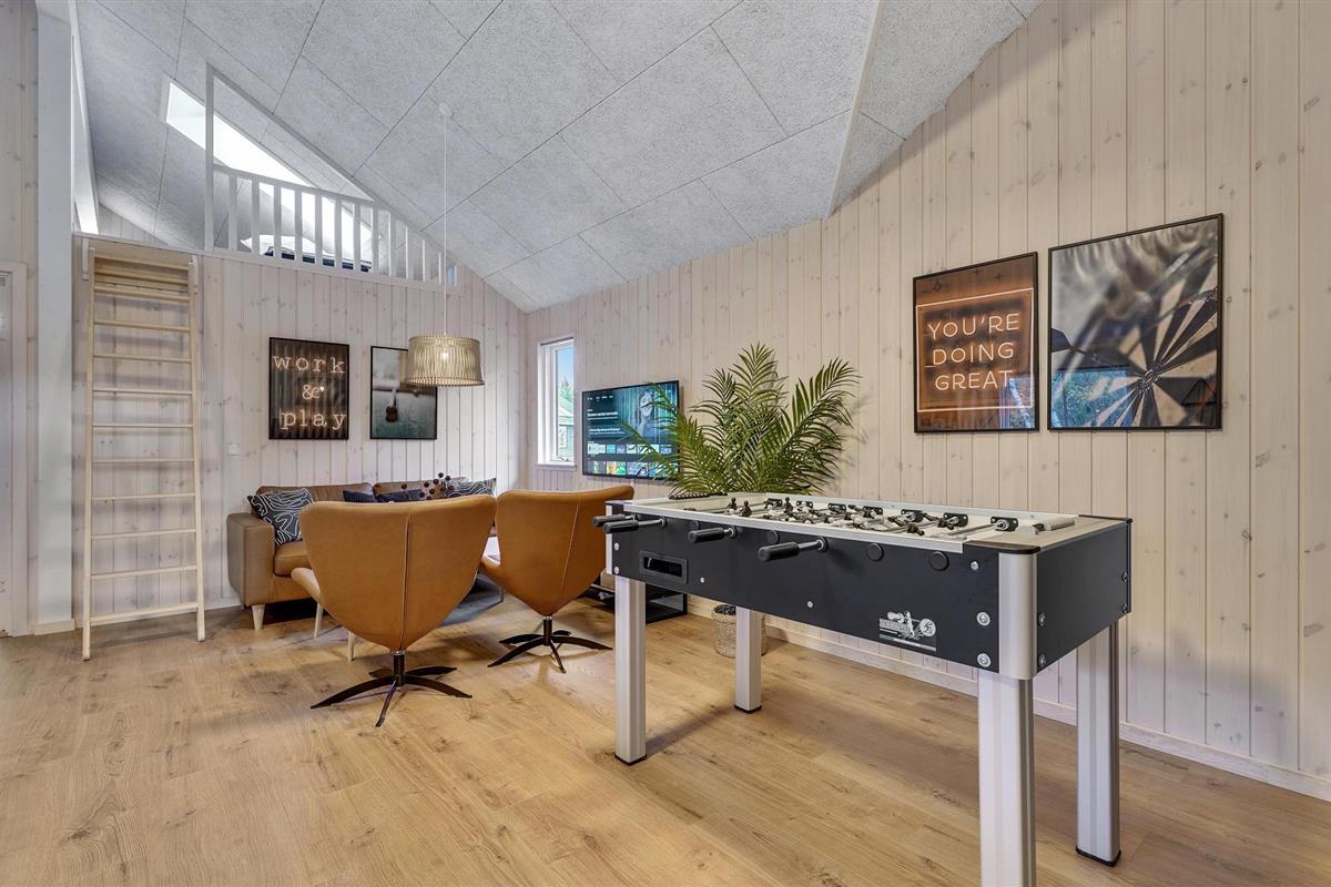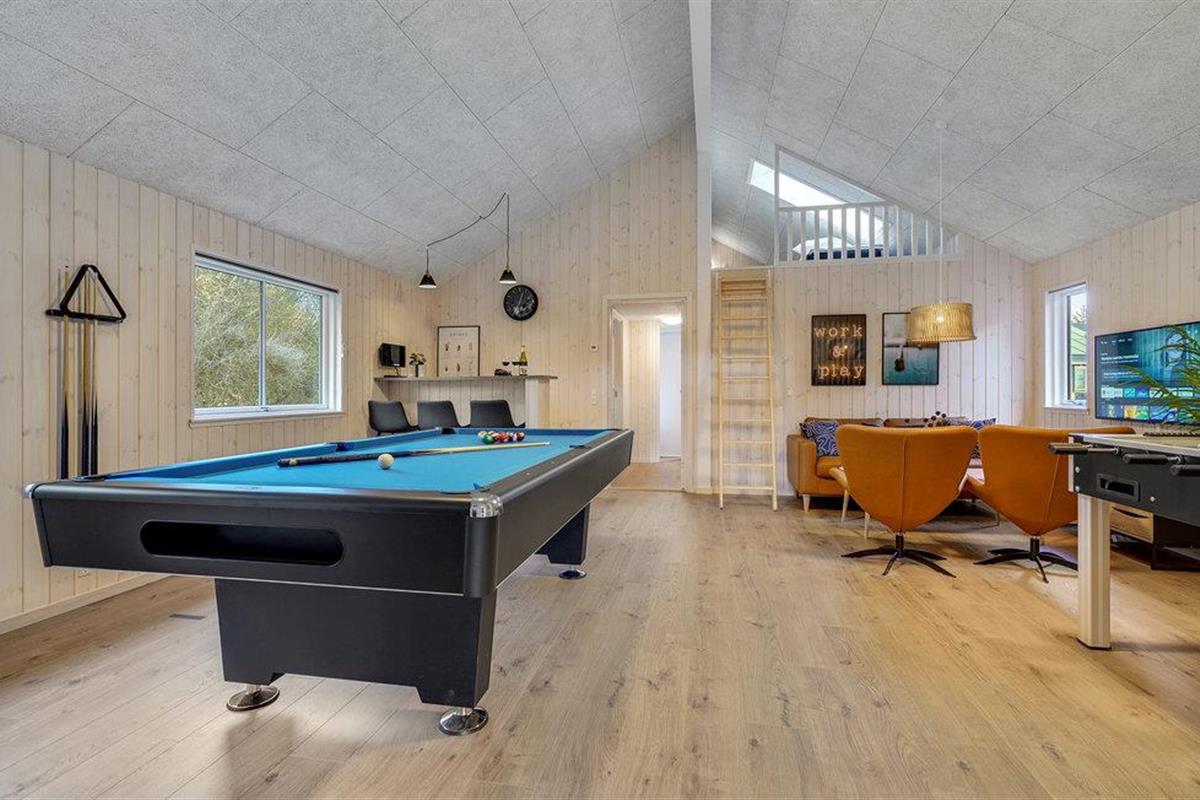 Gelegen ten zuiden van Ringkøbing Fjord, verwelkomt dit geweldige vakantiehuis u. De moderne en volledig uitgeruste kamers bieden ruimte en privacy voor meerdere gezinnen die samen de vakantie doorbrengen. Vermaak uzelf met een potje tafeltennis of tafelvoetbal en breng gezellige uurtjes zwemmend door in het overdekte zwembad.
