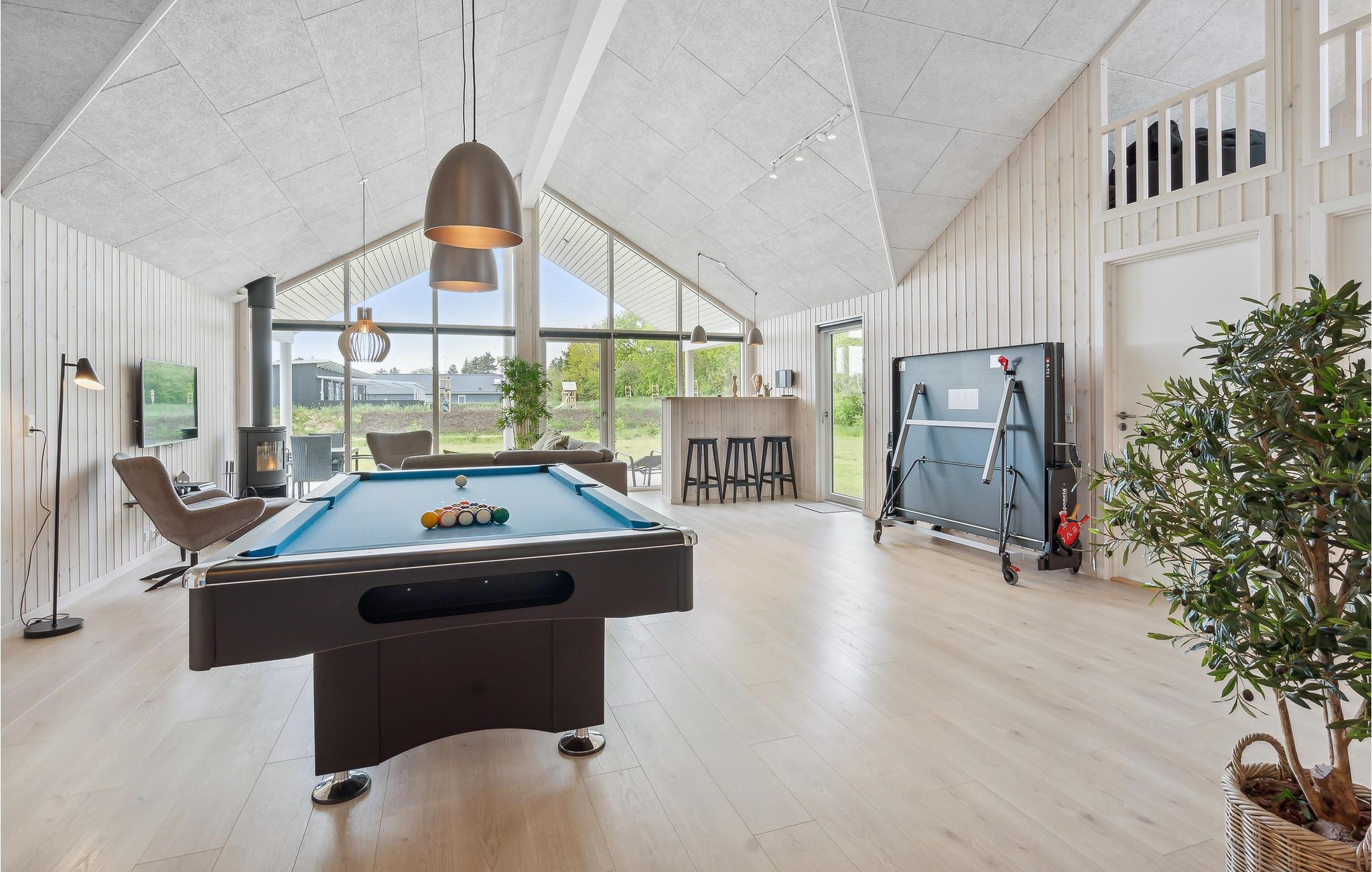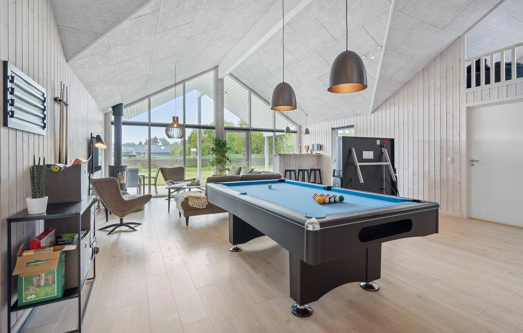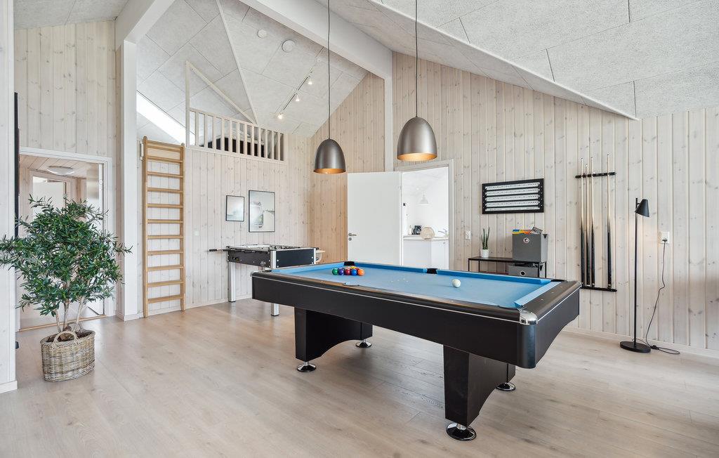 Welkom in dit mooie en royaal ingerichte vakantiehuis met uitstekende, gevarieerde mogelijkheden voor het hele gezin om zich samen te vermaken. Het vakantiehuis ligt in een populair vakantiegebied bij Houstrup Strand, niet ver van de badplaats Blåvand. Een aangenaam wandelpad brengt u naar de Noordzee, waar u bij mooi weer kunt zwemmen en op elk moment een lange, inspirerende wandeling in de frisse zeelucht kunt maken. Ook bij vies weer kunt u zwemmen, want een overdekt zwembad is een van de vele faciliteiten die het vakantiehuis te bieden heeft.