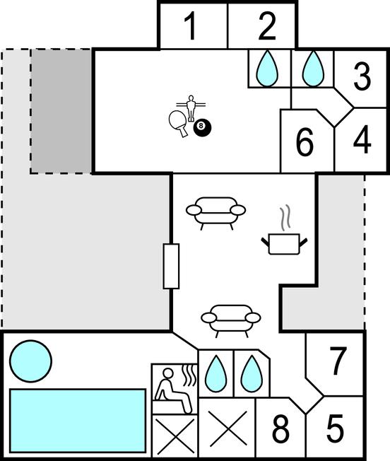 In de activiteitenruimte van het vakantiehuis vindt u verschillende faciliteiten. Hier kun je tafeltennissen, tafelvoetballen, biljarten of darten. De activiteitenruimte heeft ook een bar met een koelkast waar je de spelers van koude drankjes kunt voorzien. Na wilde duels is het makkelijk ontspannen in de zitgroep van de kamer, waar je via de tv een film kunt kijken of een spelletje kunt spelen op de PS4.