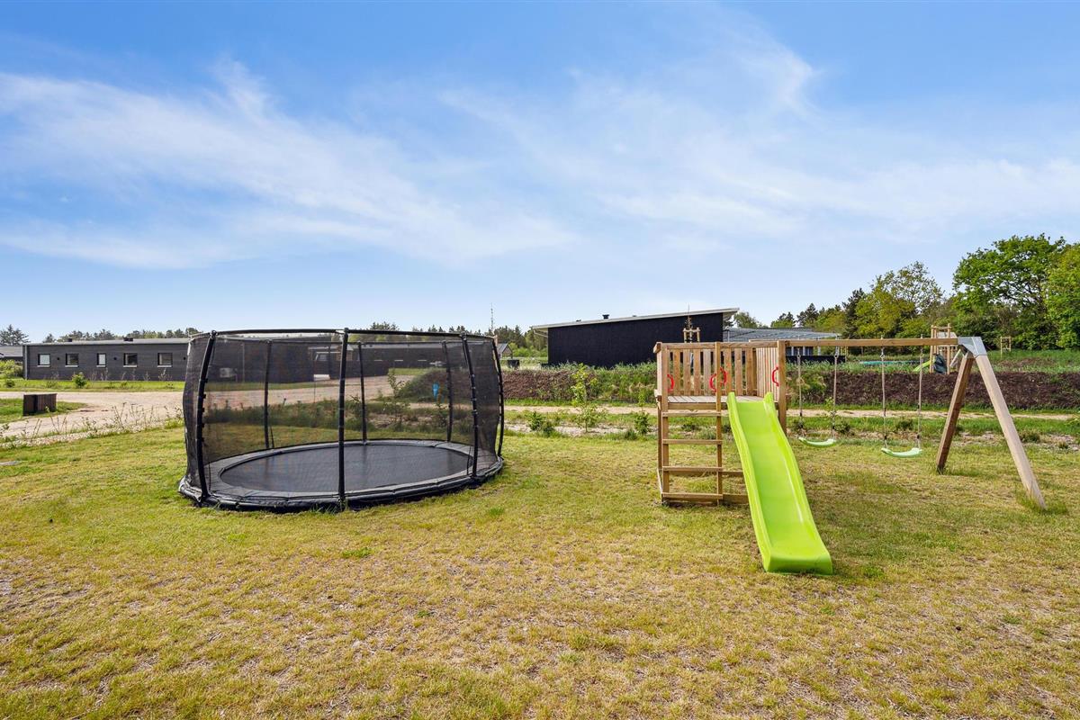 Ook buiten vindt u mogelijkheden voor plezier en spelletjes. Voor de jongste gasten is er een gelijkvloerse trampoline, een speeltoren met schommel en een zandbak. Maak het op het terras gezellig op het tuinmeubilair of gebruik de barbecue, en breng samen heerlijke lange zomeravonden door.