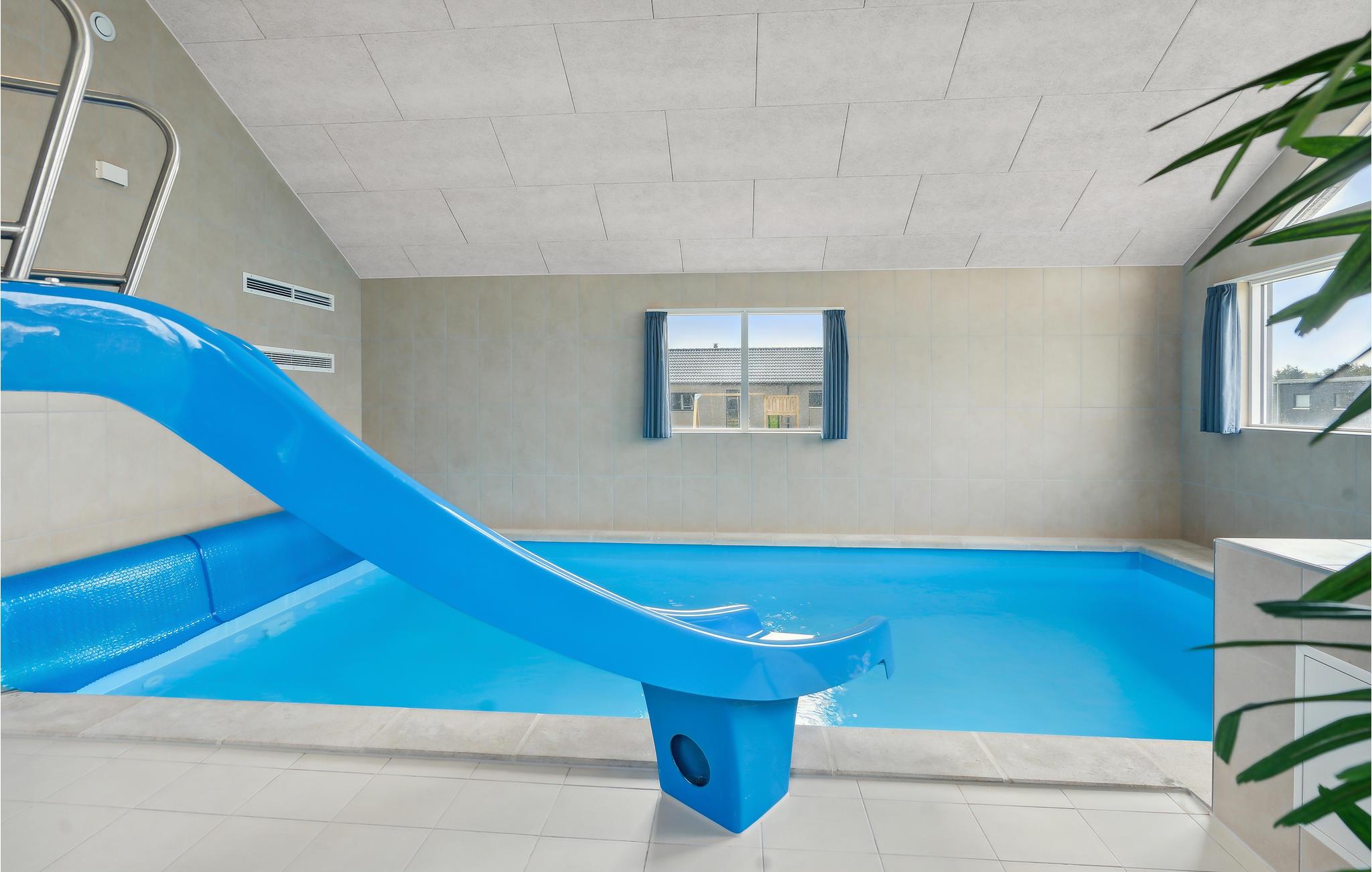 Het wellnessgedeelte bestaat uit het 20 m2 grote overdekte zwembad met trap en waterglijbaan, een ontspannende whirlpool en een sauna. Oud en jong vinden hier plezier en ontspanning.
