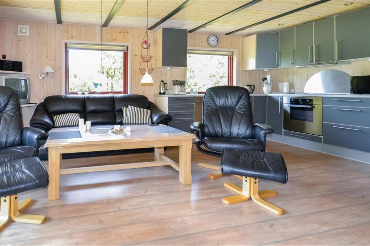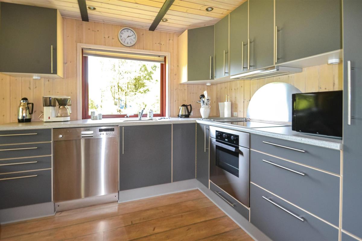 Op het grote, deels omheinde terras voor het huis kunt u barbecueën in de open lucht of in het overdekte gedeelte. Binnen is het huis ruim en ingericht met comfortabele meubels en een houtkachel voor extra warmte.
