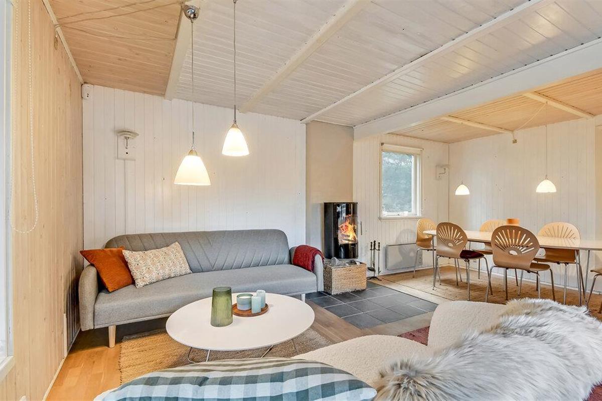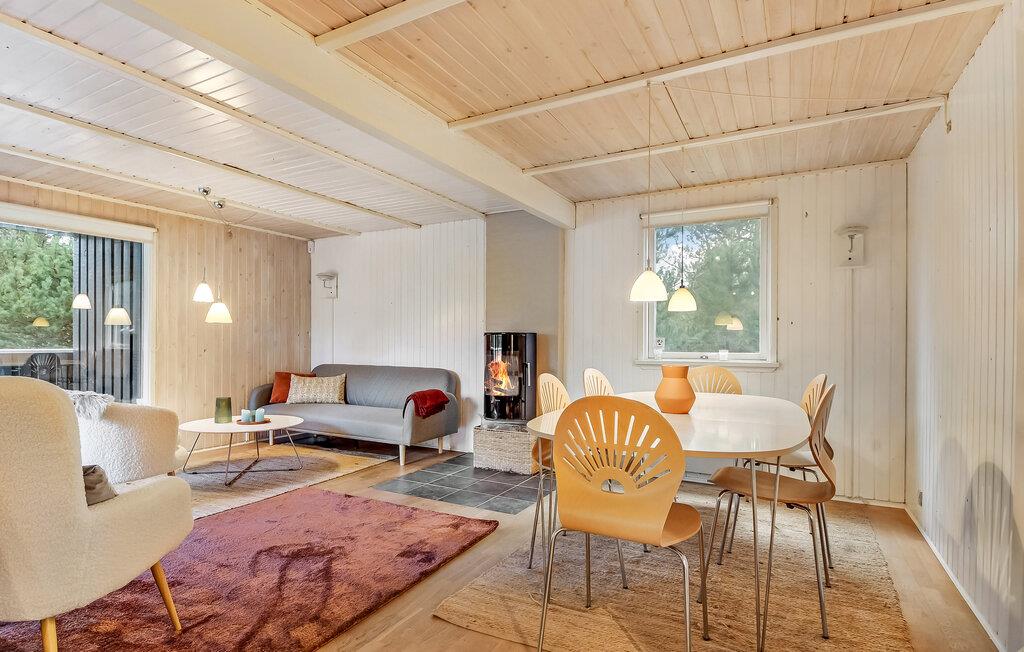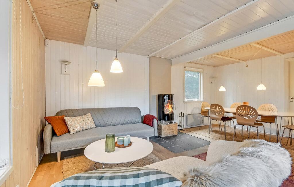 Welkom in je gezellige vakantiehuis in Houstrup, dat je een ideale vakantie te midden van een idyllisch natuurlandschap biedt. Je bent slechts een korte rit of fietstocht verwijderd van de indrukwekkende Noordzeekust van Denemarken. De gezellige woonkamer nodigt je uit om 's avonds te ontspannen na verfrissende excursies, met een spannend boek of een gezellig samenzijn bij de warme open haard. Er is genoeg ruimte om samen te koken in de praktische keuken.