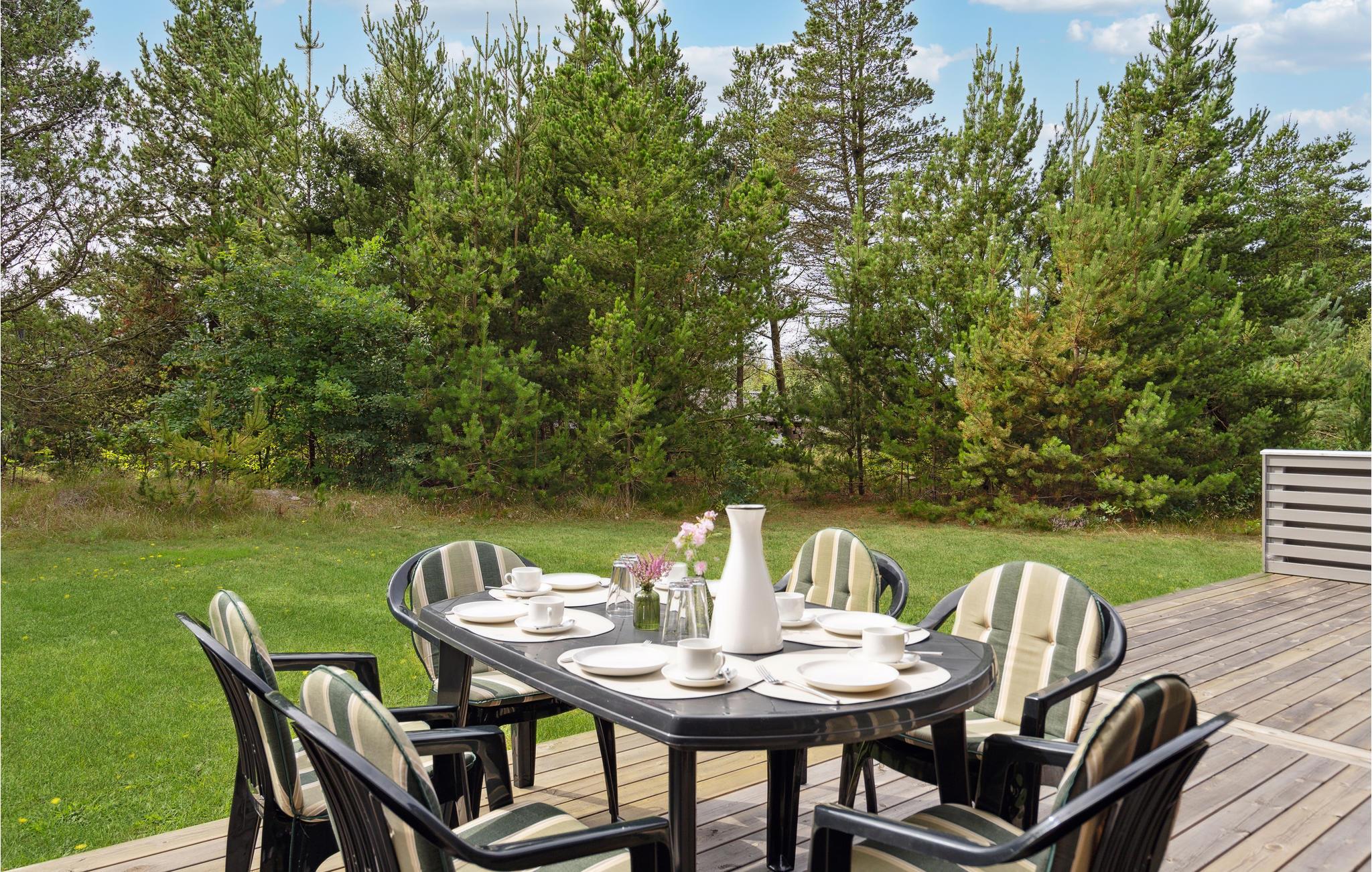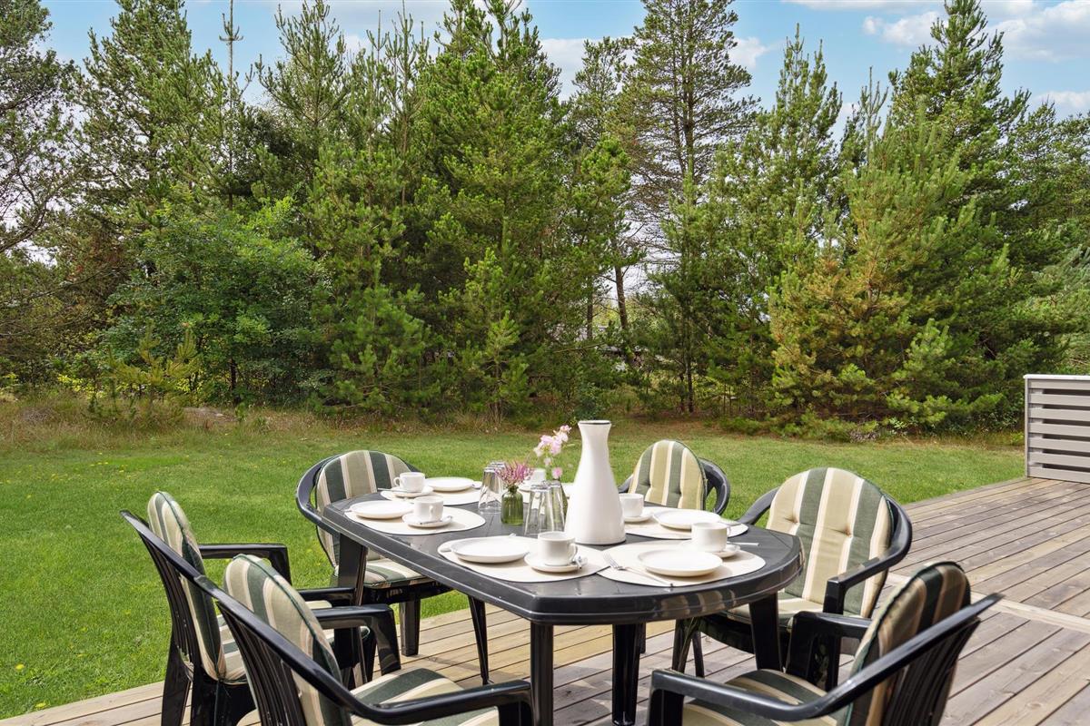 Het gezellig ingerichte vakantiehuis heeft een groot terras op het zuiden, dat omheind is. De woning is groot en beschut en biedt veel ruimte voor buitenspelen. Houstrup is een rustig vakantiegebied met bos en strand en ideaal voor een ontspannende vakantie. Een flinke wandeling brengt u naar het brede zandstrand met hoge duinen. Het ruisen van de Noordzee is altijd mooi om mee te maken. Niet ver weg ligt het bos Blåbjerg Plantage, genoemd naar de 64 m hoge hoogte (Det blå Bjerg), het hoogste binnenduin van Denemarken. De plantage herbergt heide, eiken, duinen en herten.