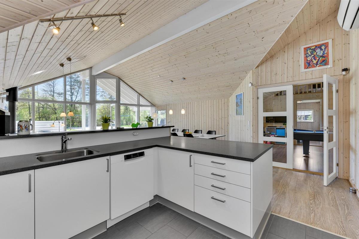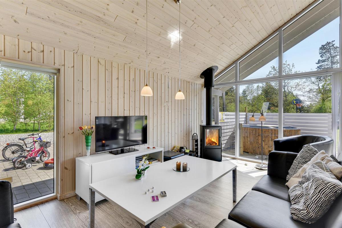 Het vakantiehuis ligt op een heel mooi natuurgebied in Houstrup. Een korte wandeling brengt je naar het SeaWest zwembad. Er zijn veel mooie natuurpaden in de omgeving. Er is een trolley geïnstalleerd op de oude spoorlijn, dus vergeet je picknickmand niet tijdens een uitstapje.