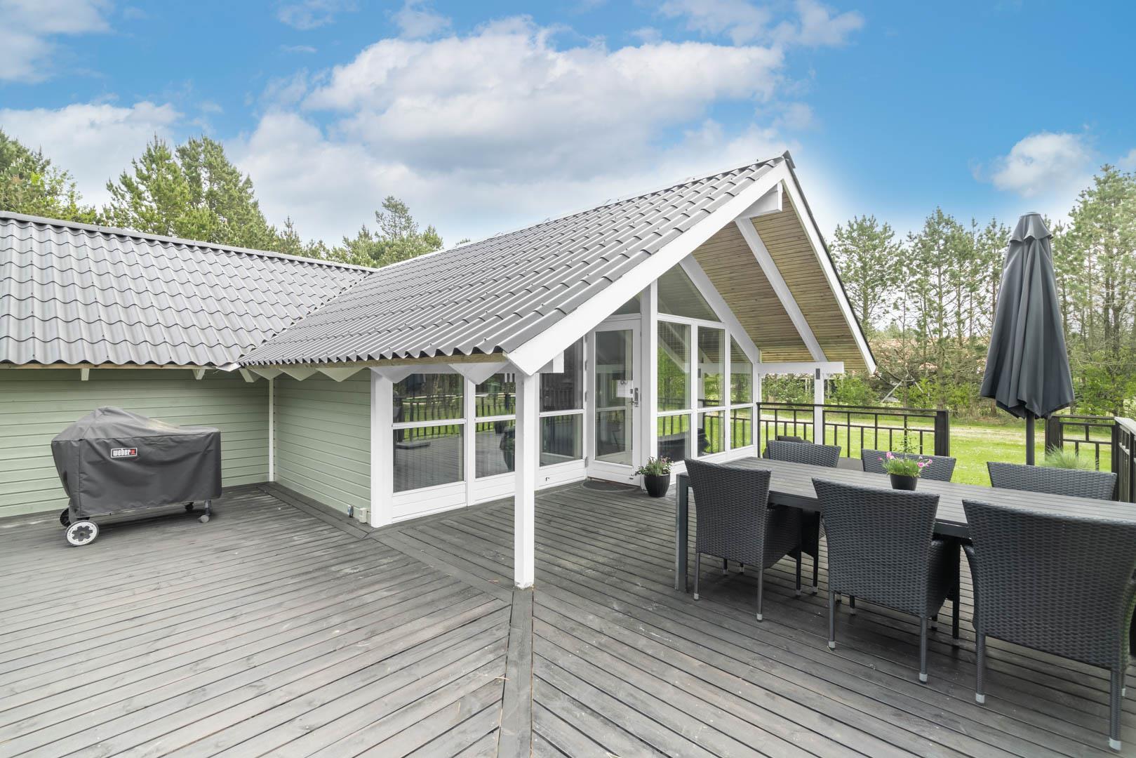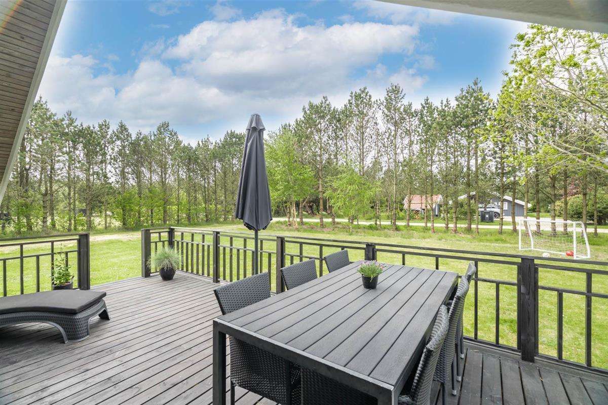 Das Grundstück ist gut bepflanzt und abgeschirmt, mit großer Terrasse, so dass Sie die meiste Zeit draußen bleiben oder sich unter der Überdachung aufhalten können. Ein Fußballtor für diejenigen, die gerne kicken. Nehmen Sie Hund und Fahrrad mit und genießen Sie lange Touren auf den vielen Wegen in der Blåbjerg Plantage und Umgebung. Die Terrasse ist vor Vermietung erneuert.