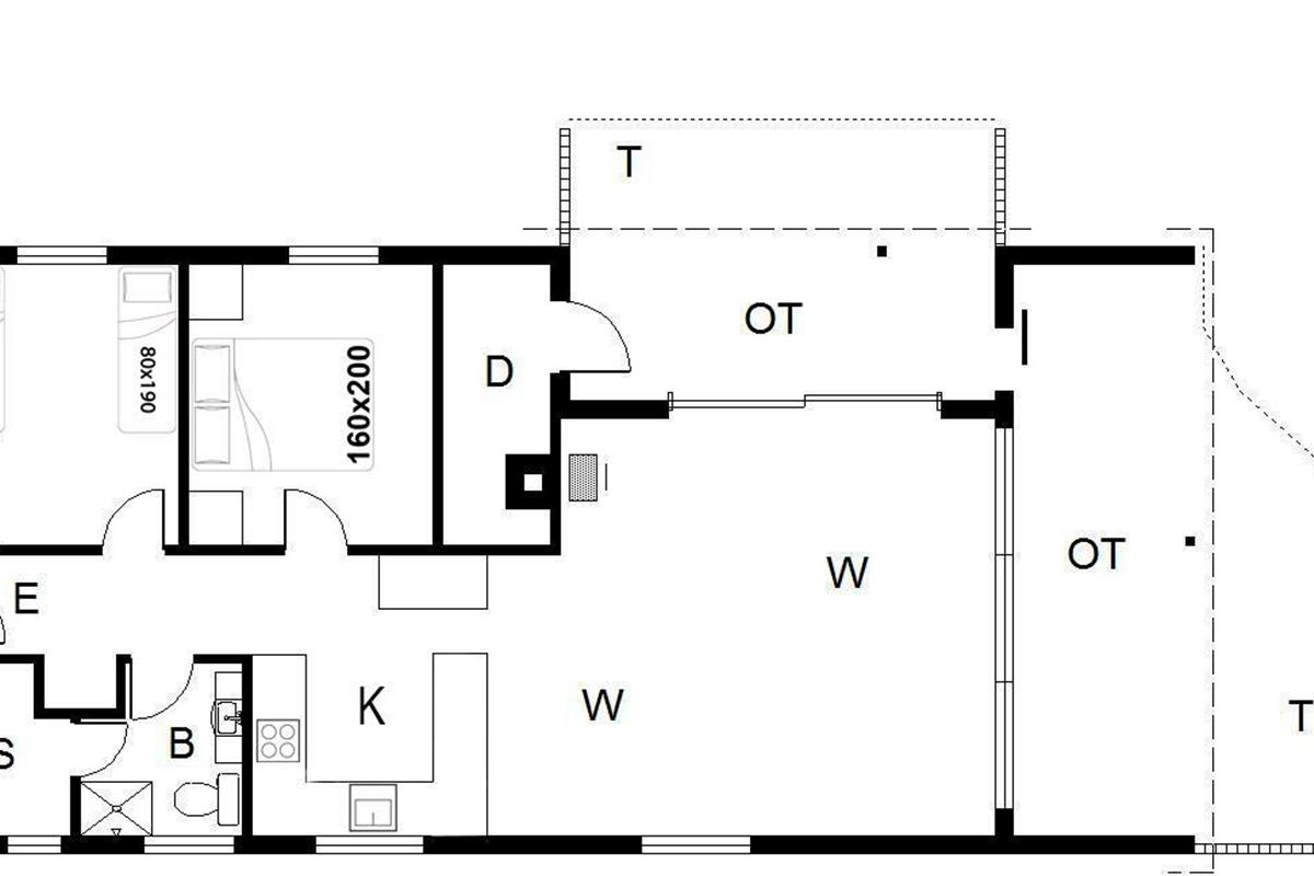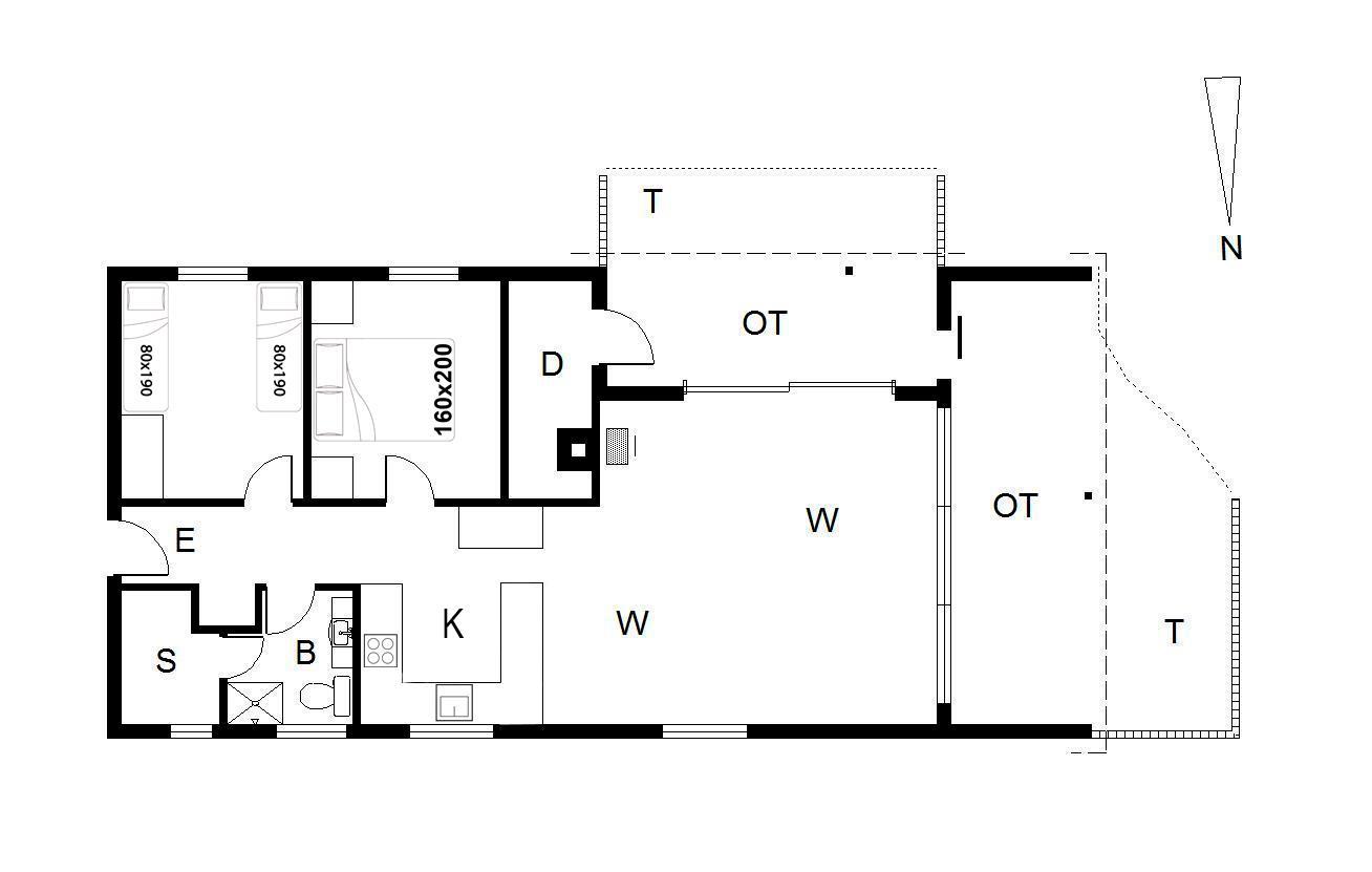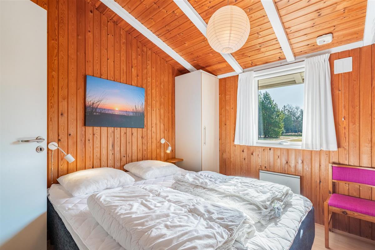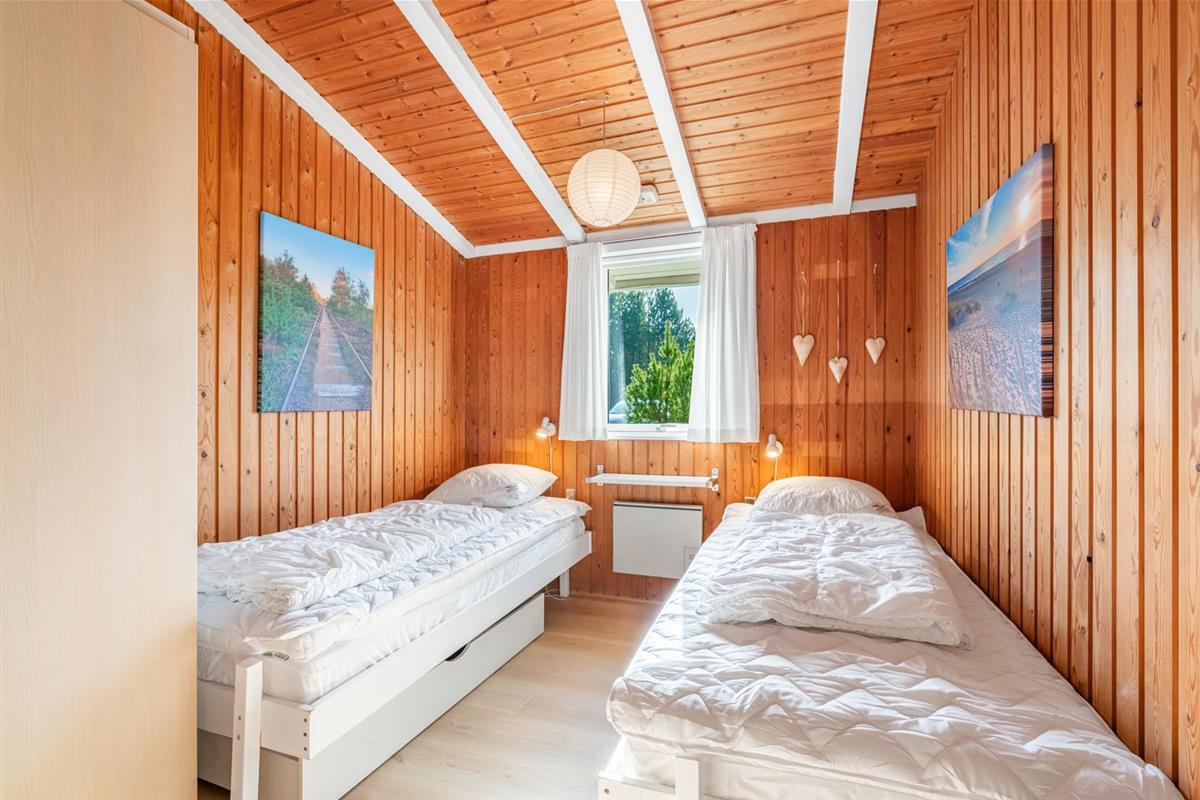 Das Haus bietet Schlafplätze für vier Personen, verteilt auf ein Schlafzimmer mit Doppelbett (160 x 200 cm) und ein Schlafzimmer mit zwei Einzelbetten (80 x 190 cm) – ideal für Kinder und Erwachsene.