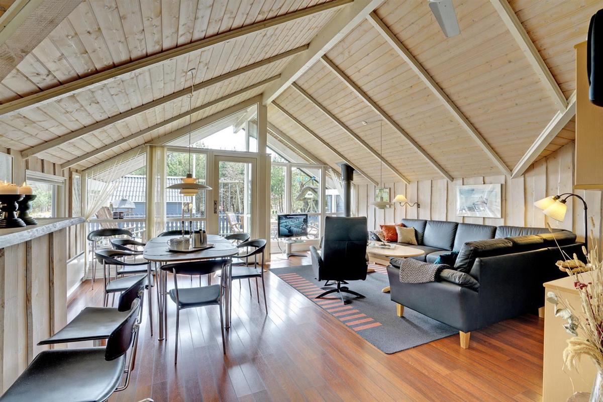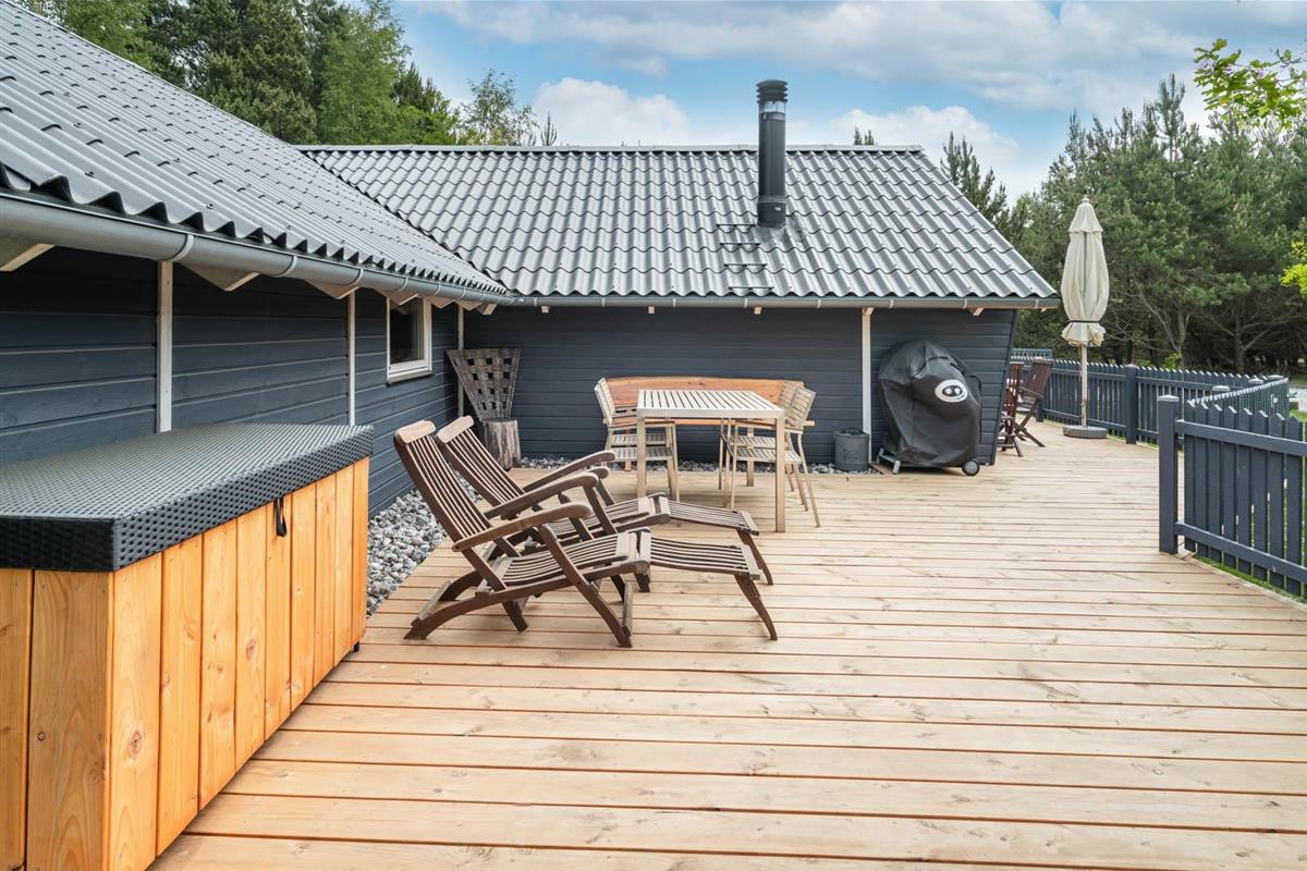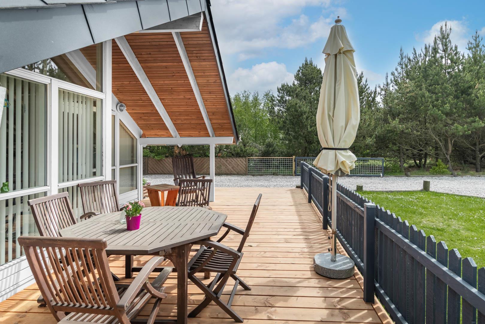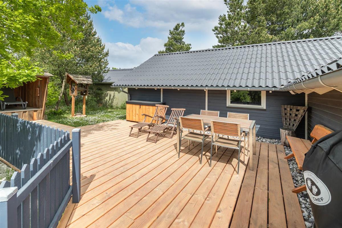 In Nørrevang 235 finden Sie dieses schöne Ferienhaus mit eingezäuntem Grundstück. Super, wenn kleine Kinder und ein Hund mitreist. Darüber hinaus gibt es eine geschlossene Terrasse, von der ein Teil überdacht ist, so dass Sie den Urlaub bei jedem Wetter genießen können. Sind Sie ein Naturfreund, dann haben Sie hier die Möglichkeit in einer offenen Unterschlag (Shelter) zu übernachten. Sie können Ihre Getränke im Brunnen abkühlen lassen oder die Mittagssonne im Schaukelstuhl genießen. Es gibt viele gemütliche Ecken und es gibt immer die Möglichkeit, Schatten zu finden.